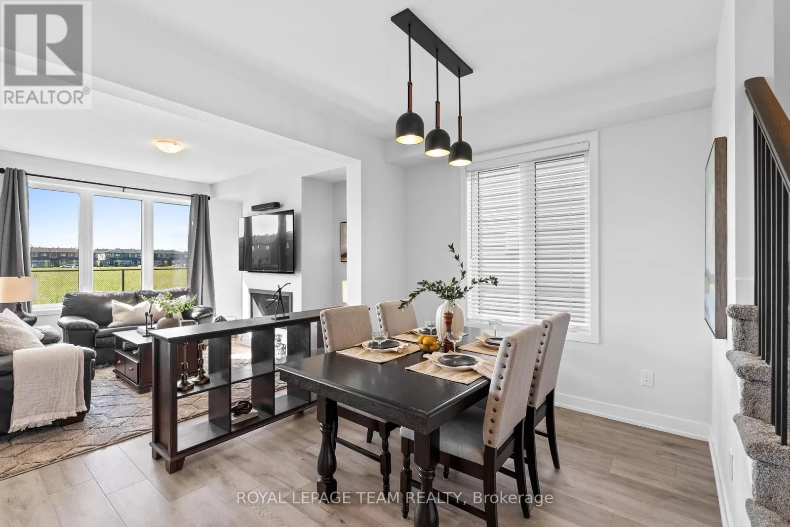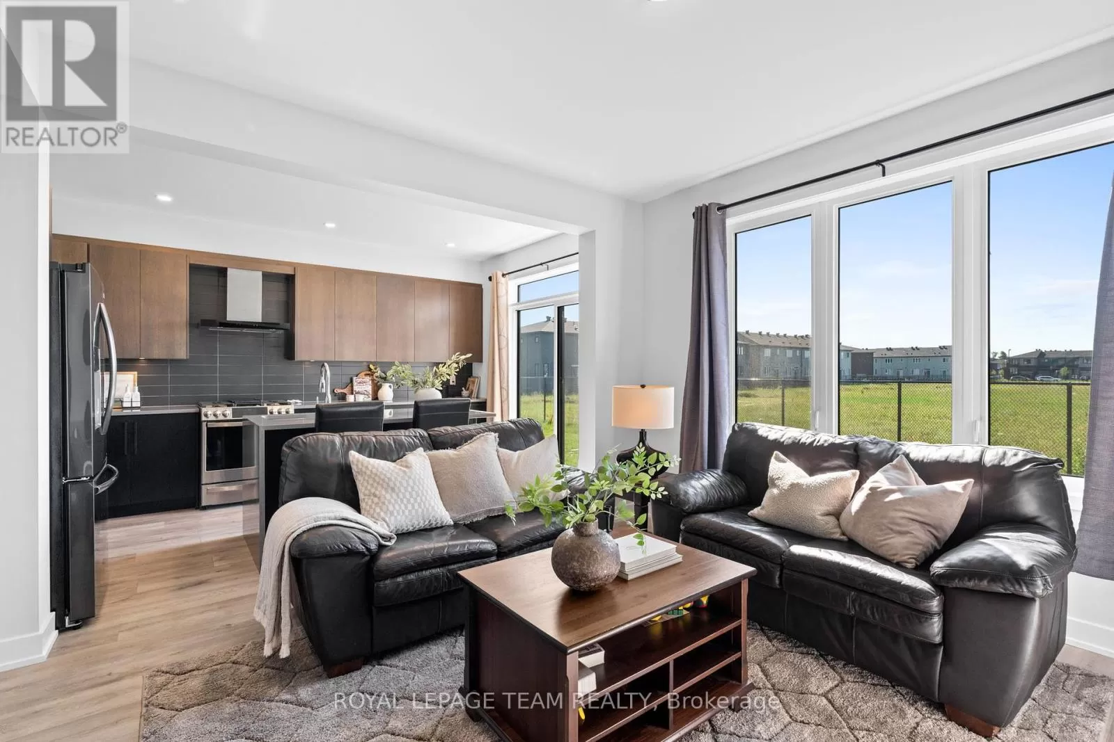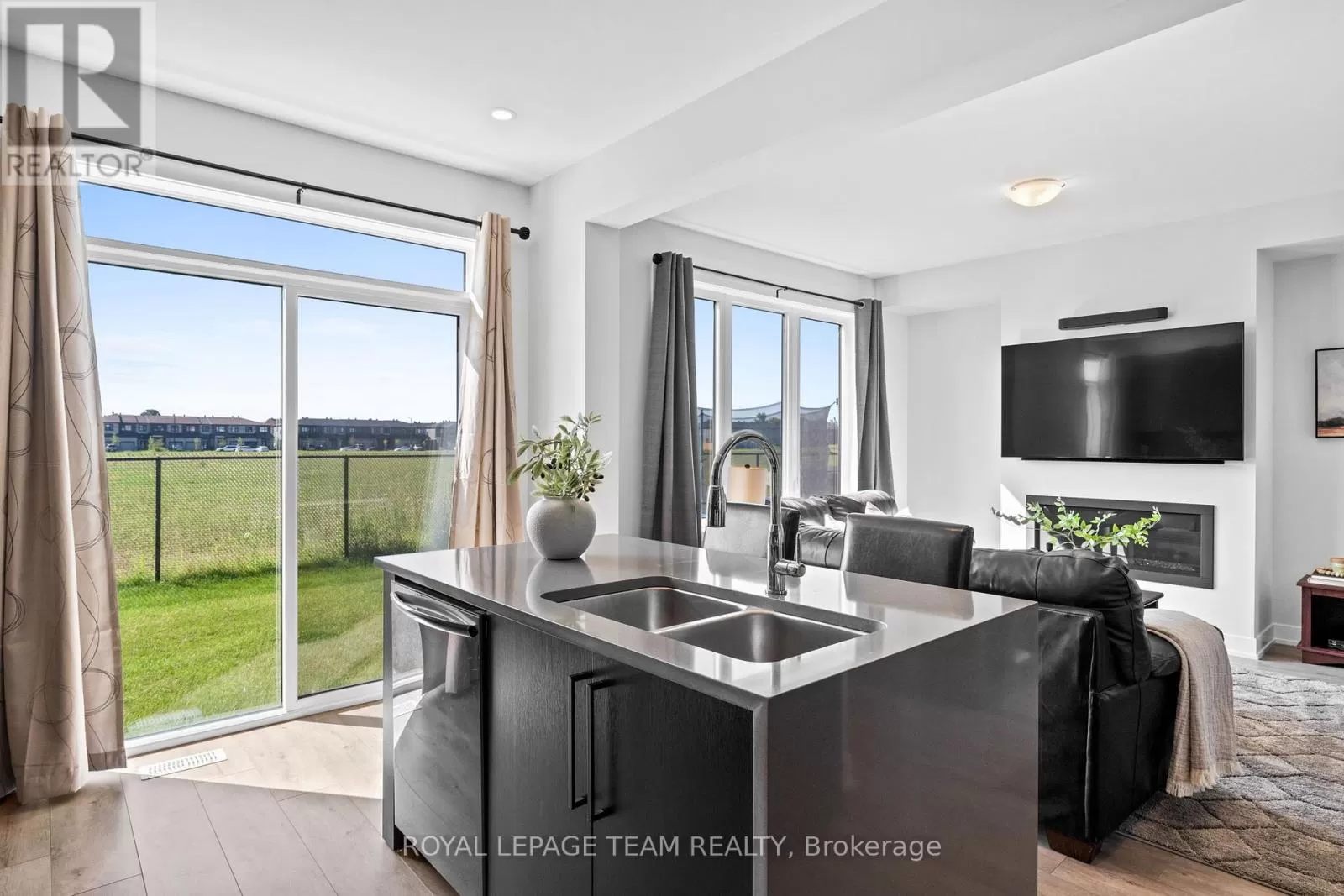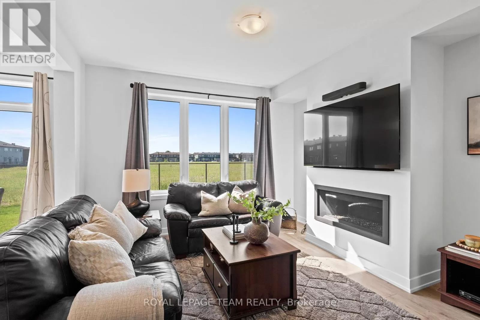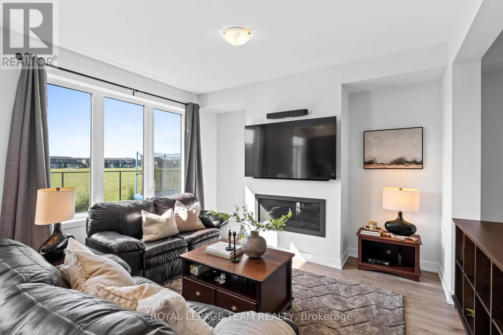 Cross Streets: March Road. ** Directions: From March Road, turn onto Invention Blvd. Turn left onto Leone Farrell St. Turn right onto Elsie MacGill Walk. Situated in a family-oriented area of Kanata, this 2024-built Minto Hyde model offers convenient access to retail, restaurants, schools, parks, recreation, and the Kanata High Tech Park. This detached home blends contemporary design with a functional layout, tailored for comfortable family living. The exterior features black-framed windows, a welcoming porch, and a full-lite glass front door that adds a modern edge. Inside, the floor plan is designed with family life in mind, offering three bedrooms and three bathrooms, along with a bright, open-concept layout. The main level showcases 9-foot ceilings and a neutral colour palette that enhances the sense of space and light. The dining room opens to the living room that is highlighted by a modern rectangular natural gas fireplace, recessed niches, and windows that overlook the backyard with no direct rear neighbours. The kitchen is appointed with flat-panel cabinetry, elongated subway tile backsplash, stainless steel appliances, quartz countertops, and a centre island with an undermount sink and a waterfall edge on one side. Upstairs, the primary bedroom benefits from a walk-in closet and an ensuite featuring an upgraded glass shower and a vanity with dual sinks. Two additional bedrooms, a four-piece bathroom, and a dedicated laundry room complete the second level. Additional features include a single attached garage with interior access. (id:27476)