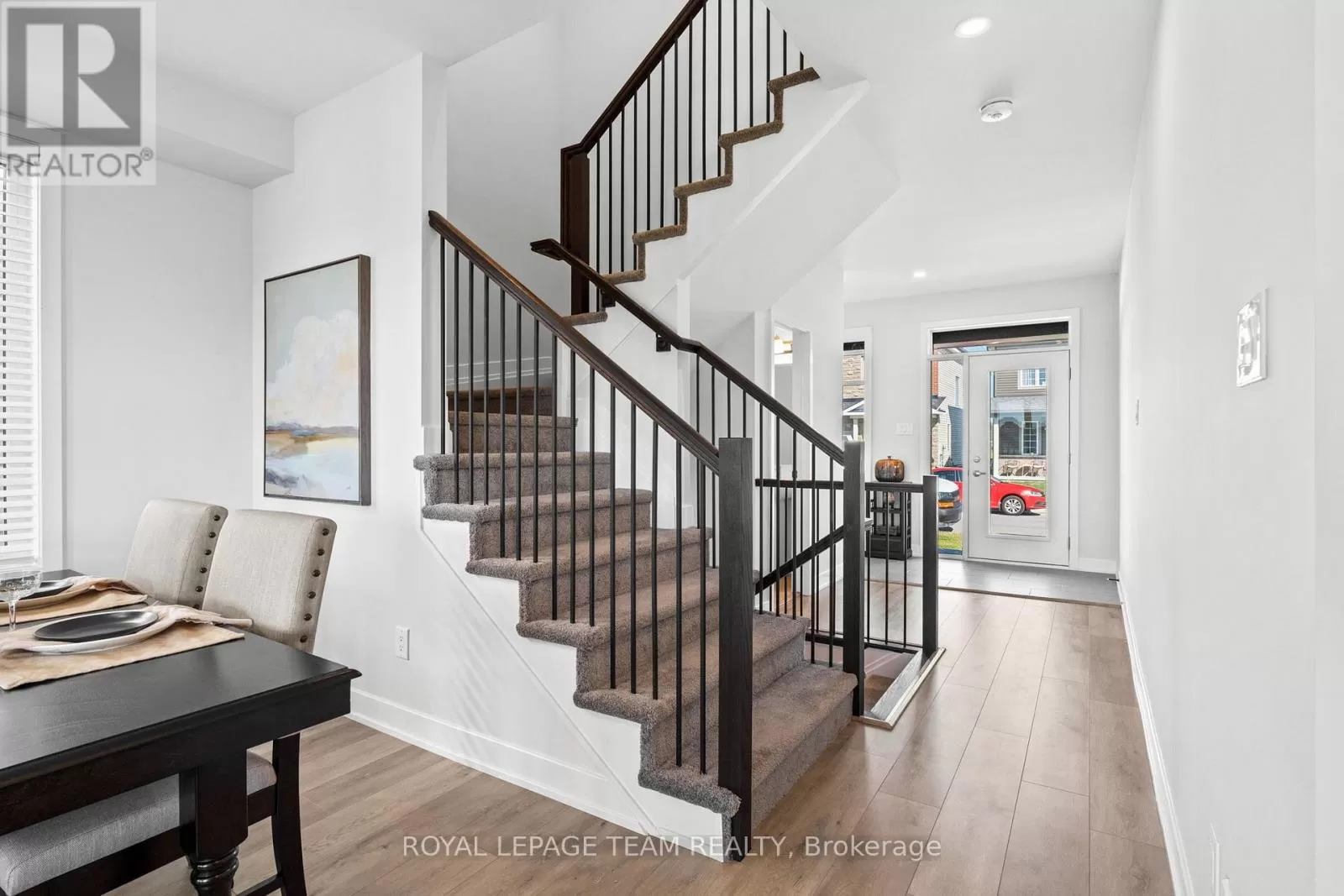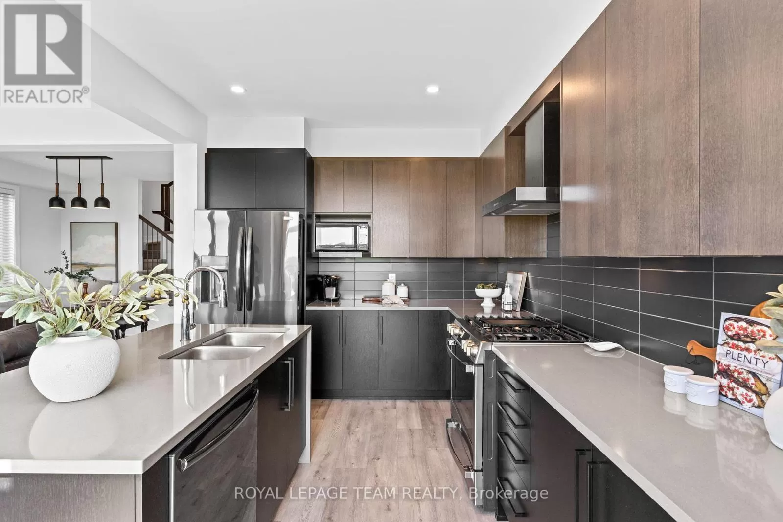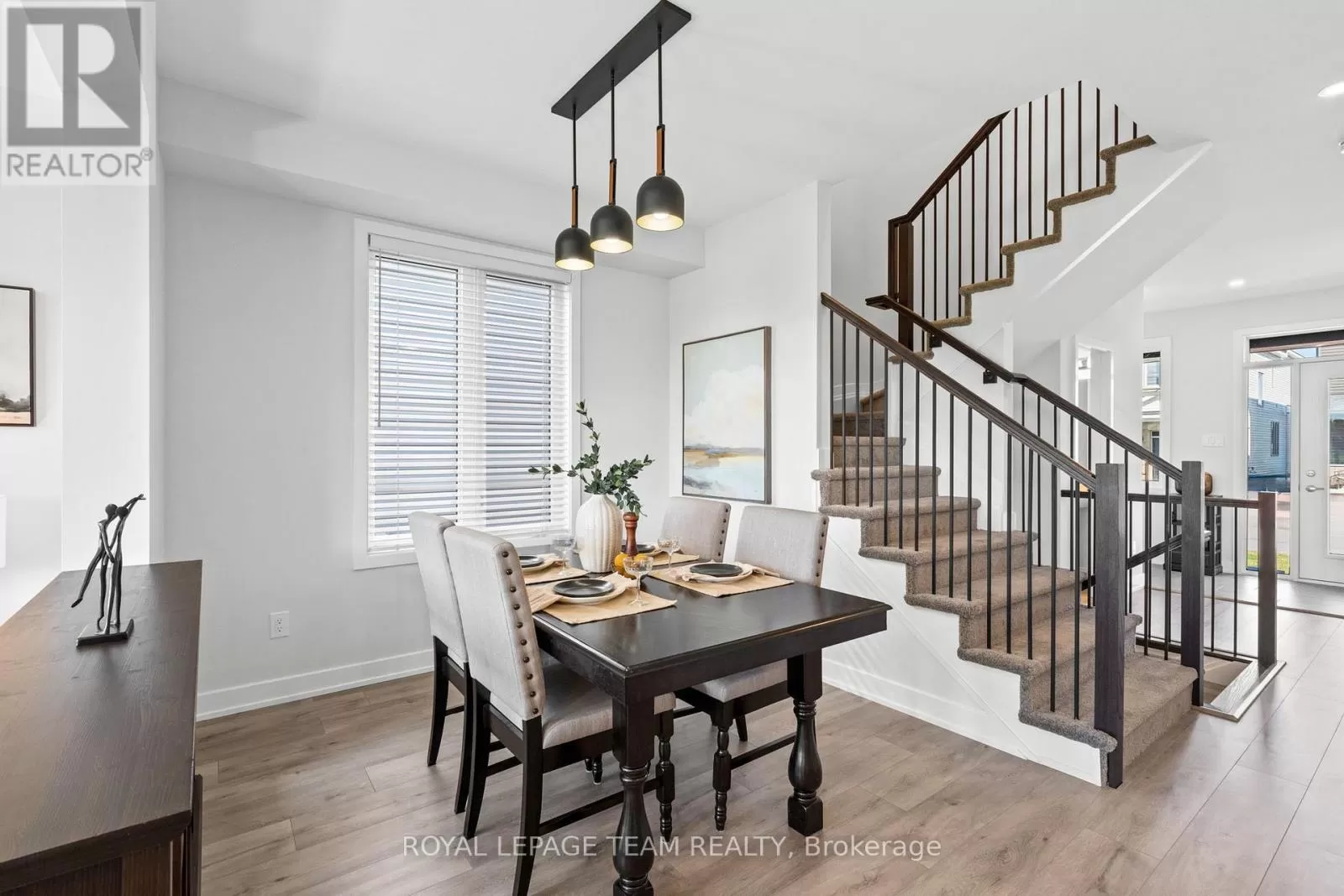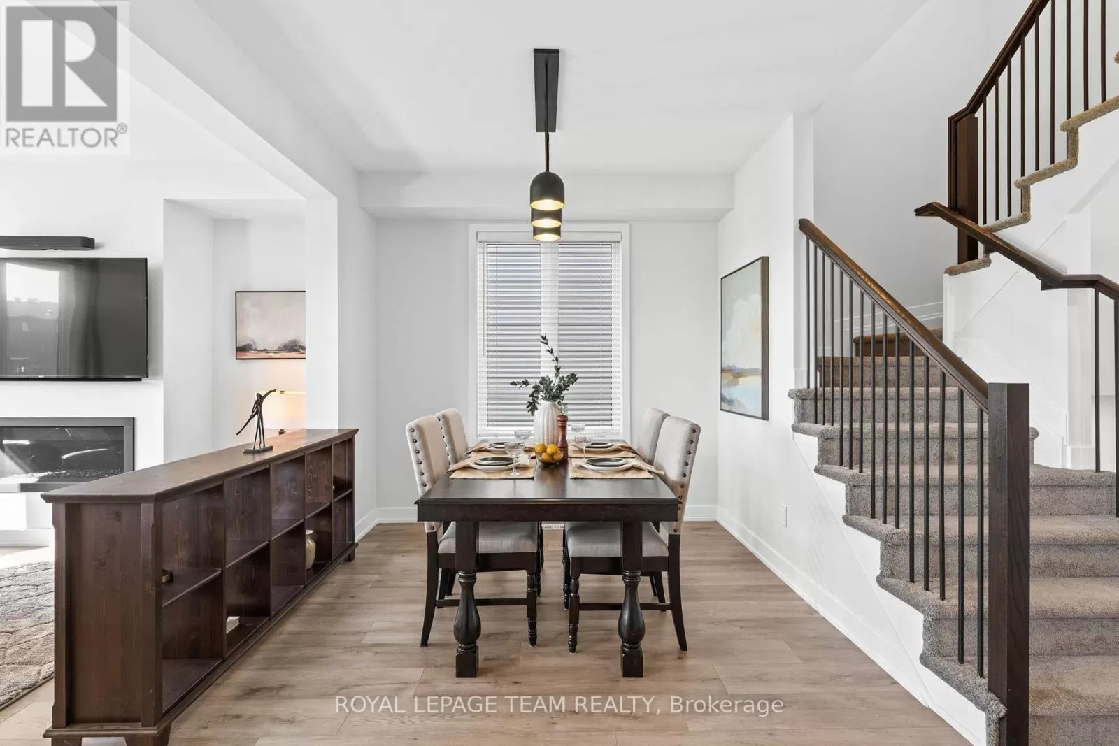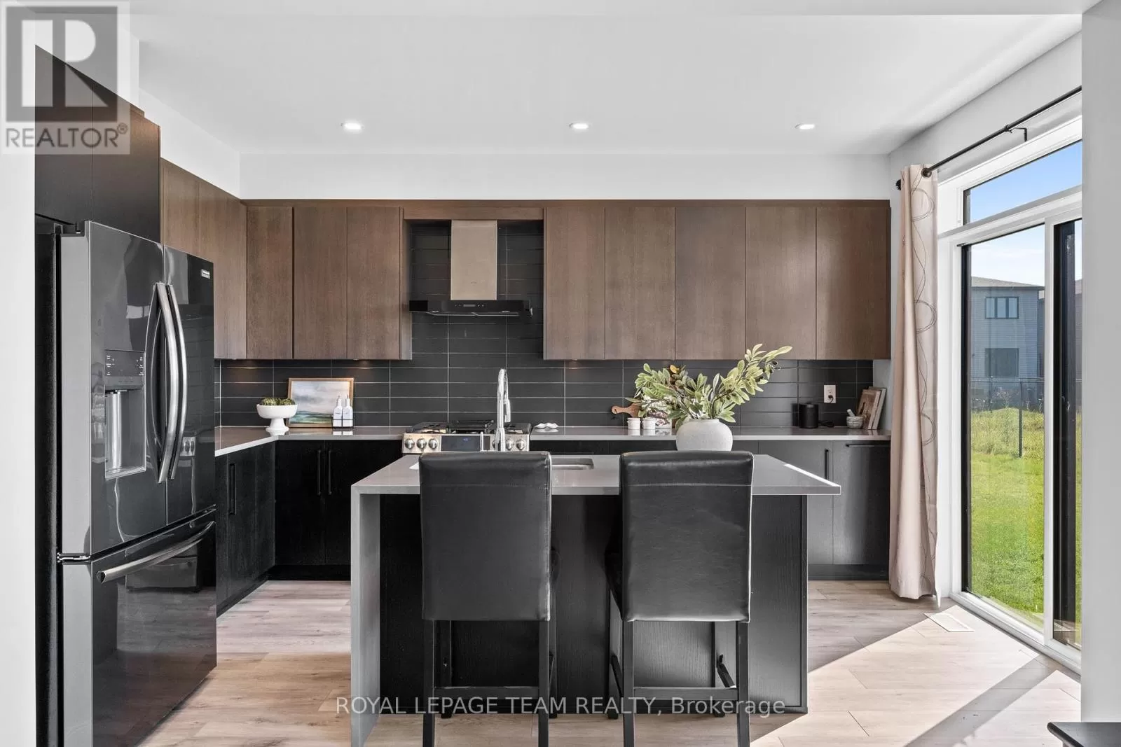 Cross Streets: March Road. ** Directions: From March Road, turn onto Invention Blvd. Turn left onto Leone Farrell St. Turn right onto Elsie MacGill Walk. Situated in a family-oriented area of Kanata, this 2024-built Minto Hyde model offers convenient access to retail, restaurants, schools, parks, recreation, and the Kanata High Tech Park. This detached home blends contemporary design with a functional layout, tailored for comfortable family living. The exterior features black-framed windows, a welcoming porch, and a full-lite glass front door that adds a modern edge. Inside, the floor plan is designed with family life in mind, offering three bedrooms and three bathrooms, along with a bright, open-concept layout. The main level showcases 9-foot ceilings and a neutral colour palette that enhances the sense of space and light. The dining room opens to the living room that is highlighted by a modern rectangular natural gas fireplace, recessed niches, and windows that overlook the backyard with no direct rear neighbours. The kitchen is appointed with flat-panel cabinetry, elongated subway tile backsplash, stainless steel appliances, quartz countertops, and a centre island with an undermount sink and a waterfall edge on one side. Upstairs, the primary bedroom benefits from a walk-in closet and an ensuite featuring an upgraded glass shower and a vanity with dual sinks. Two additional bedrooms, a four-piece bathroom, and a dedicated laundry room complete the second level. Additional features include a single attached garage with interior access. (id:27476)