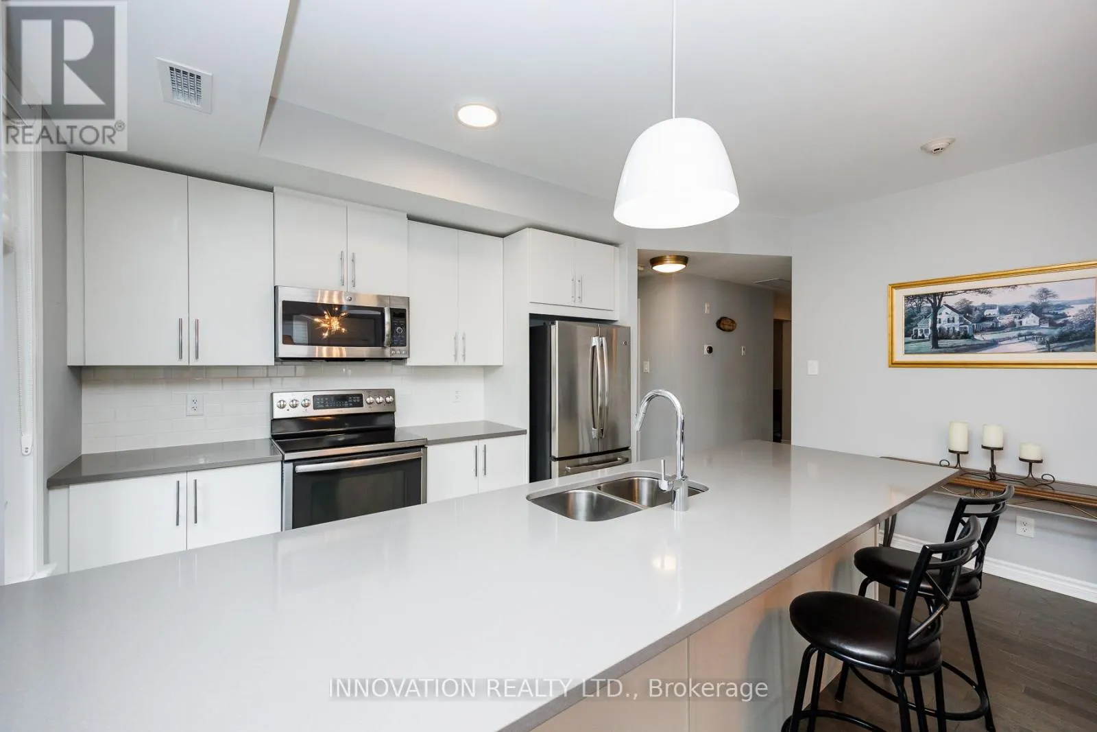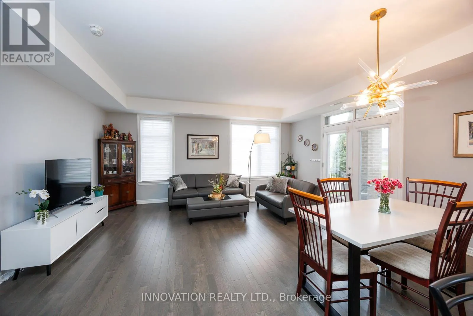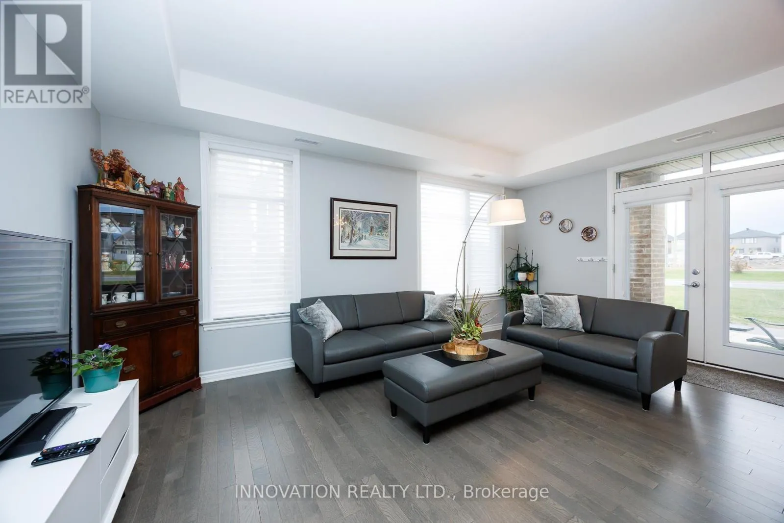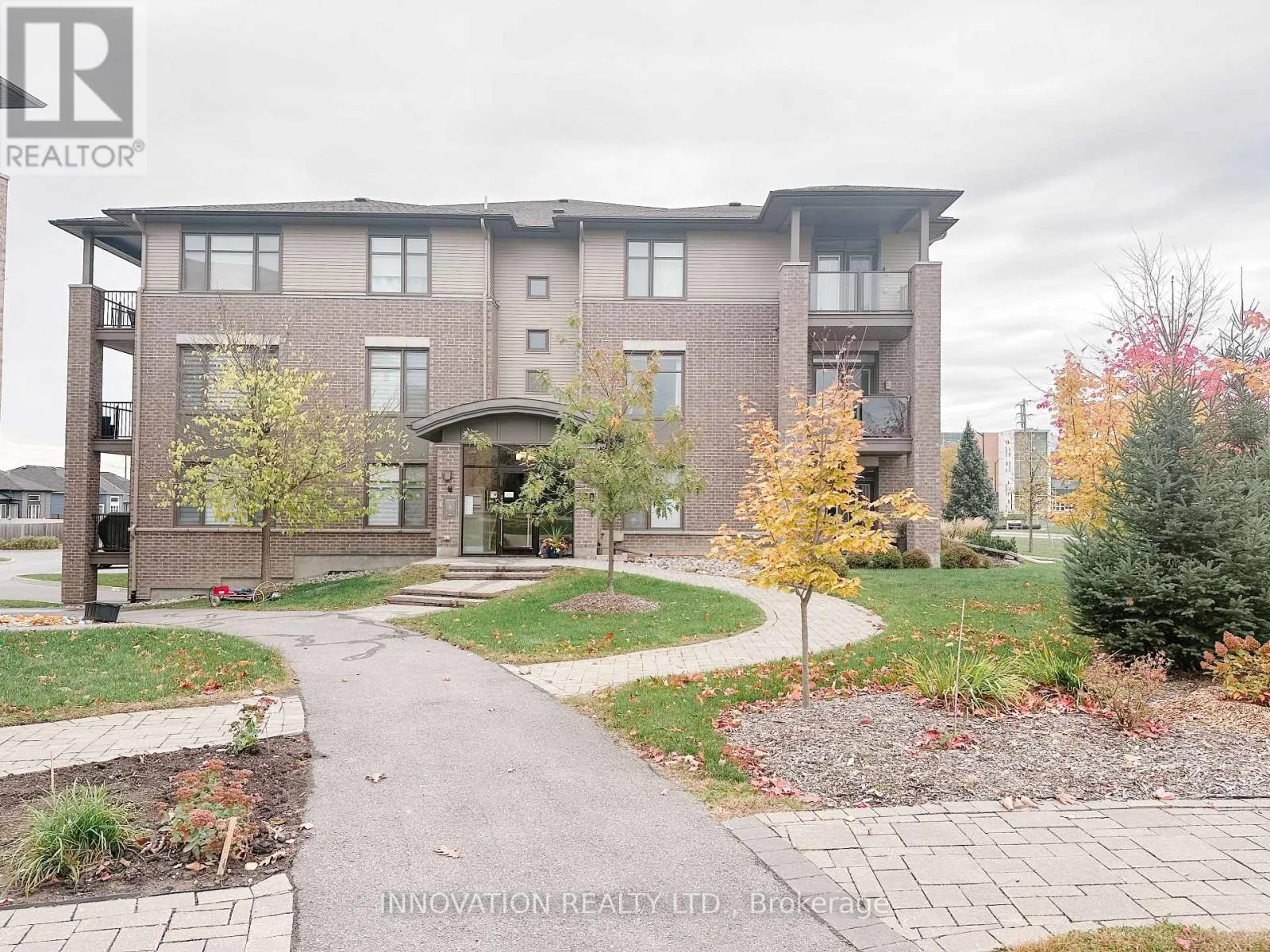 Cross Streets: Jatoba Private and Cope Drive. ** Directions: Robert Grant Avenue to Cope Drive. Left onto Jatoba Private. Spacious and bright ground level end unit condo with 2 parking spots, 2 bedrooms, 2 bathrooms and a den! Have a dog? Walk out your patio door and go for a walk! Single parent? Security here with great schools in the area for kids to walk to. This EQ Cypress model offers 1200 square feet of modern living space with lots of natural light all day long from southwestern facing windows that still catch morning light. Spacious foyer with tile flooring and lots of storage space. Tasteful hardwood floors are through the open concept living space with access to your outdoor patio with immediate access to grass and walking - perfect for those with pets! Upgraded kitchen with quartz countertops, soft close cabinetry and stainless steel appliances. The primary bedroom offers Berber carpeting with a walk-in closet and 3 piece ensuite. The second bedroom also has Berber carpeting and is right next to the 4 piece main bath. The den also has hardwood flooring and is the perfect spot for an office and/or reading/media area. There are TWO parking spaces that come with this unit including one underground and one surface parking. Elevator access to underground parking spot. This unit also comes with a good sized storage locker and there is shared bike storage for the building as well. Located in Blackstone, adjacent to the amenities of both Kanata and Stittsville you can easily access grocery stores, retail, restaurants, Cardel Rec Centre, Goulbourn Lawn Bowling Club, biking and walking trails and more. Lovely! (id:27476)