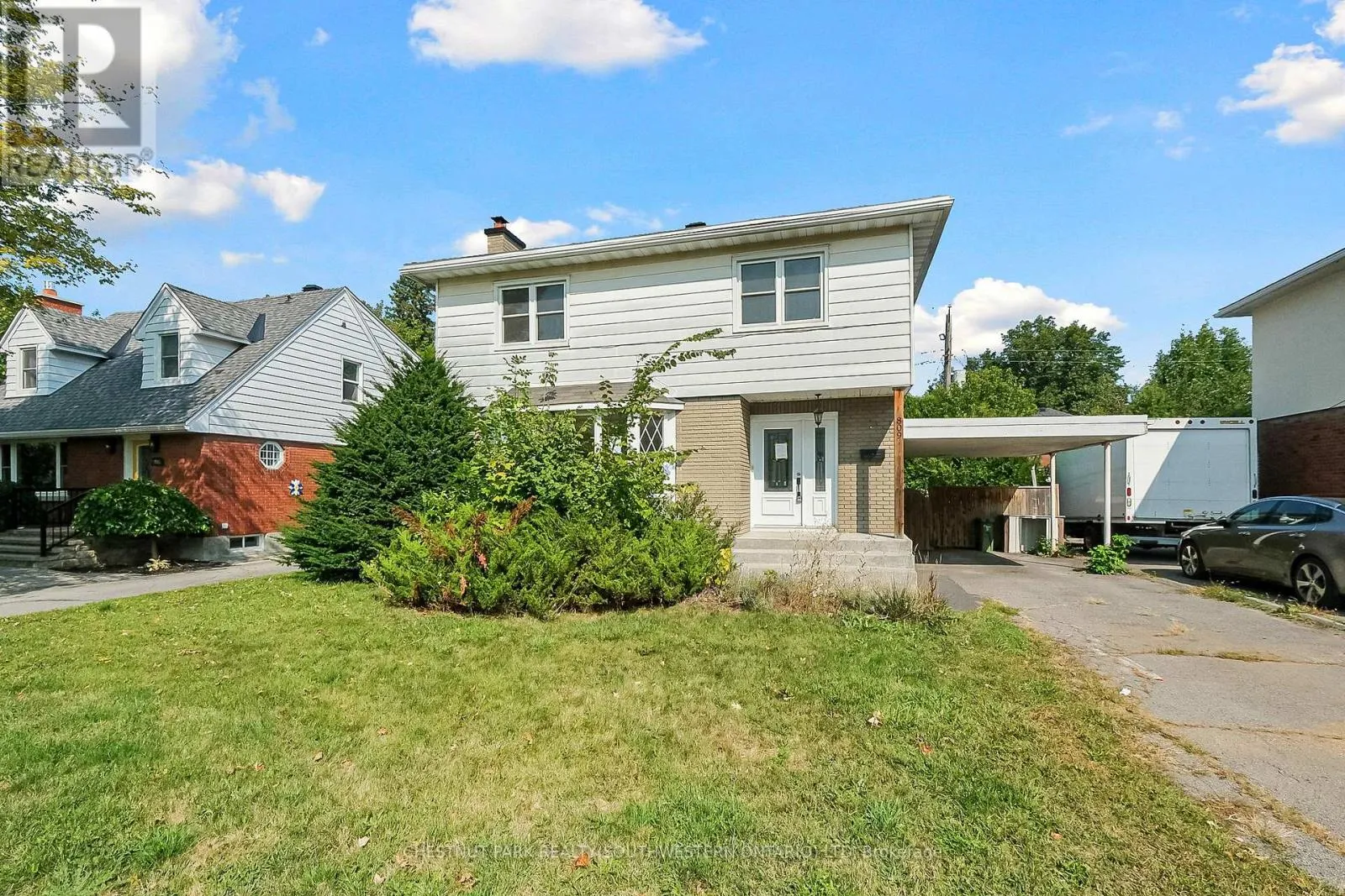 Cross Streets: Smyth Road and Haig Dr. ** Directions: Smyth Road between Haig Drive and Saunderson Drive. Welcome to a sunny family home in Elmvale Acres! Perfectly located just steps from schools, hospitals, parks, and transit, this charming 3-bedroom home is an ideal fit for first-time buyers and growing families. A spacious foyer with striking chevron flooring sets the tone as you enter. The bright and inviting living room features a bay window, gleaming hardwood floors, and a cozy fireplace, opening seamlessly to the dining room with a view of the backyard. The retro kitchen offers an efficient layout as-is, or the opportunity to bring your own design vision to life. Upstairs, you'll find a generous landing, three well-sized bedrooms with hardwood floors, and a retro-style main bath. The lower level includes a large central rec room, laundry, and plenty of storage space. Outdoors, enjoy a backyard perfect for gardening, play, or summer BBQs, along with the convenience of a covered carport especially valuable during Ottawa winters. Situated just east of The Ottawa Hospital campus, with shopping nearby and direct access to downtown, this home combines comfort, character, and convenience in a family-friendly neighbourhood. (id:27476)