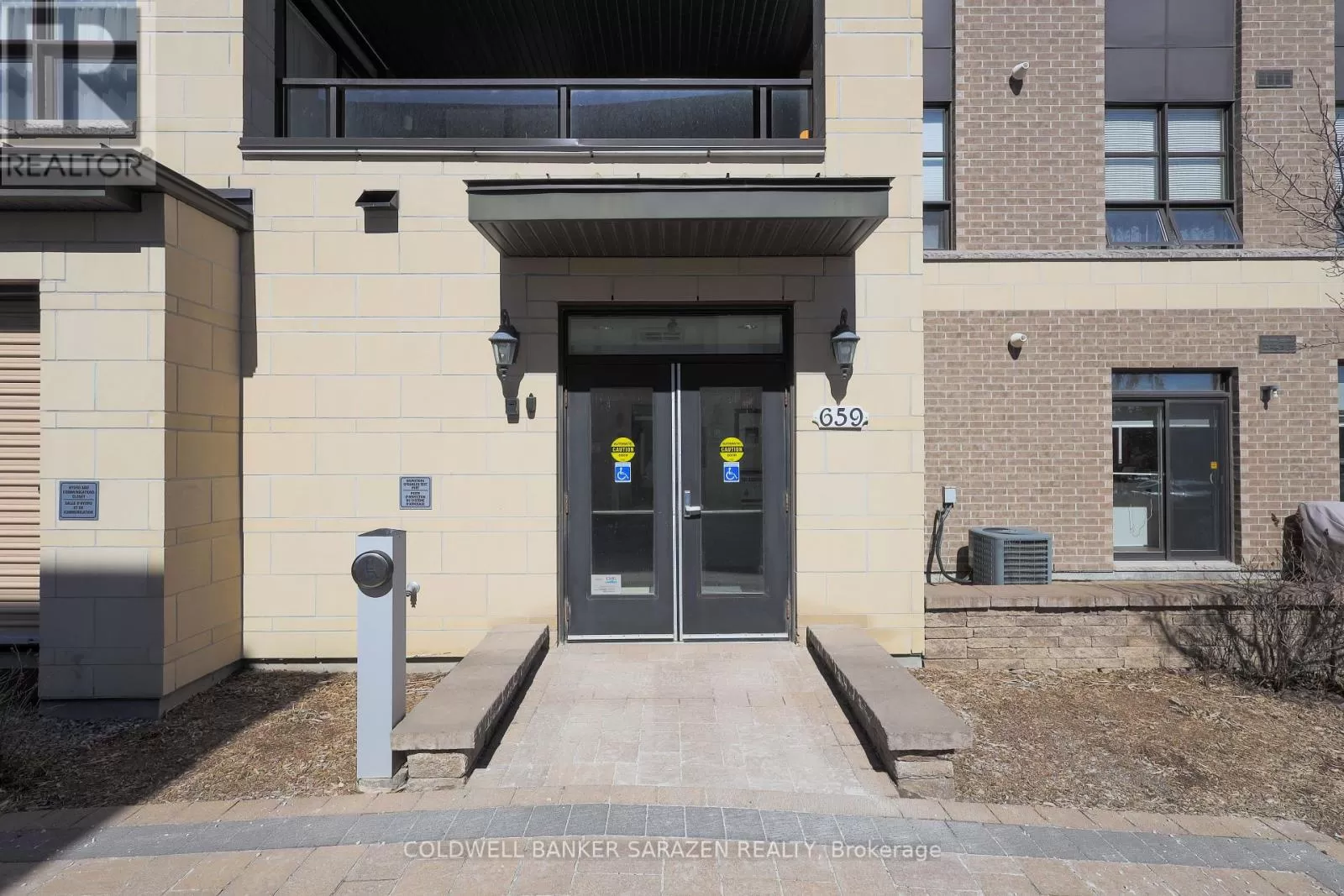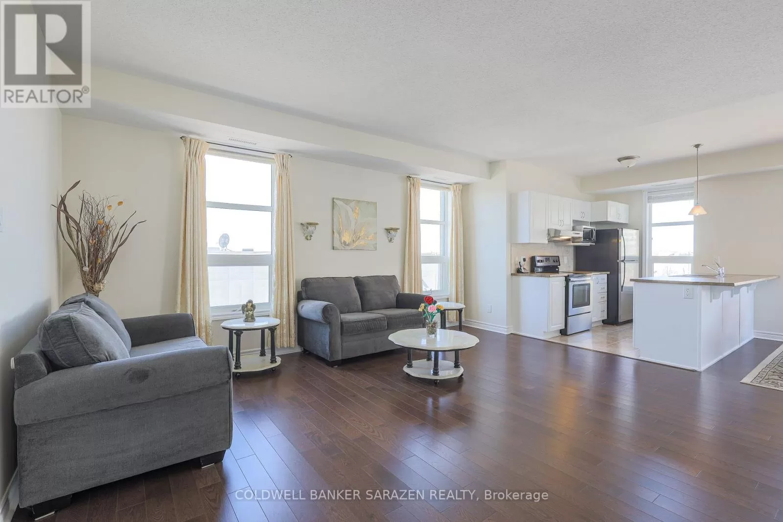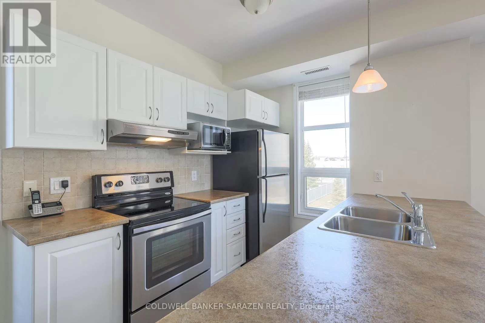 Strandherd to Longfields turn right on Bayrose and Left on Sue Holloway Drive. Imagine living in a bungalow-style condo where you can keep the curtains open and still enjoy complete privacy. Entertain guests on your expansive private terrace, offering clear and open views. This sun-soaked 3rd-floor corner unit boasts 9-foot ceilings, indoor parking, and elevator access.The spacious primary suite includes a 3-piece ensuite with an extended 4-foot walk-in shower, paired with a second bedroom and an additional full bath. Oversized windows flood the kitchen, living, dining, and both bedrooms with natural light from three exposures.Highlights include gleaming hardwood floors in the living and dining areas, stainless steel appliances, central air, HRV, in-suite laundry, and a storage locker. The fully accessible building features automatic doors and overlooks a quiet, adult-oriented park with a walking path and benches.Unbeatable location just steps from Cineplex, Indigo, Walmart, LCBO, GoodLife Fitness, Loblaws, Winners, restaurants, and banks. (id:27476)