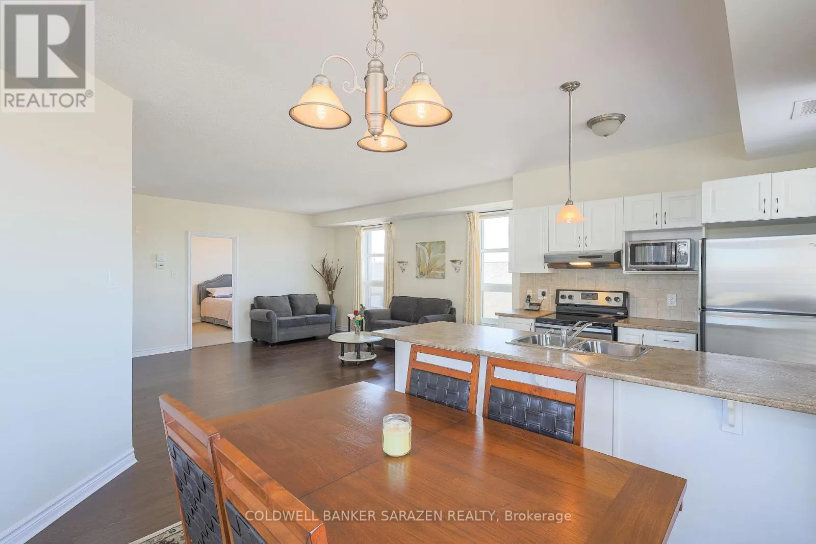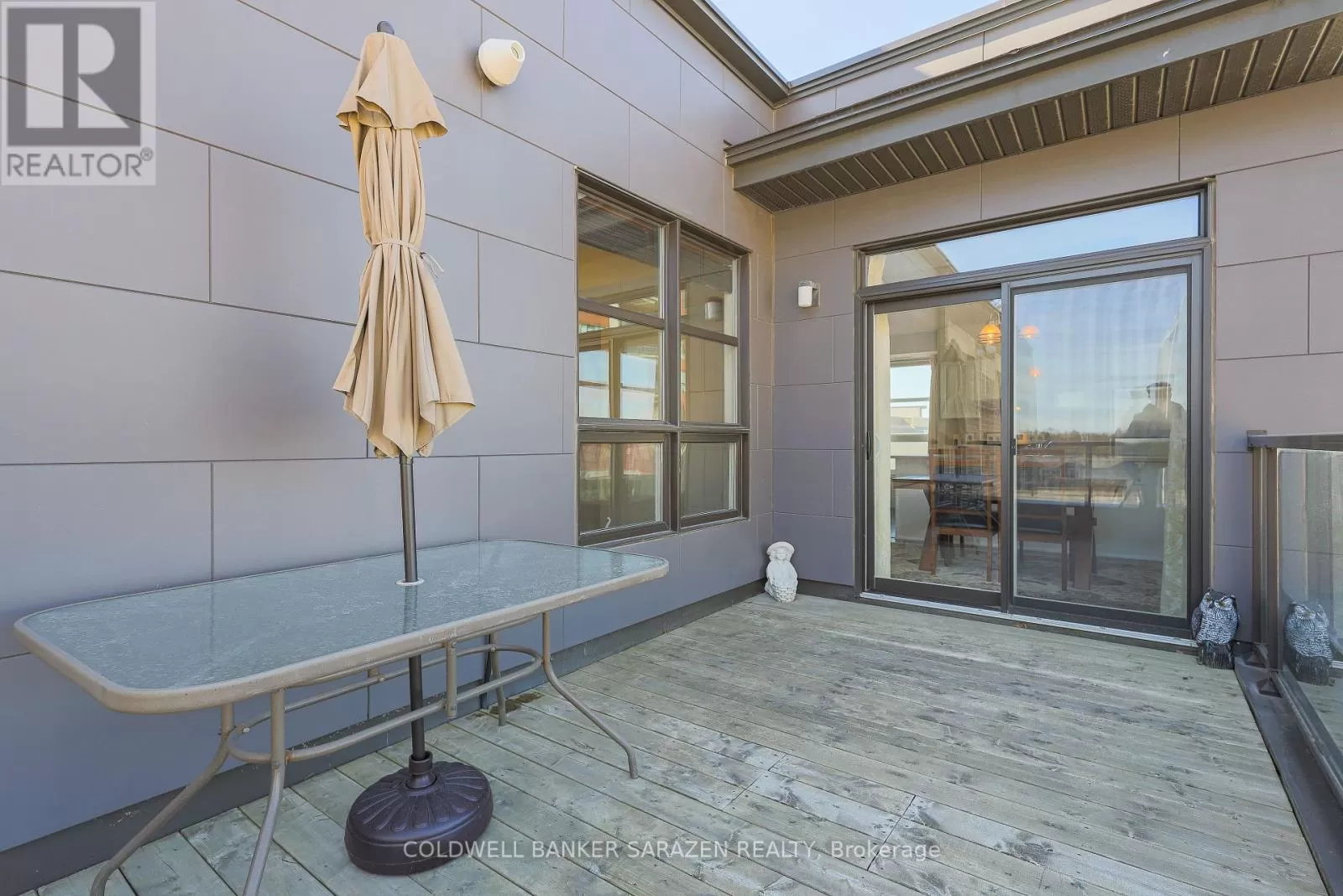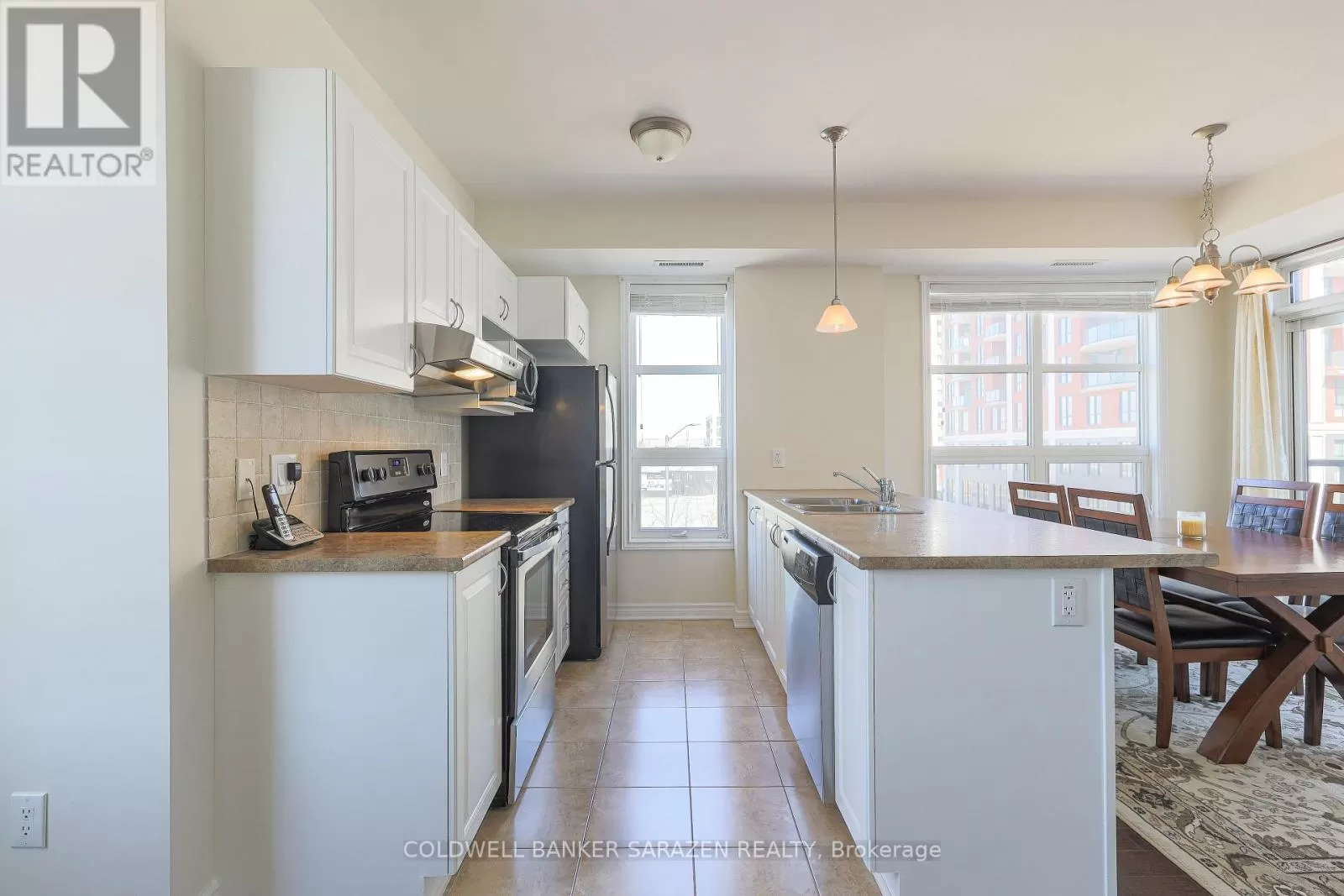Strandherd to Longfields turn right on Bayrose and Left on Sue Holloway Drive. Imagine living in a bungalow-style condo where you can keep the curtains open and still enjoy complete privacy. Entertain guests on your expansive private terrace, offering clear and open views. This sun-soaked 3rd-floor corner unit boasts 9-foot ceilings, indoor parking, and elevator access.The spacious primary suite includes a 3-piece ensuite with an extended 4-foot walk-in shower, paired with a second bedroom and an additional full bath. Oversized windows flood the kitchen, living, dining, and both bedrooms with natural light from three exposures.Highlights include gleaming hardwood floors in the living and dining areas, stainless steel appliances, central air, HRV, in-suite laundry, and a storage locker. The fully accessible building features automatic doors and overlooks a quiet, adult-oriented park with a walking path and benches.Unbeatable location just steps from Cineplex, Indigo, Walmart, LCBO, GoodLife Fitness, Loblaws, Winners, restaurants, and banks. (id:27476)