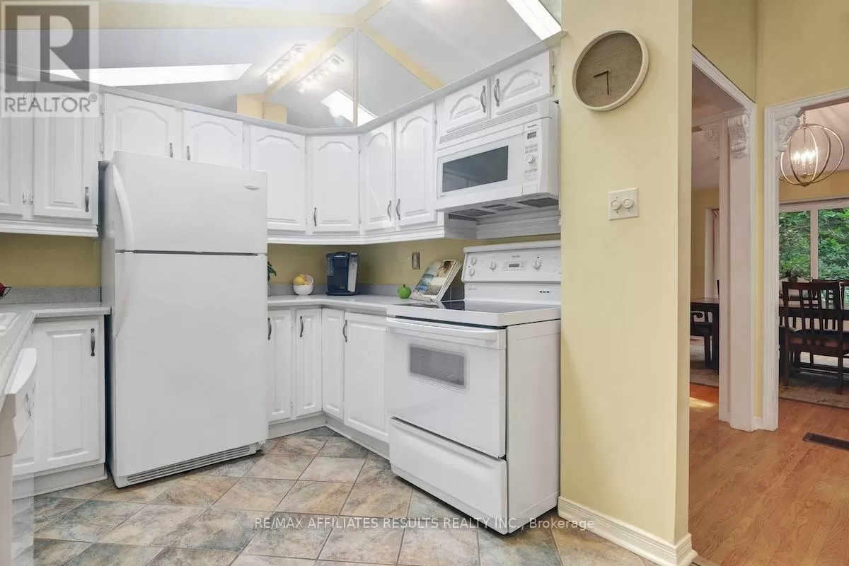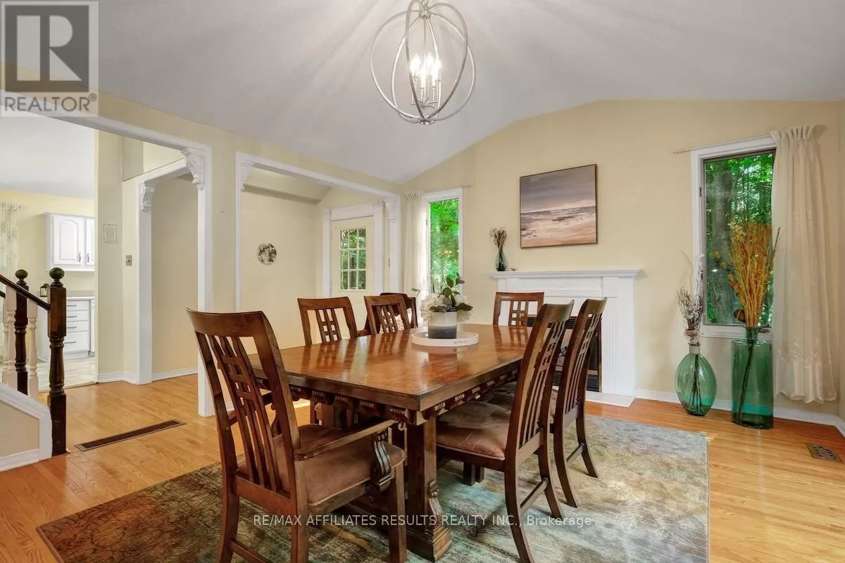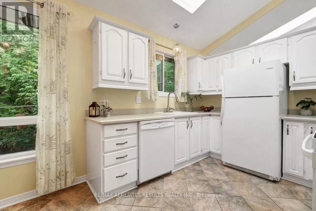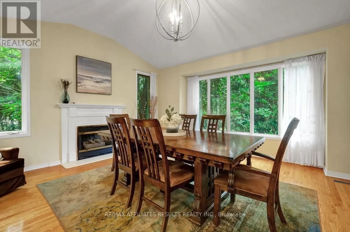 Cross Streets: Eastpark Dr & Wedgewood Crescent. ** Directions: Traveling west on Innes Rd, turn right onto Eastpark Dr, then right onto Wedgewood Crescent. Tucked into a quiet corner of Blackburn Hamlet, this charming side-split home offers the perfect blend of privacy, comfort, and convenience. Set on a corner lot, the property is surrounded by tall hedges and mature trees, creating a peaceful retreat just minutes from parks, shopping, transit, and the Blackburn Hamlet Bypass. With 3 bedrooms and 2 full bathrooms, this home is ideal for a growing family. The landscaped front gardens welcome you in, while the tiled foyer leads to a bright formal living room with hardwood floors, fireplace (as is), and a walk-out to the spacious backyard deck. Entertain in the elegant dining room featuring hardwood floors, vaulted ceilings, and a stunning gas fireplace. The kitchen includes a cozy cottage-style breakfast nook, perfect for casual mornings. Upstairs, the spacious primary bedroom is a true retreat, boasting a vaulted ceiling with 6 new pot lights (2025), skylight, corner soaking tub, and vintage-style enamel sink. Two more bedrooms with hardwood floors and a full 4-piece bath complete the upper level. The bathroom was recently updated with new Moen bathtub taps, faucet, and showerhead (2025). Downstairs, enjoy a finished rec room with bar, gas fireplace, and a 3-piece bathroom, ideal for movie nights or hosting guests. Outside, the fully fenced backyard is a private oasis with a deck, patio, enclosed seating area, gazebo, mature trees, shed, and side porch; perfect for kids, pets, and summer entertaining. The attached garage and paved driveway with space for 3 vehicles add everyday convenience. New roof (2024) under transferrable warranty. This well-loved home offers privacy, space, and access to all the amenities Ottawa has to offer. Don't miss your chance to make it yours! (id:27476)