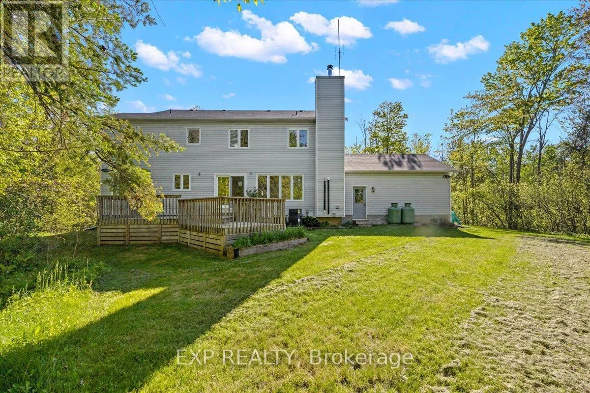 Cross Streets: Carp Road/Richardson Side. ** Directions: 417 to Carp Road exit, north on Carp Road, left on Richardson Side Road, left on Beavertail Drive, right on Lady Slipper Way. Looking for peace, privacy, and the charm of country living without sacrificing convenience? This beautiful 4-bedroom, 4-bathroom home is nestled on an expansive 4+ acre treed lot with no rear neighbours, offering the perfect blend of space, nature, and accessibility just minutes from town amenities and highway access. Set well back from the road on a gently elevated lot, the home boasts timeless curb appeal with a welcoming flagstone path leading to a spacious front porch ideal for quiet mornings or relaxing evenings. Inside, the main floor offers a classic and functional layout with formal living and dining rooms, a cozy family room with a wood-burning fireplace, and a bright eat-in kitchen designed for everyday comfort and entertaining. A main-floor den adds flexible space for a home office or hobby room. Upstairs, you'll find four generously sized bedrooms, including a private primary suite. The fully finished lower level offers even more living space, featuring a spacious rec room, a den, a full bathroom, and plenty of storage, making it perfect for a growing family, guests, or multi-use needs. Step outside to your own private retreat an expansive, tree-lined backyard with a large deck ideal for summer gatherings, BBQs, or simply enjoying the peaceful natural surroundings. Mature trees and a sense of seclusion make this property feel like a true escape from the everyday. This rare offering combines the best of country living with easy access to city conveniences all set on a remarkable 4+ acre lot in a highly desirable estate community. (id:27476)