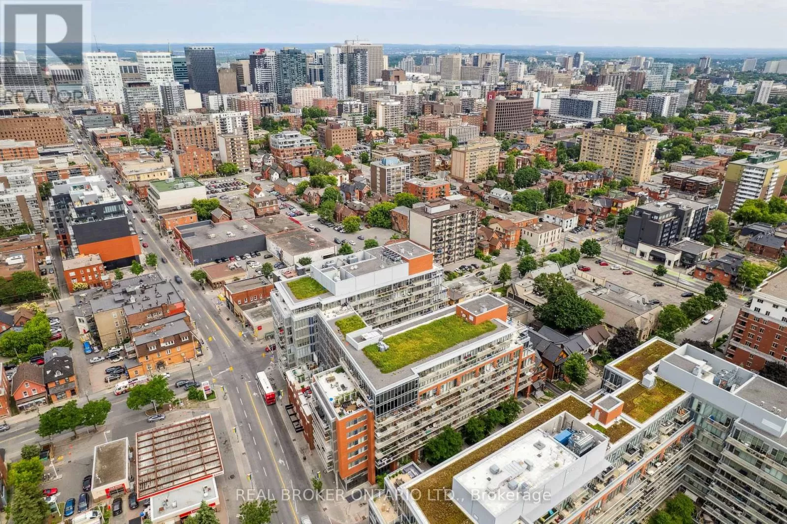 Cross Streets: Bank. ** Directions: Somerset St. W, turn Southbound onto O'Conner St. Then turn Westbound onto McLeod Street. The building will be on your right. Welcome to Central Phase 1 one of Ottawa's most sought-after, and pet friendly, condo buildings! This popular "Stockholm" model is a south-facing unit filled with natural light thanks to floor-to-ceiling windows. Featuring a modern industrial aesthetic, this one-bedroom plus den condo boasts exposed ceilings, sleek cabinetry, dark grey stone countertops, and hardwood floors throughout. The layout includes a den, perfect for a home office, plus a separate laundry/storage room for added functionality. The building offers premium amenities including a stunning landscaped terrace, a large fitness center, and a stylish party room with a pool table. Enjoy unbeatable access to public transit, vibrant restaurants, and all the conveniences of Bank Street shopping just steps from your door. Perfect for professionals, investors, or anyone looking to live in the heart of the city! Parking and Storage are included - Parking Space: P2-80, Storage Locker: 1M-60 (id:27476)