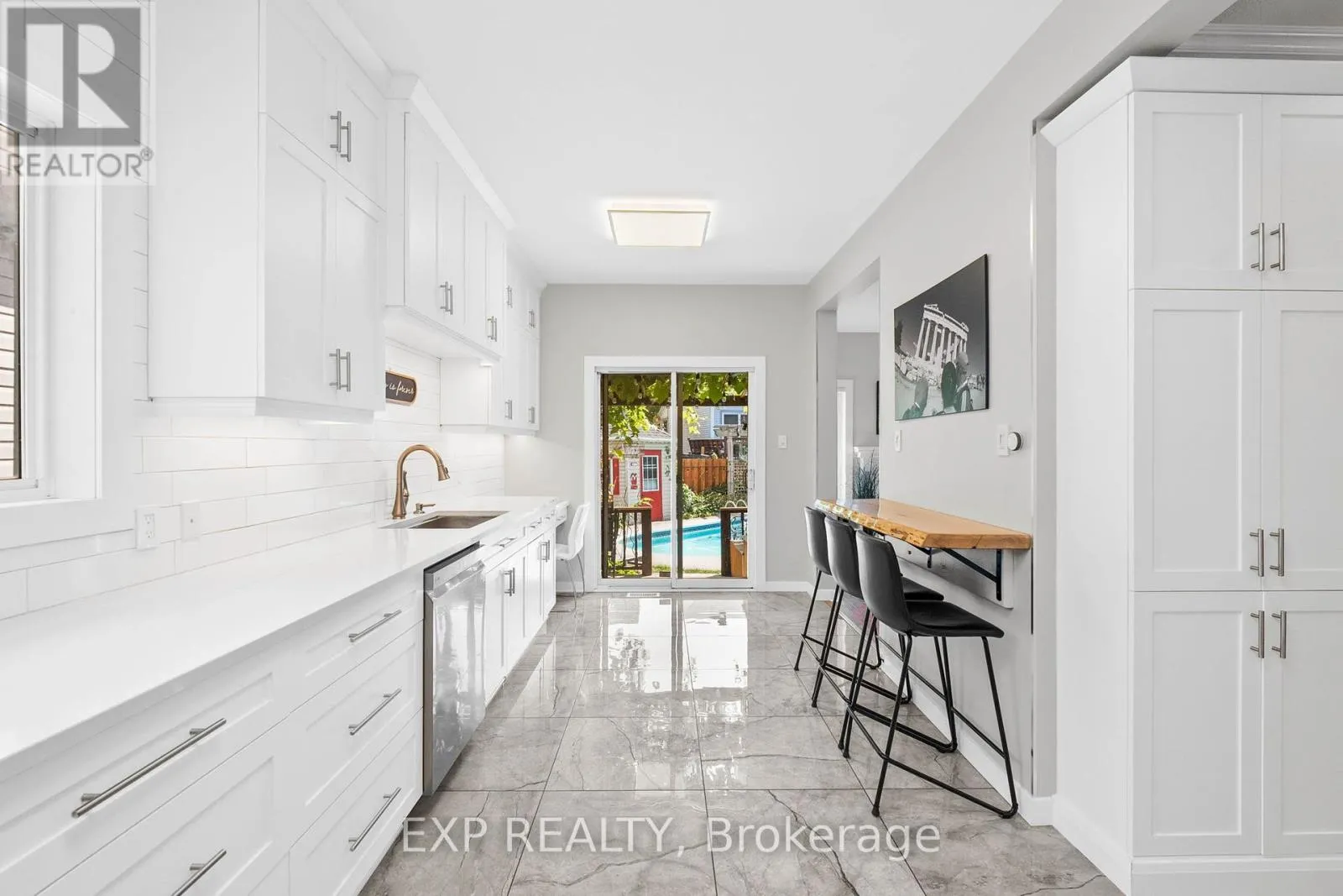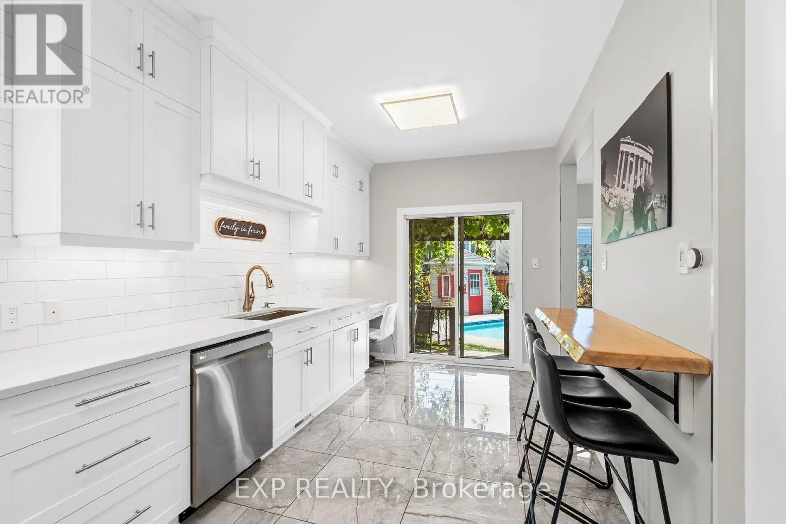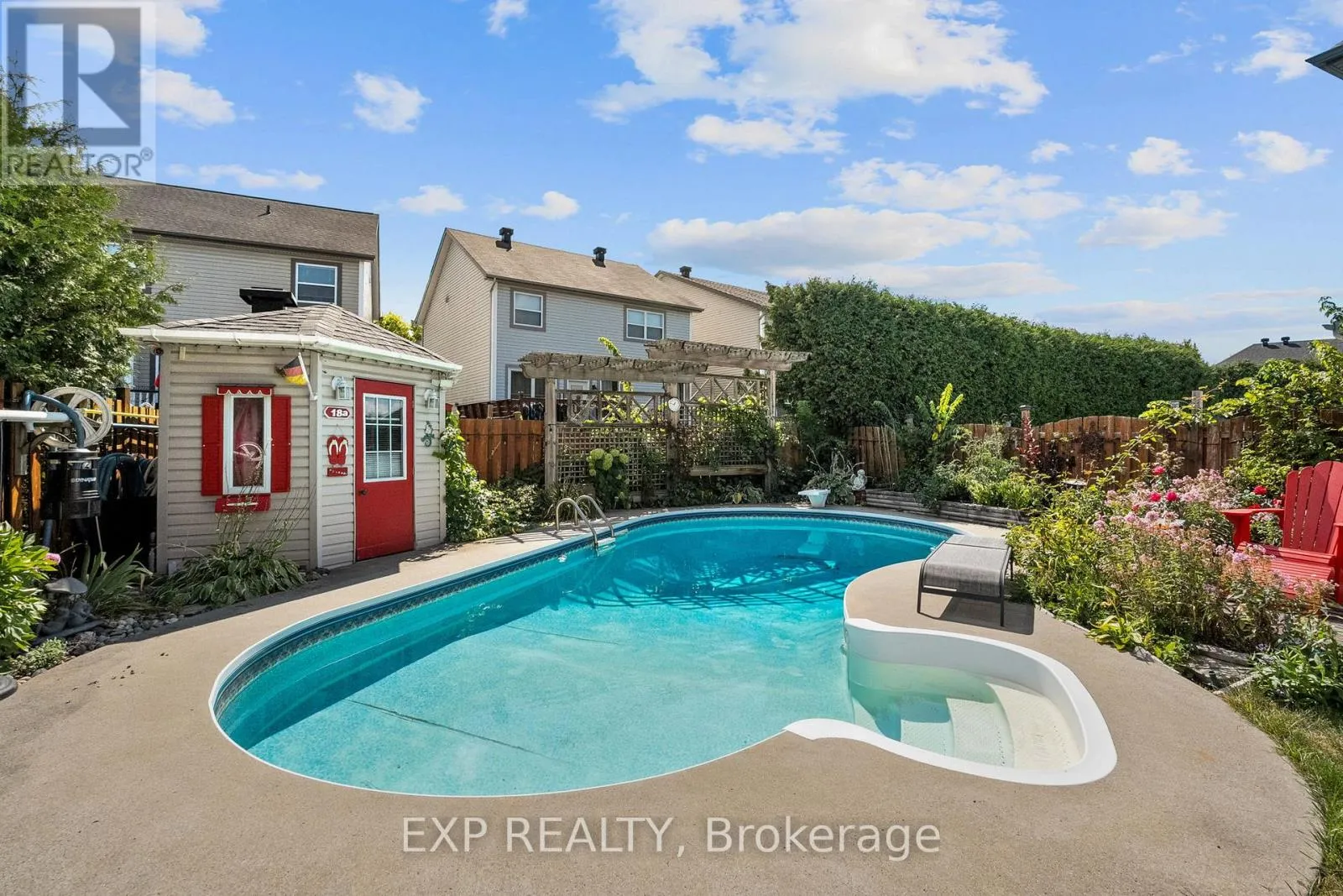 Cross Streets: Golders Green & Fairlop way. ** Directions: Strandherd Drive, North on Claridge Drive, East on Fairlop Way,South on Golder's Green Lane. Welcome to this stunningly updated 3+1 bedroom, 4-bathroom detached home featuring a gorgeous backyard retreat with modern updates across all levels and located on a quiet, wide family-friendly street in Barrhaven. From the inviting front porch, step into a bright tiled foyer with soaring ceilings and crown mouldings. The main level flows seamlessly with 9ft ceilings, hardwood flooring and very functional custom-built main floor private office, with barn door & built-ins, huge spacious living room filled with natural light, formal dining room with gas fireplace. The heart of the home is the stunning eat-in kitchen, featuring crisp white cabinetry, stainless steel appliances including a gas stove, tiled backsplash, marble flooring, with patio door to back yard oasis and abundant storage. A built-in breakfast bar and desk nook add extra functionality, while direct access to the backyard makes entertaining effortless. Just off the kitchen, the main floor laundry room doubles as a pantry with additional cabinetry and counter space. Upstairs, you will find three generously sized bedrooms, including a primary suite with his-and-hers custom closets and a luxurious 5-piece ensuite with soaker tub and separate shower. Two additional bedrooms are bright and versatile, complemented by crown mouldings and a full bathroom. The fully finished lower level expands the living space with a large rec room, a 4th bathroom, an additional office/den, storage room and a workshop completes this level. Step outside to your private backyard oasis featuring an inground pool, pool house, lush gardens, patio space, pergola, and a separate decked area ideal for relaxing or hosting summer gatherings. This move-in ready home offers fantastic curb appeal and is close to schools, parks, sports fields, recreation centers, shopping, transit, and all the amenities Barrhaven has to offer. Visit www.mprealty.ca for more information. (id:27476)