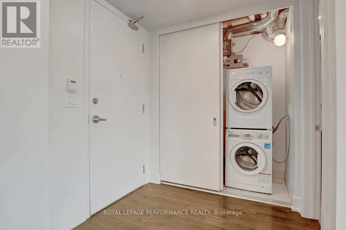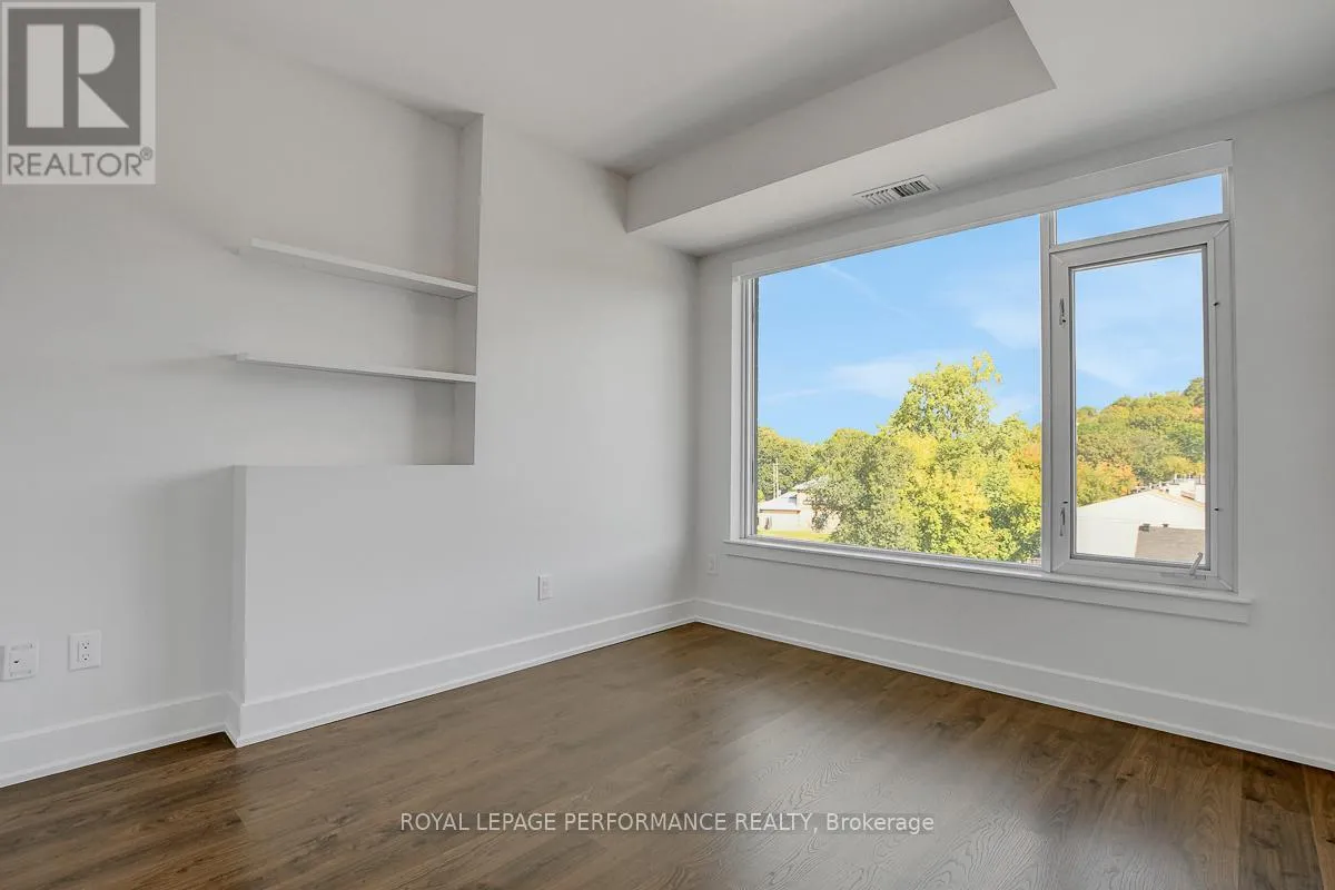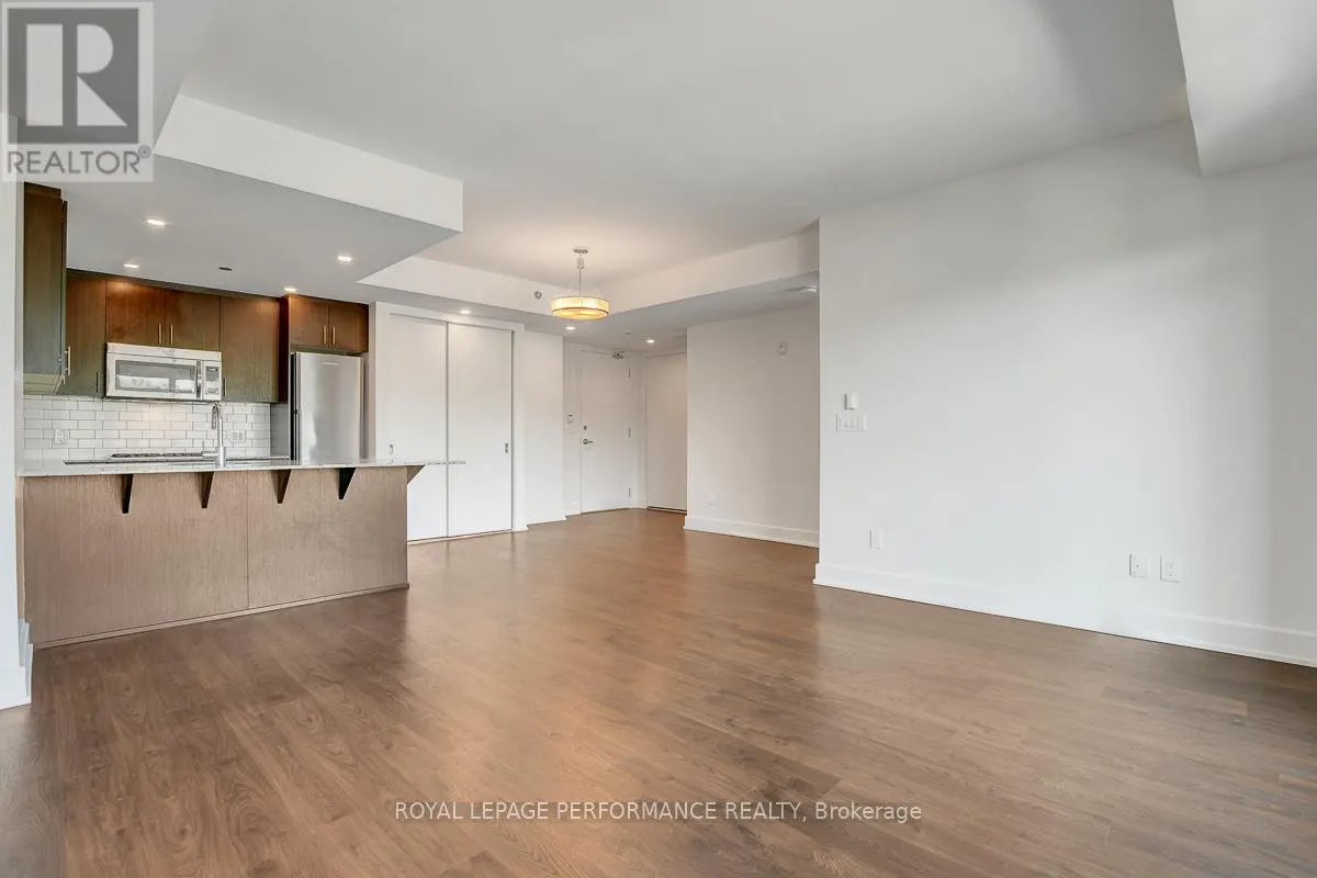 Cross Streets: Marquette & Beechwood. ** Directions: North River Road to Beechwood, east to corner of Marquette & Beechwood. Welcome to The Kavanaugh a stylish Domicile-built condo [2015] in the heart of Beechwood Village! This spacious 1-bedroom suite (720 sq. ft.) offers the quality craftsmanship Domicile is known for, paired with a smart and functional floor plan. The open-concept kitchen features granite countertops, stainless steel appliances including the cooktop gas range and ample prep space, flowing seamlessly into the bright and open living/dining rooms. Step out to the large balcony [84 sq/ft] complete with a gas hook-up for summer BBQs. The bedroom boasts a sun-filled window and a generous three-door closet with built-in organizers. Adjacent to the primary bedroom is the 4-pce bathroom. Hardwood and tile flooring run throughout the unit, which also includes in-suite laundry, window shades, light fixture, underground parking and the adjacent storage locker. Residents of The Kavanaugh enjoy an impressive list of amenities that include: a rooftop terrace with breathtaking views of Parliament and the Gatineau Hills, a library room, party/meeting room, guest suite, fully equipped fitness centre, workshop, dog wash station, and visitor's parking. All this, just steps from Beechwood shops and restaurants, close to scenic river pathways, grocery, Global Affairs and the ByWard Market. Freshly painted, cleaned and vacant with quick closing flexibility. A fantastic unit in a sought-after building in a prime location awaits your next move! Some photos virtually staged. (id:27476)
