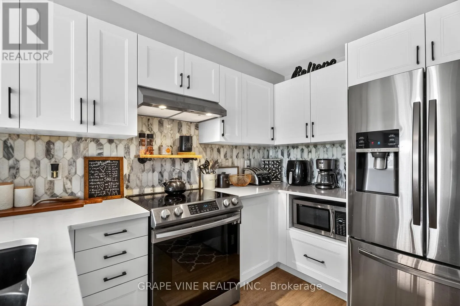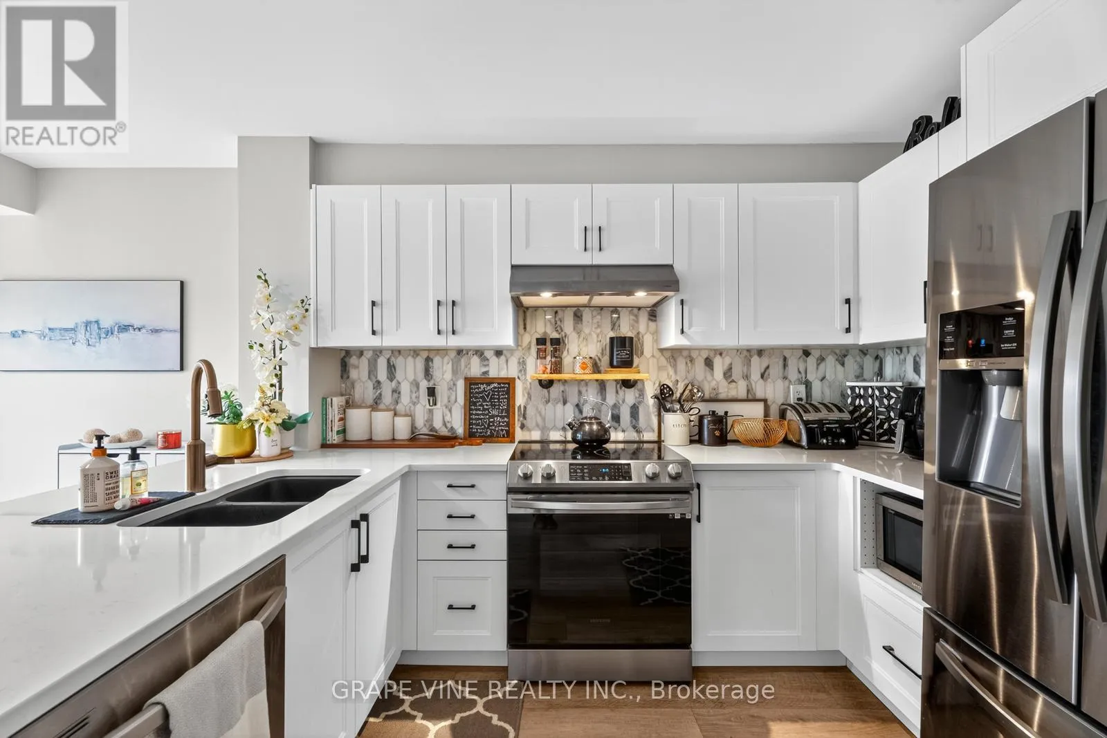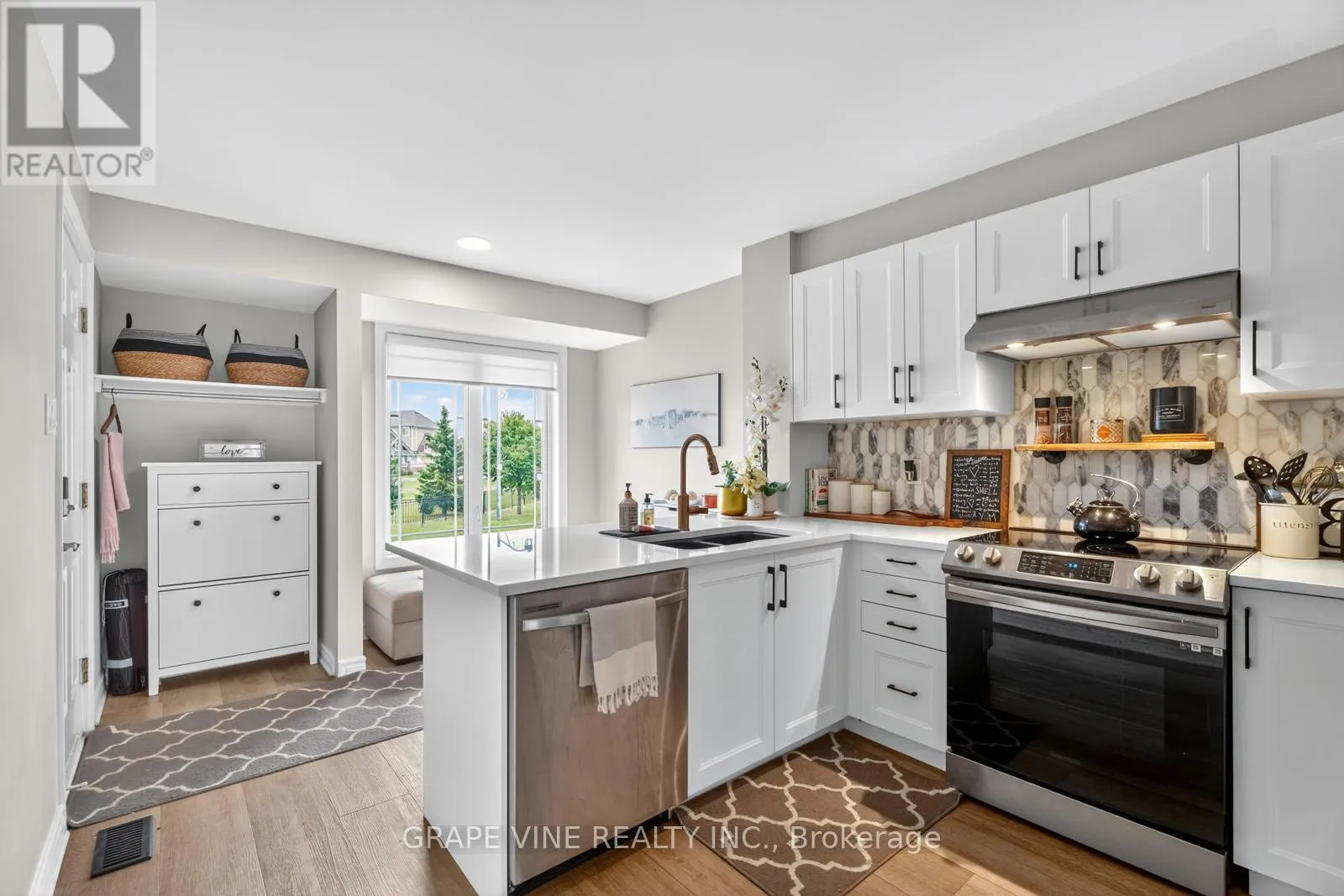 Brian Coburn / Lakeridge Freshly renovated, this beautiful property features a modern kitchen with spacious cabinetry, quartz countertops, a stylish backsplash, and stainless-steel appliances. The bright front entry offers versatile space, perfect for a home office or cozy eat-in area. Enjoy brand-new carpet and upgraded hardwood floors throughout. The lower level boasts bright, spacious bedrooms, each with its own 4-piece ensuite, large closets, and ample storage. Step outside to your private ground-level outdoor space, ideal for relaxing or entertaining. Situated on a premium lot in a prime location, you'll love being surrounded by parks, nature trails, and having easy access to shopping, restaurants and transit. Added bonuses include a new furnace, two parking spaces, and a flexible closing date to suit your needs. (id:27476)