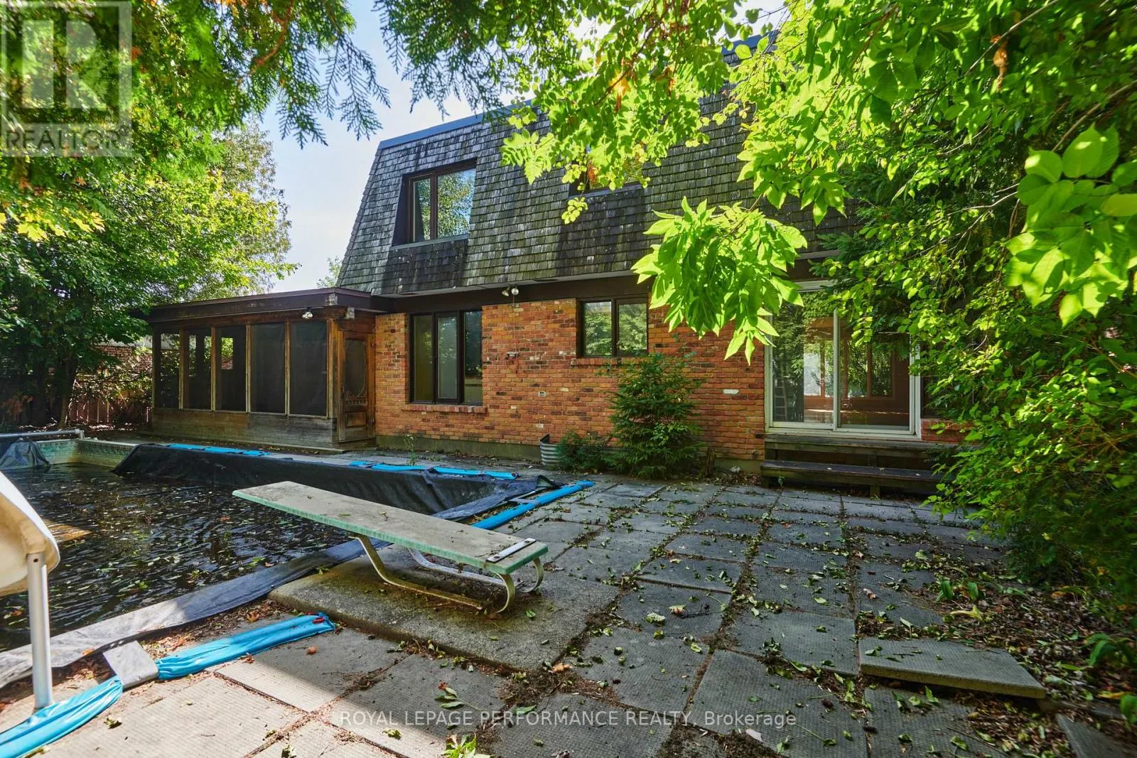 Right on Teron Rd/ Left on Beaverbrook/ Left on Leacock Welcome to 59 Leacock Drive, a beautifully maintained single family home located in a quiet, established neighbourhood in the heart of Kanata. This spacious two-storey property offers exceptional living space inside and out, perfect for growing families and those who love to entertain. The main floor features rich hardwood flooring, creating a warm and inviting atmosphere. The bright living room includes a cozy fireplace and flows seamlessly into the formal dining room, ideal for hosting family gatherings. A large kitchen sits at the heart of the home, complete with a center island, ample counter space, and a sunny eat-in breakfast area. Just off the kitchen, a sunroom offers the perfect spot to relax while enjoying views of the large in-ground pool and private backyard. A dedicated main-floor office provides a quiet workspace, ideal for remote work or study. Upstairs, the generous primary bedroom includes a private ensuite bathroom, while three additional large bedrooms offer plenty of space for family or guests. A well-appointed four-piece main bathroom completes the upper level. The fully finished basement adds even more versatility with a spacious fifth bedroom featuring a walk-in closet, a large recreation room with ample storage space. Additional highlights include a double car garage, mature landscaping, and a prime location close to top-rated schools, parks, shopping, trails, and public transit. (id:27476)