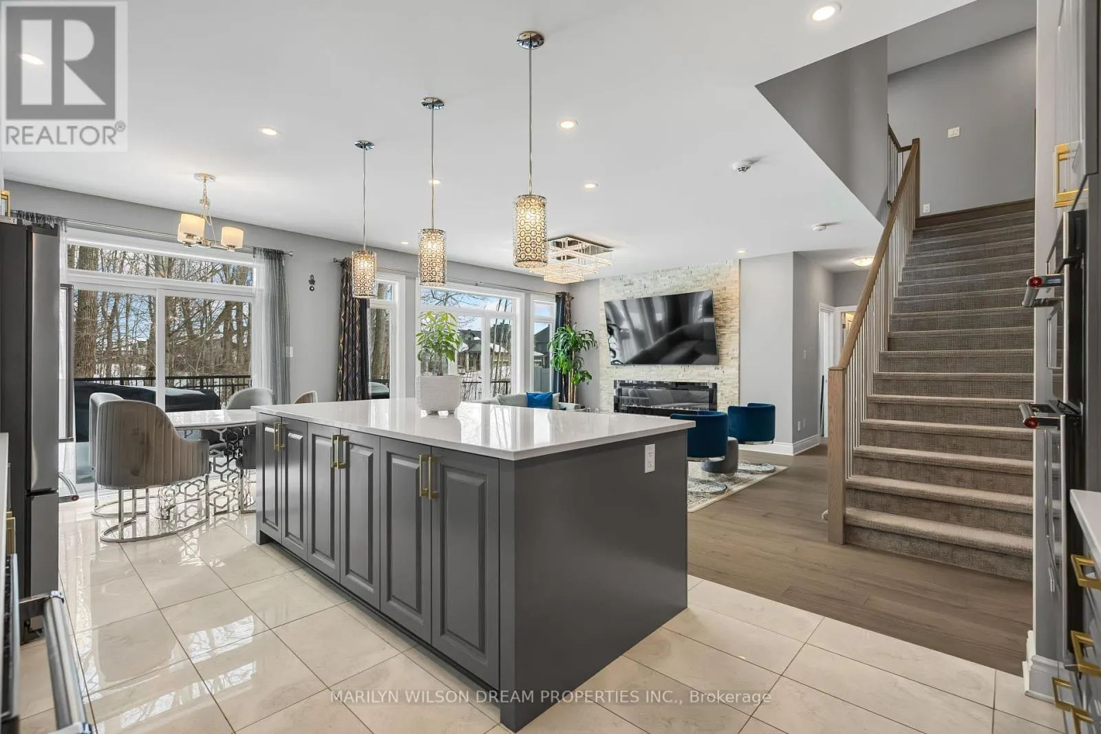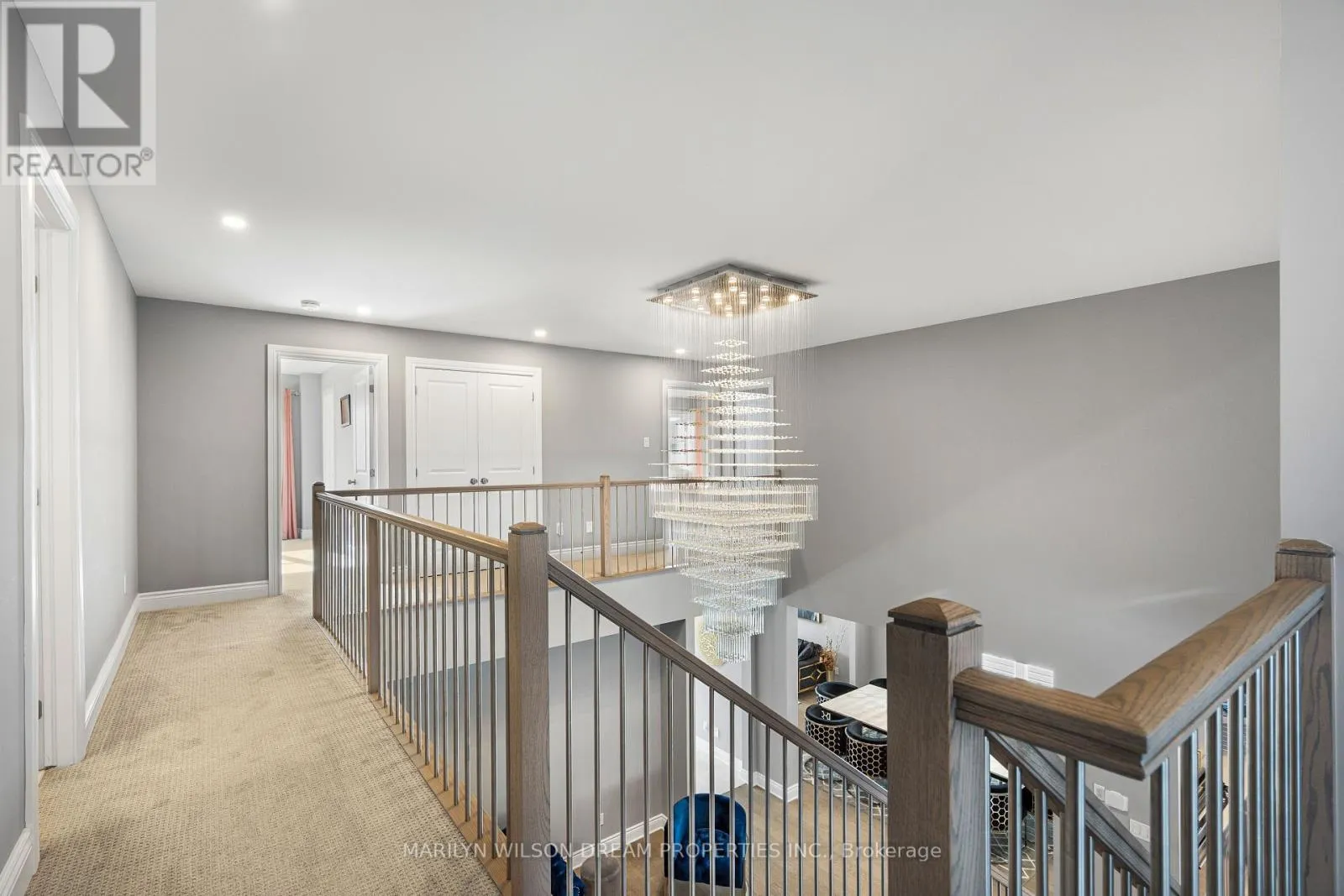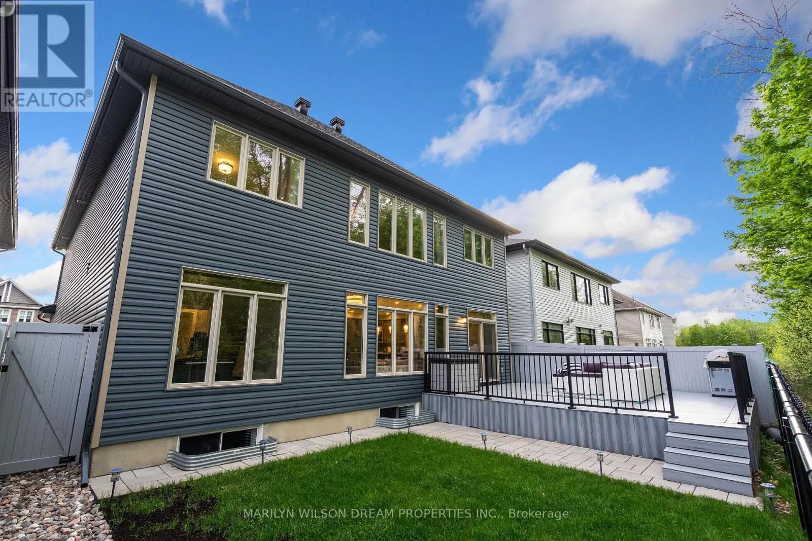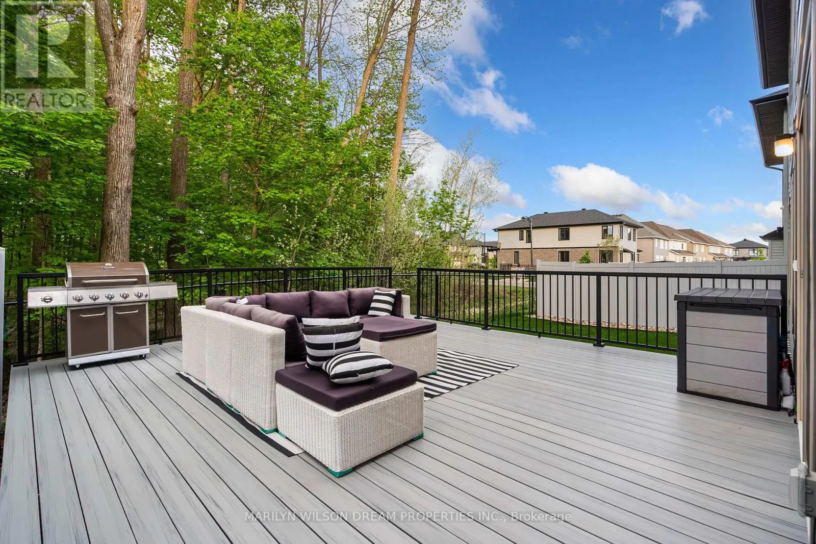 Cross Streets: Bobolink Ridge /Robert Grant Avenue. ** Directions: Starting from Abbott Street East, turn right onto Robert Grant Ave and head southeast. Take the 1st exit at the roundabout onto Bobolink Ridge, then turn right onto Angel Heights. Welcome to this stunning showpiece on a premium 45-ft lot with no rear neighbours, backing onto a serene forest with access to the Trans Canada Trail. Located in Westwood & Blackstone, this 4+ suite residence spans 3,500 sq. ft. + 805 sq. ft. lower level, blending sophisticated design with modern comfort. Step into the grand entryway with soaring 17-ft ceilings and three chandeliers. Sunlight floods the open space, highlighting tree-lined views and an elegant neutral palette. The great room is ideal for gatherings or quiet afternoons. At the heart of the home, the chefs kitchen features upgraded cabinetry, an 8-ft granite island, a built-in wall oven & microwave, stainless steel appliances, and ample storage. Wood floors extend through the main level, complemented by oversized glossy tiles. A private main-floor office offers a peaceful workspace with forest views. Upstairs, polished nickel balusters add sophistication to the stairs and upper hallway. The expansive primary suite includes a spa-inspired 5-piece ensuite with a freestanding soaker tub, glass-enclosed shower, dual vanity, and two walk-in closets. Two additional bedrooms share a convenient ensuite, while the fourth has access to a nearby full bath.The basement offers a recreation room, full three-piece bathroom, and a dedicated laundry room with ample storage.The backyard provides privacy with a full PVC deck, lush lawn, and serene forest views. Enjoy morning coffee on the patio or a summer barbecue with nature just beyond your fence. Westwood & Blackstone blends convenience with natural beauty, offering top-rated schools, parks, and urban amenities. Outdoor enthusiasts will appreciate easy access to hiking, biking, and year-round recreation. Kanata's high-tech hub, shopping, and dining are just minutes away. 24-hour irrevocable on all offers. (id:27476)