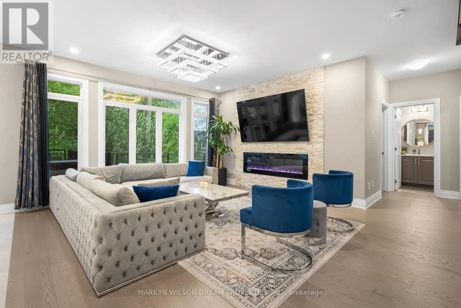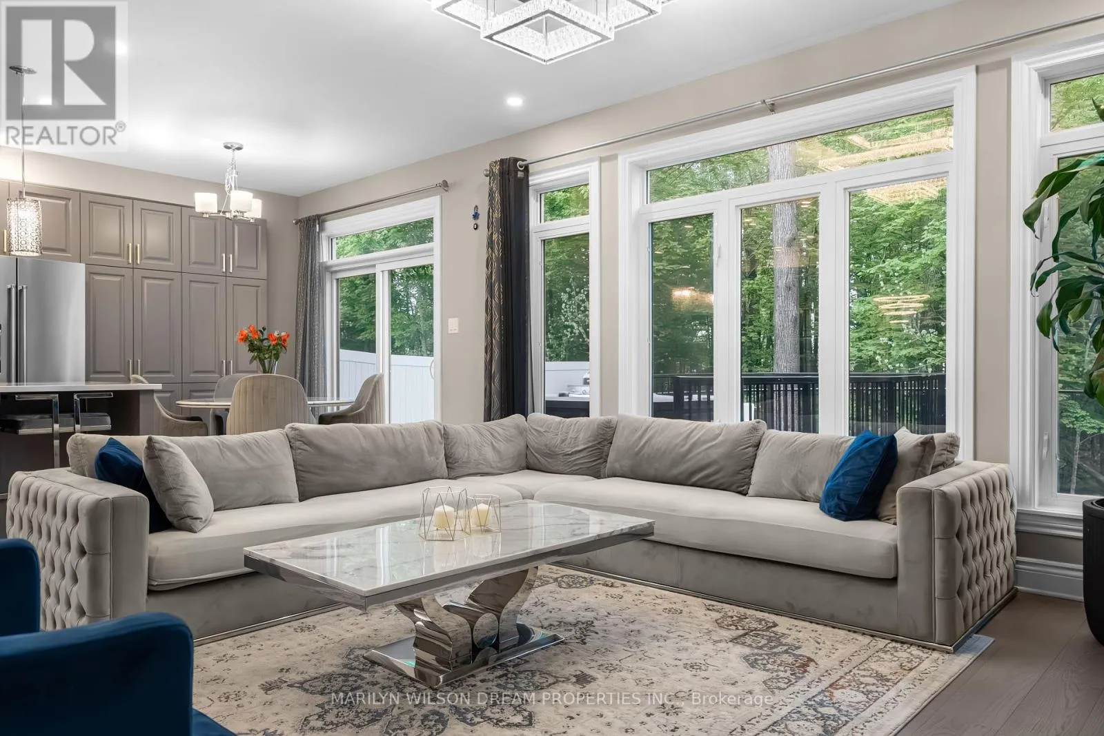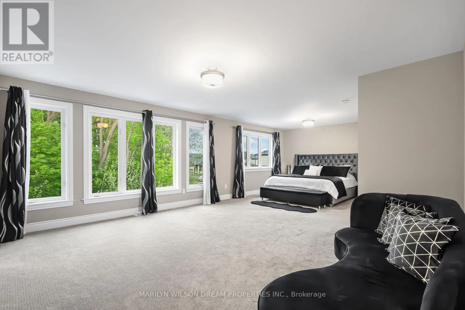 Cross Streets: Bobolink Ridge /Robert Grant Avenue. ** Directions: Starting from Abbott Street East, turn right onto Robert Grant Ave and head southeast. Take the 1st exit at the roundabout onto Bobolink Ridge, then turn right onto Angel Heights. Welcome to this stunning showpiece on a premium 45-ft lot with no rear neighbours, backing onto a serene forest with access to the Trans Canada Trail. Located in Westwood & Blackstone, this 4+ suite residence spans 3,500 sq. ft. + 805 sq. ft. lower level, blending sophisticated design with modern comfort. Step into the grand entryway with soaring 17-ft ceilings and three chandeliers. Sunlight floods the open space, highlighting tree-lined views and an elegant neutral palette. The great room is ideal for gatherings or quiet afternoons. At the heart of the home, the chefs kitchen features upgraded cabinetry, an 8-ft granite island, a built-in wall oven & microwave, stainless steel appliances, and ample storage. Wood floors extend through the main level, complemented by oversized glossy tiles. A private main-floor office offers a peaceful workspace with forest views. Upstairs, polished nickel balusters add sophistication to the stairs and upper hallway. The expansive primary suite includes a spa-inspired 5-piece ensuite with a freestanding soaker tub, glass-enclosed shower, dual vanity, and two walk-in closets. Two additional bedrooms share a convenient ensuite, while the fourth has access to a nearby full bath.The basement offers a recreation room, full three-piece bathroom, and a dedicated laundry room with ample storage.The backyard provides privacy with a full PVC deck, lush lawn, and serene forest views. Enjoy morning coffee on the patio or a summer barbecue with nature just beyond your fence. Westwood & Blackstone blends convenience with natural beauty, offering top-rated schools, parks, and urban amenities. Outdoor enthusiasts will appreciate easy access to hiking, biking, and year-round recreation. Kanata's high-tech hub, shopping, and dining are just minutes away. 24-hour irrevocable on all offers. (id:27476)