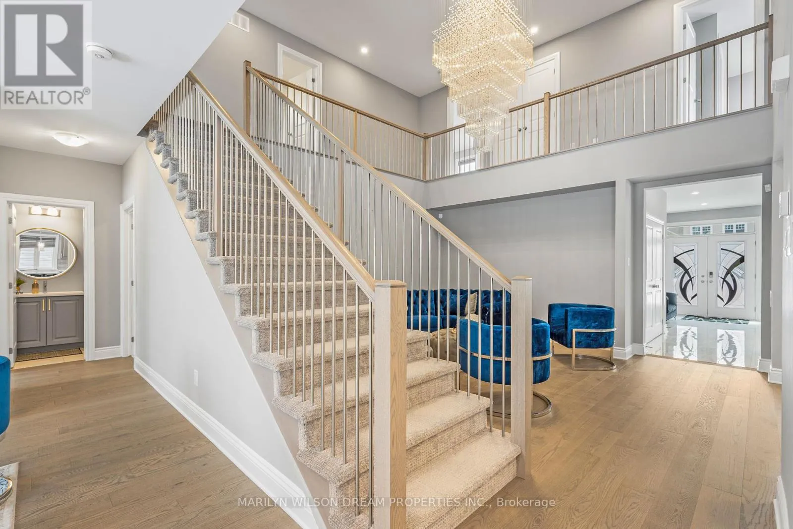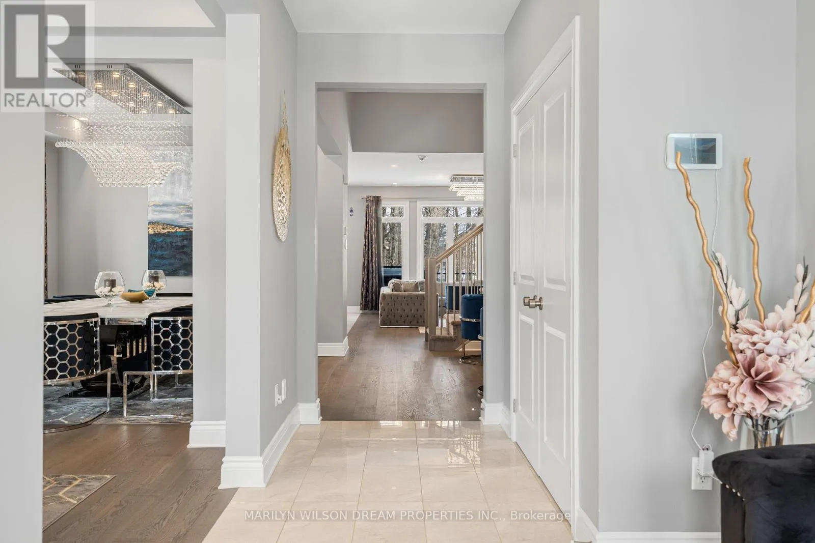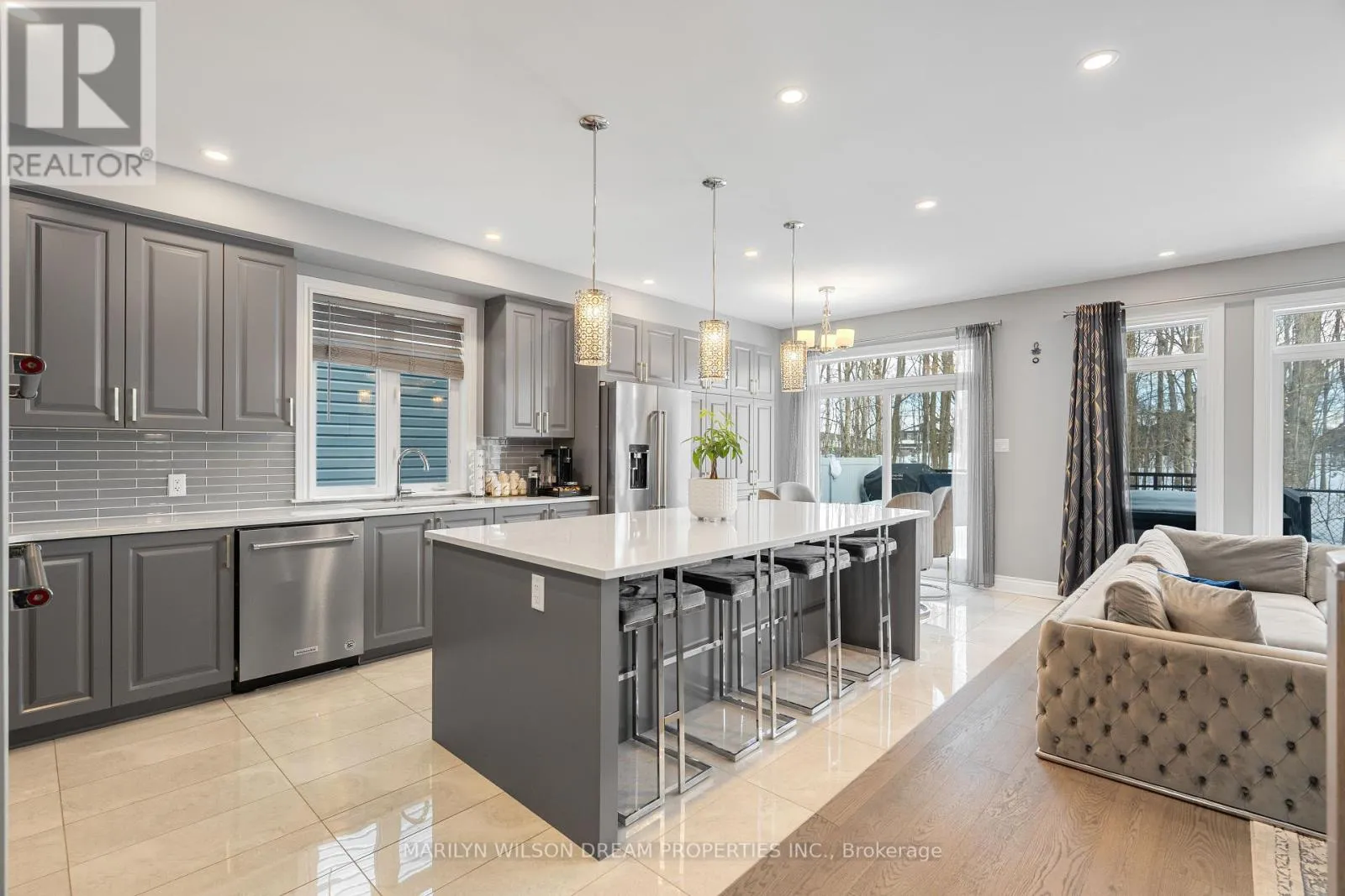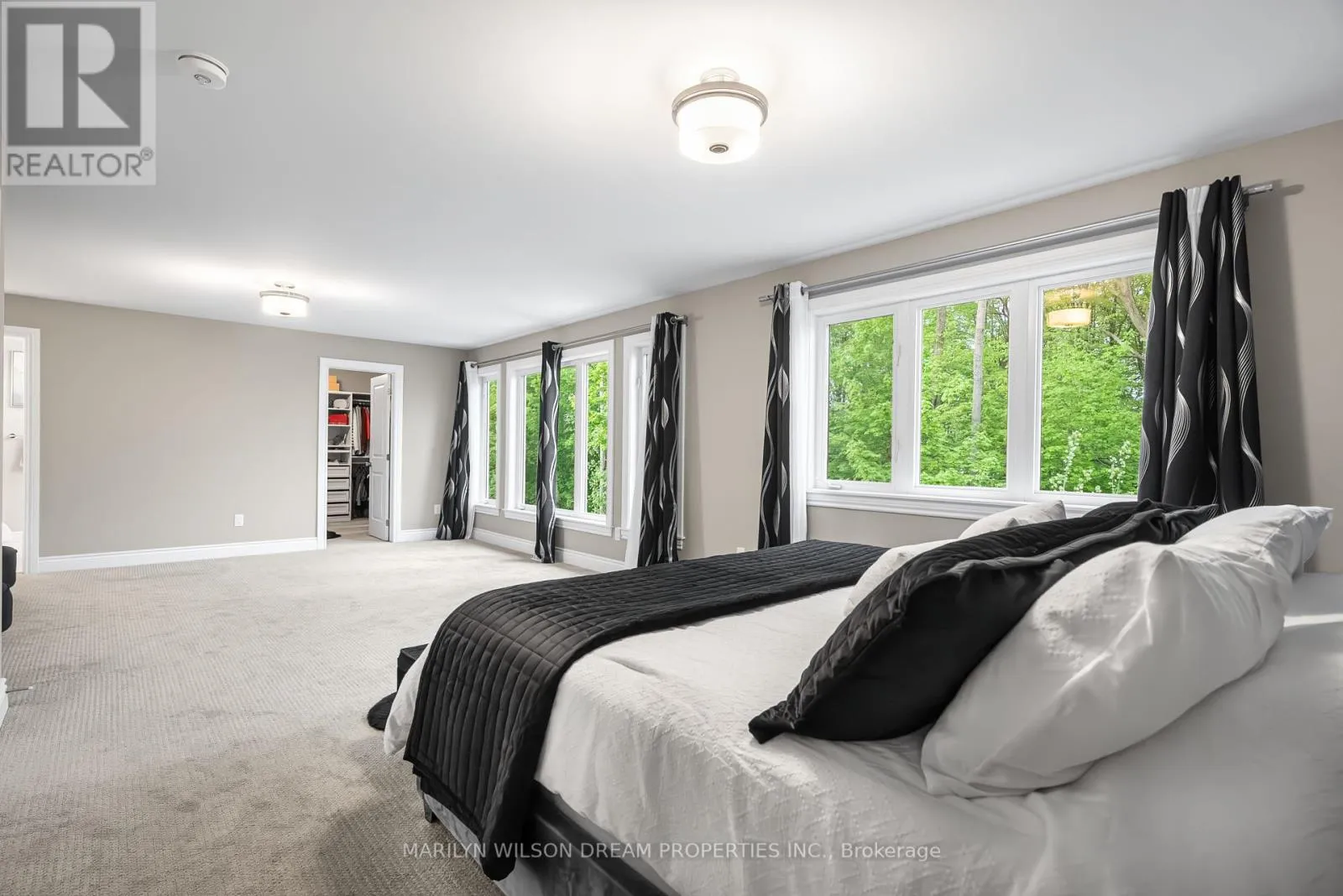 Cross Streets: Bobolink Ridge /Robert Grant Avenue. ** Directions: Starting from Abbott Street East, turn right onto Robert Grant Ave and head southeast. Take the 1st exit at the roundabout onto Bobolink Ridge, then turn right onto Angel Heights. Welcome to this stunning showpiece on a premium 45-ft lot with no rear neighbours, backing onto a serene forest with access to the Trans Canada Trail. Located in Westwood & Blackstone, this 4+ suite residence spans 3,500 sq. ft. + 805 sq. ft. lower level, blending sophisticated design with modern comfort. Step into the grand entryway with soaring 17-ft ceilings and three chandeliers. Sunlight floods the open space, highlighting tree-lined views and an elegant neutral palette. The great room is ideal for gatherings or quiet afternoons. At the heart of the home, the chefs kitchen features upgraded cabinetry, an 8-ft granite island, a built-in wall oven & microwave, stainless steel appliances, and ample storage. Wood floors extend through the main level, complemented by oversized glossy tiles. A private main-floor office offers a peaceful workspace with forest views. Upstairs, polished nickel balusters add sophistication to the stairs and upper hallway. The expansive primary suite includes a spa-inspired 5-piece ensuite with a freestanding soaker tub, glass-enclosed shower, dual vanity, and two walk-in closets. Two additional bedrooms share a convenient ensuite, while the fourth has access to a nearby full bath.The basement offers a recreation room, full three-piece bathroom, and a dedicated laundry room with ample storage.The backyard provides privacy with a full PVC deck, lush lawn, and serene forest views. Enjoy morning coffee on the patio or a summer barbecue with nature just beyond your fence. Westwood & Blackstone blends convenience with natural beauty, offering top-rated schools, parks, and urban amenities. Outdoor enthusiasts will appreciate easy access to hiking, biking, and year-round recreation. Kanata's high-tech hub, shopping, and dining are just minutes away. 24-hour irrevocable on all offers. (id:27476)