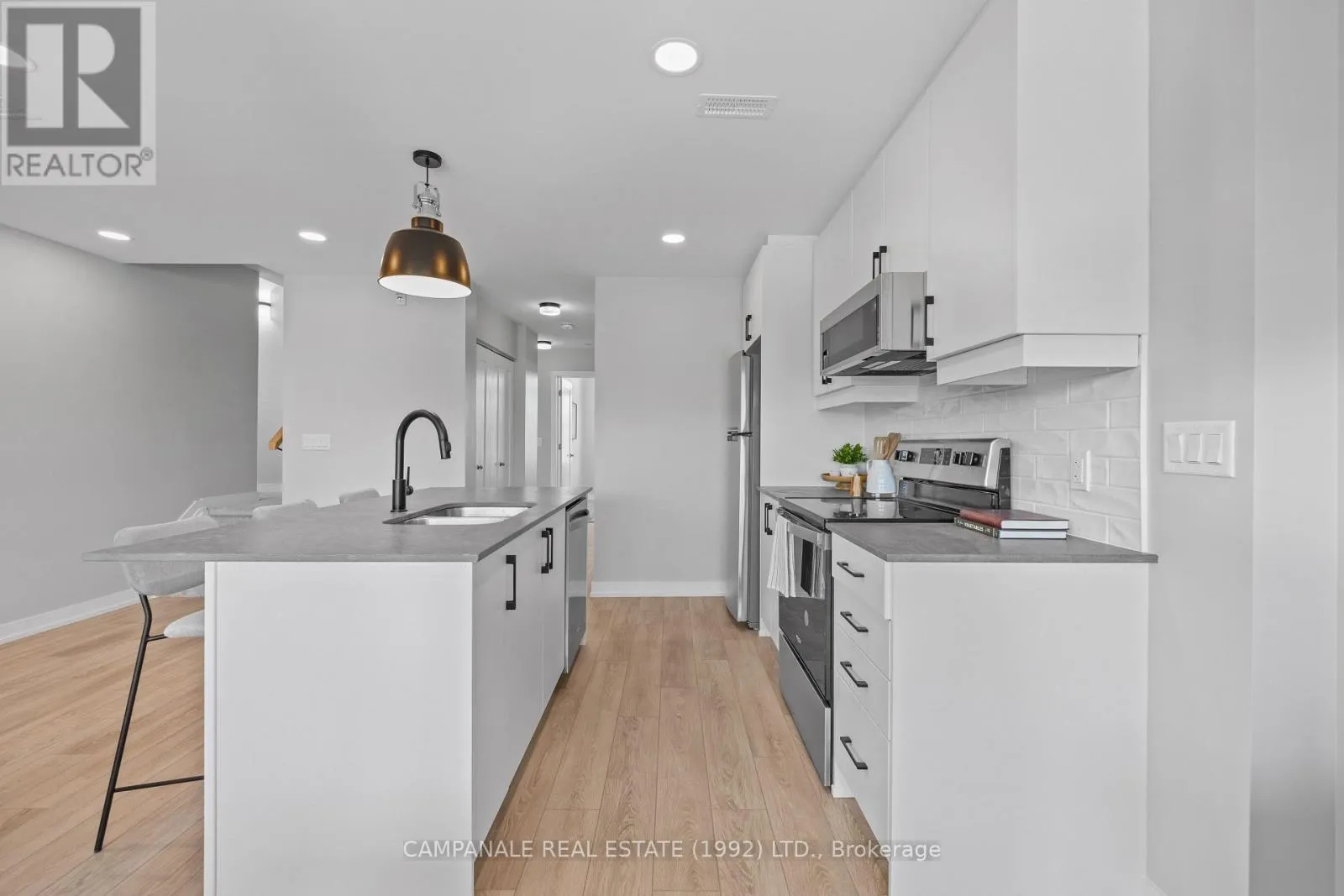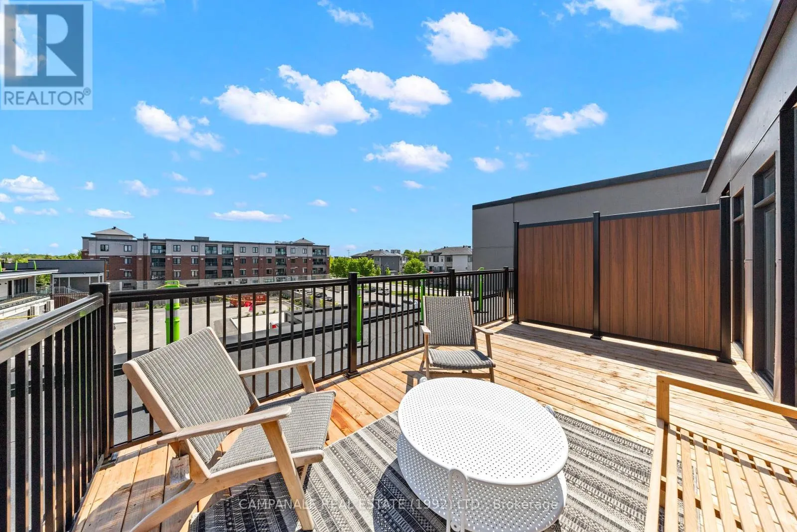 Cross Streets: Longfields Drive. ** Directions: Turn right onto Fallowfield Road. Turn left onto Woodroffe Avenue. Turn left onto Longfields Drive. Turn right onto Via Campanale Avenue. Turn left onto Via Modugno Avenue / Place. Welcome to this award-nominated NEW two-storey, three-bedroom, two-bathroom condo in the heart of Barrhaven, where modern design meets everyday comfort. This thoughtfully designed home features luxury vinyl plank flooring throughout, central air conditioning, and an open-concept main floor with a bright living and dining area that flows seamlessly into a contemporary kitchen complete with a quartz island and flush eating bar, and four stainless steel appliances including fridge, stove, dishwasher, and microwave with hood fan. The spacious primary bedroom offers a walk-in closet, while two additional bedrooms provide flexibility for family, guests, or a home office. A private rooftop patio, perfect for entertaining or relaxing, is enhanced by a wet bar and wine fridge conveniently located at the entry. In-suite laundry with washer and dryer are included, and the community offers one parking spot with visitor parking, electric car charging stations, a separate garbage enclosure, and a shared amenity space. Pet friendly and stylishly finished, this condo is ready to impress. Utilities not included: gas, hydro, water, and rental equipment (boiler, ERV, air handler, and heat pump). (id:27476)