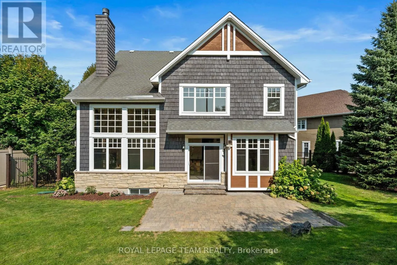 Campeau Dr, Turn right onto Teron Rd, Turn left onto Beaverbrook Rd, Turn right onto Weslock Way, Turn left onto Walden Dr, Turn right onto Ironside Crt Welcome to this exquisite Craftsman-style executive residence, gracefully positioned on a quiet crescent in prestigious Kanata Lakes. Set on a large corner pie-shaped lot w/timeless curb appeal, a charming covered front porch, & a family-friendly setting just minutes from Beaver Pond trails & top-ranked schools, this home blends classic character w/refined modern updates. The main level showcases a tiled foyer w/French drs, a beautifully renovated powder room, & elegant LR & DR enhanced by refinished HW flooring, stone accents, & crown moulding. At the heart of the home, the dramatic two-storey FR is framed by a Juliet balcony above & a striking WETT-certified wood-burning FP w/floor-to-ceiling stone surround. The thoughtfully updated kitchen offers quartz counters, herringbone backsplash, peninsula w/bar seating & sink, island w/double sink, SS appl, & a bright breakfast area w/access to the landscaped rear yard. A sophisticated main-floor den w/custom wood built-ins & shutters provides the perfect executive office or retreat. The second level presents a true 5-bdrm layout, including a luxurious primary suite w/transom ceiling, WIC, & spa-inspired ensuite w/dbl sinks, soaker tub, & slate shower w/rain head. The renovated main bath completes this floor. The finished LL extends the living space w/a rec rm, dbl-dr flex/gym, private bdrm w/3-pc bath, & a spacious laundry rm. Outdoors, the fully fenced yard features an interlock patio, mature fruit trees, & generous play space. Extensive updates include int painting (2025), patio door replaced (2025), kitchen flooring & cabinetry (2024), main floor bath (2024) ensuite & bath vanity & lighting (2024), exterior paint (2024), & landscaping/driveway (2022), furnace (2021), washer/dryer (2021), A/C (2018), roofing updates by previous owner (2018). Security system is owned. A rare offering combining elegance, warmth & location. 24 hrs irrev. on all offers. Some photos virtually staged. (id:27476)
