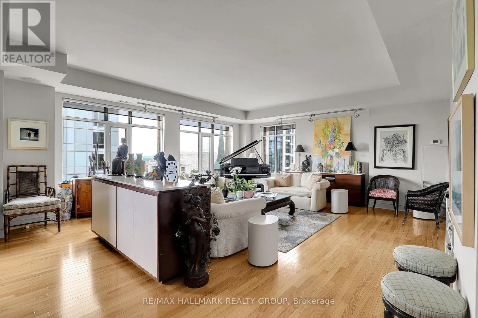 Bronson Avenue at Queen Street. Experience luxury and space in this rare 3-bedroom (or 2-bedroom plus den) unit perched high above Ottawa's vibrant Centretown with stunning north-west views of the Ottawa River and the Gatineau Hills and balconies on both the north and south sides. Designed with an open-concept layout, the home is bathed in natural light, highlighting the rich hardwood flooring and elegant finishes and is ideal for entertaining. The gourmet kitchen boasts granite countertops, stainless steel appliances, and a rare double pantry. The primary suite features a spacious 5-piece ensuite, providing a serene retreat, walk-in closet with custom built-ins and balcony. The versatile layout makes for an ideal work from home space. Additional conveniences include in-unit laundry, two storage lockers combined, two underground parking spaces (with potential for third spot not included). Building amenities include the peaceful Gardens, gym, party room and underground guest parking. Steps to the Ottawa River Parkway walking and biking paths, Lyon Street O-train, Lebreton Flats and the new library as well as all Centretown has to offer. Vacant, quick closing available. Parking PB 33 & 34. Locker PB 13 & 14. (id:27476)