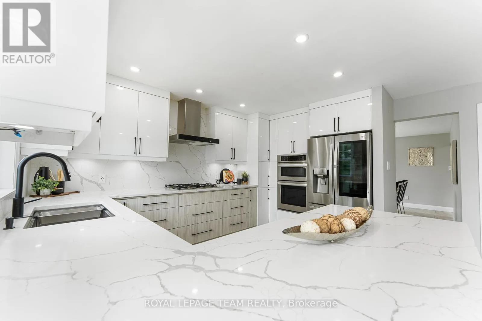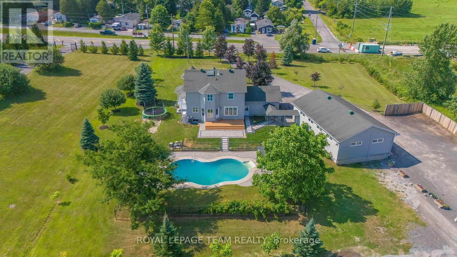 Cross Streets: Bank St and Mitch Owens Rd. ** Directions: 416 South to Barnsdale Rd. East on Barnsdale to Manotick Main St. Turn right onto Manotick Main St. Turn left onto Bridge St. Continue on Bridge St. to Mitch Owens (13km) Destination will be on your right. INCREDIBLE OPPORTUNITY!! Beautifully renovated inside & out, this 4+1 Bed, 3.5 Bath home offers exceptional living space & unbeatable versatility that's ideal for families, hobbyists, or home-based businesses. Set on a private 2-acre lot w/heated inground pool, extensive landscaping, interlock, mature trees & charming wraparound porch. Calling all contractors, car collectors, tradespeople, or entrepreneurs- The 1,500 sq.ft. detached 6 car heated Garage/Shop is a dream come true! Could install lifts or hoists. Featuring running water, dedicated internet wiring & endless flexibility. Also included: GENERAC, a 30'x40' storage shelter, The 20,000 sq.ft. gravel yard is perfect for equipment, tools, or toys. Inside, high-end finishes shine throughout. The chef-inspired eat-in kitchen features STUNNING quartz counters, waterfall island w/breakfast bar, custom cabinetry, high-end SS appl's & access to the PVC deck for easy summer entertaining. Kitchen opens to a spacious living/family rm w/double-sided gas FP. Adjacent is an entertainment-sized dining rm w/cozy nook & custom serving station. The den (or 4th bdrm), 2pc powder rm & large laundry/mudrm complete this main level. The custom hardwood staircase leads upstairs to a luxurious primary suite w/bow window seating area, WIC & spa-like ensuite w/soaker tub, separate shower, quartz counters & dbl sinks w/LED mirrors. Two additional bdrms & a renovated full bath complete this level. The fully finished bsmt features a 5th bedrm, gorgeous 3pc bath, family rm (gym/playroom) & ample storage. Backyard is a showstopper- separately fenced, heated inground pool, interlock patio & gazebo make the ultimate outdoor retreat. Rural feel with city conveniences! Ideal location just 3km west of Bank St. Also just 10min to the quaint village of Manotick & the Rideau River. 15 min to Airport, 20 min to downtown Ottawa. Blends peaceful rural living, yet still within easy reach of key amenities & recreation. A must see! (id:27476)