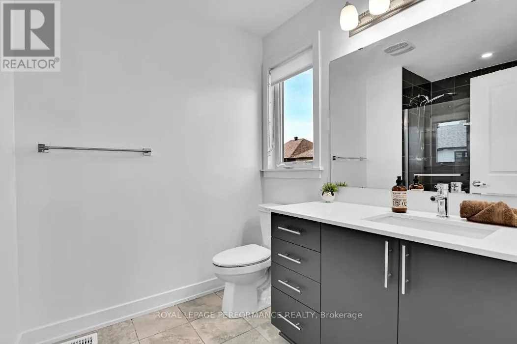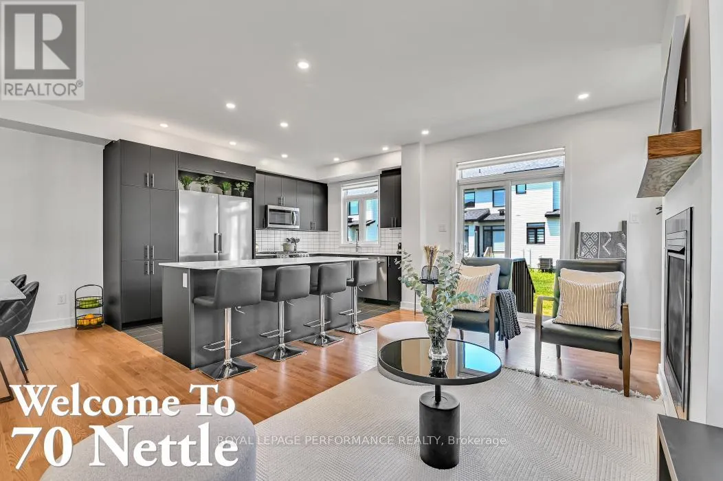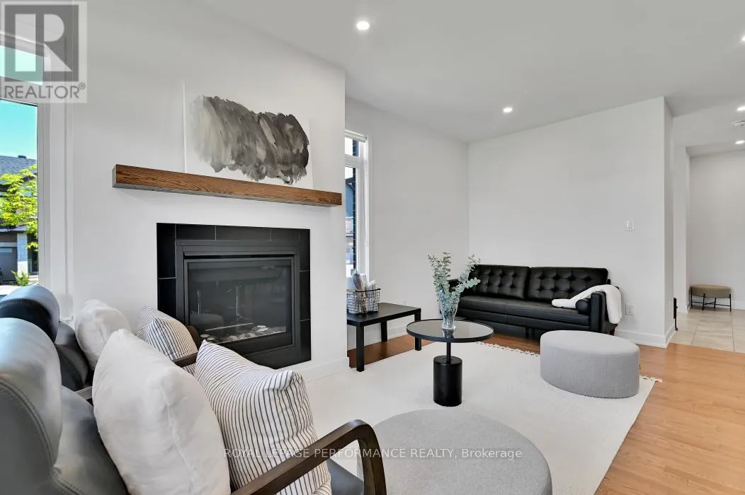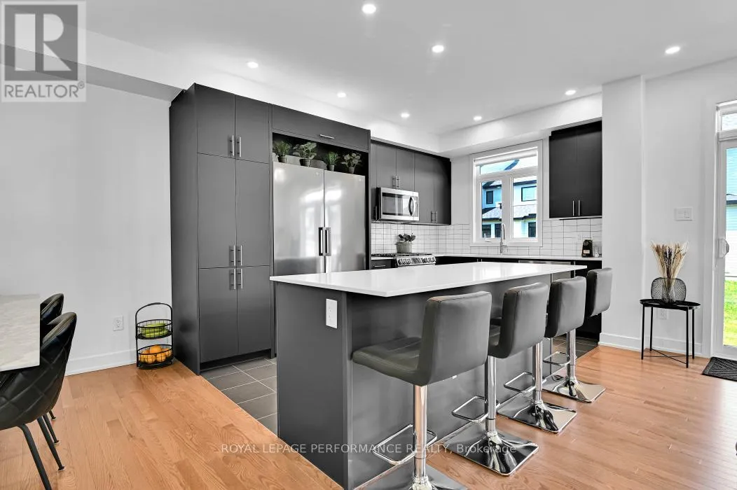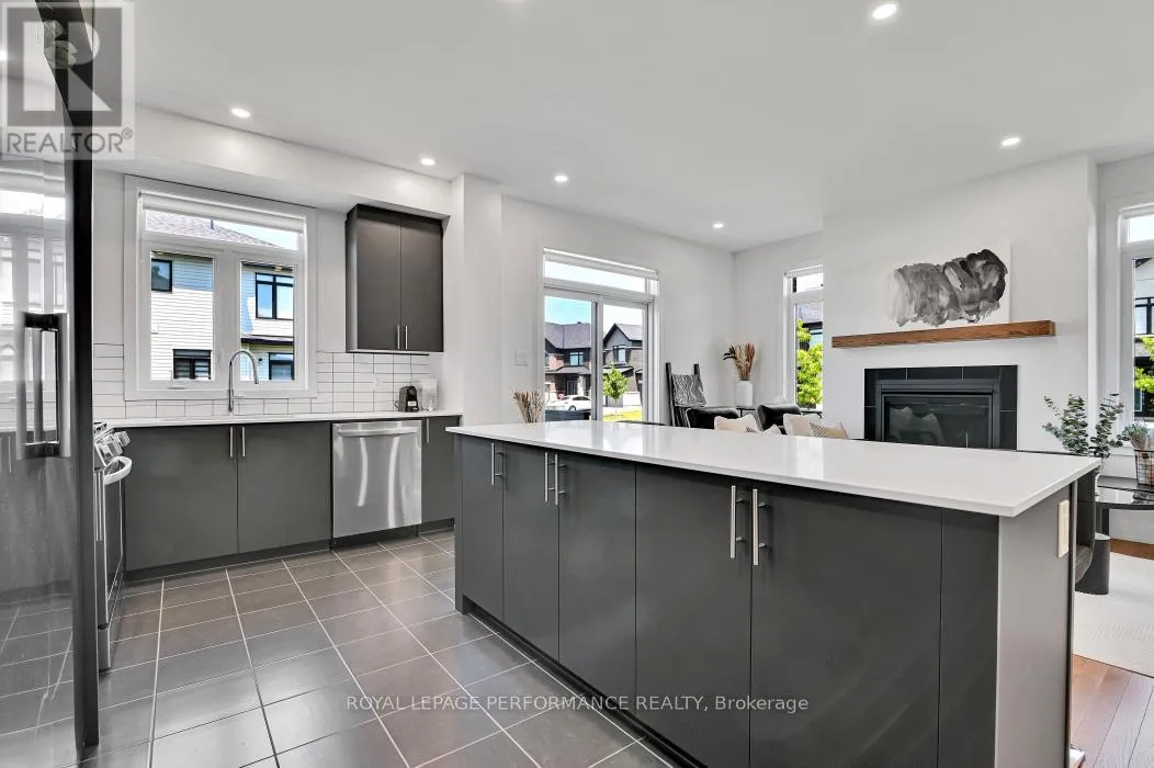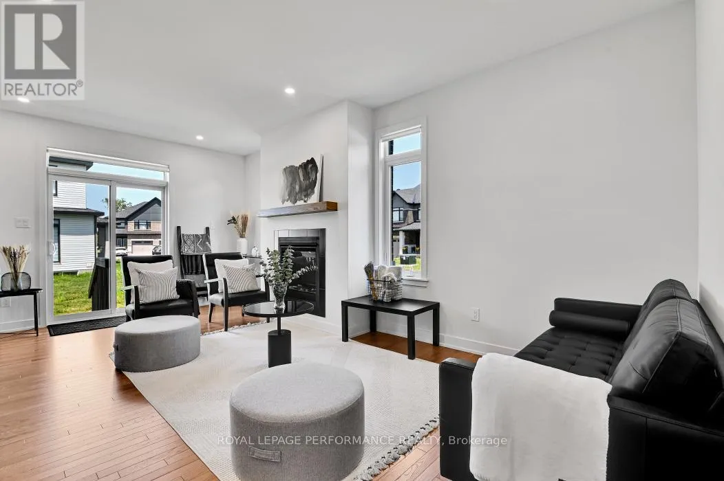 Cross Streets: Rotary Way. ** Directions: Bank Street to Rotary Way to Nettle Crescent. This is the one!!! Sun-filled End-Unit Townhome in Family-Friendly Findlay Creek! This beautifully upgraded corner unit offers over 2,200 sq. ft. of stylish, functional living space. With an open-concept layout and large windows throughout, the home is flooded with natural light. Gleaming hardwood floors span the main and second levels, including the elegant modern staircase adding warmth and sophistication throughout.The main floor features a beautiful kitchen with high end appliances, quartz kitchen countertops with straight edge profile, living room with gas fireplace and a powder room. Upstairs, youll find four spacious bedrooms, including a private ensuite bathroom.The fully finished basement offers a cozy carpeted rec room with upgraded basement bathroom with vanity, toilet, and tub-shower combination. Enjoy the convenience of a double car garage and a fantastic location near parks and green space.This home is filled with high-end finishes and over $50K in upgrades. A rare opportunity in a sought-after neighborhood, book your showing today! (id:27476)