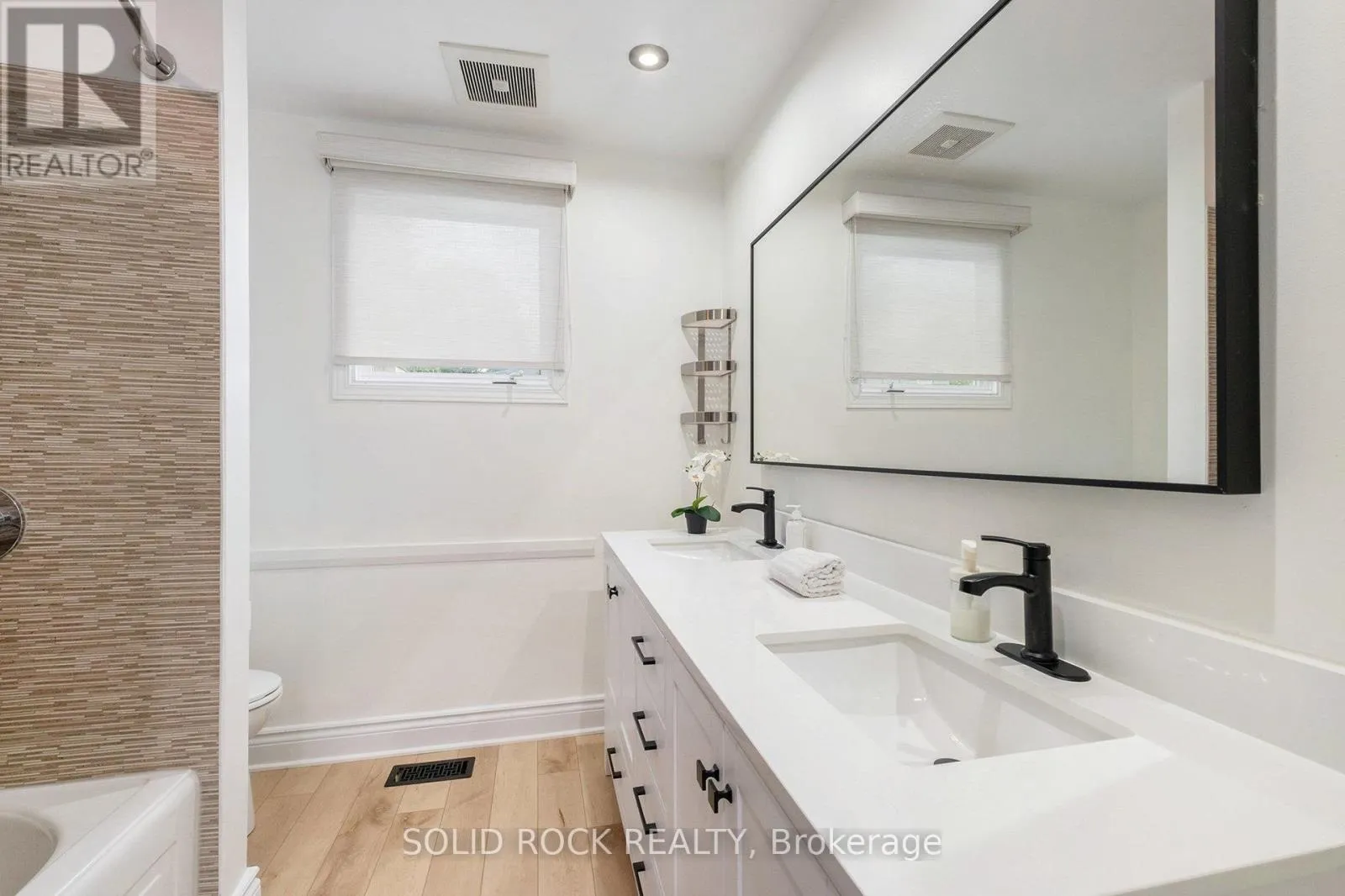 Cross Streets: Amberwood Crescent & Merivale Road. ** Directions: From Hunt Club Road, proceed south on Merivale Road, turn left onto Amberwood Cres. then left again onto Weatherwood Cres. From Prince of Wales Drive, head south and turn right onto Amberwood Cres., continuing through to Weatherwood Cres. **OPEN HOUSE: Sunday November 23rd 2pm-4pm** Rarely offered 5-bedroom SMART home in the sought-after Country Place community. Set on a quiet & tree-lined street, this updated home offers bright living spaces and great curb appeal. The COMPLETELY RENOVATED home boasts over $100k in upgrades. This home features a large, bright entrance foyer with modern ceramic tile stretching through the center hall to the modern kitchen with quartz counters, backsplash, pot lights & stainless steel appliances with a large and bright eat-in area overlooking the backyard. Elegant FRENCH doors open into the bright living room, while the open layout between the living & dining rooms make entertaining easy while hosting many family & friend gatherings. The spacious family room features a substantial window allowing loads of natural light to flow through, a GAS fireplace surrounded by a floor-to-ceiling brick accent wall and gold trim, & BRAND NEW wide-plank engineered hardwood floors ideal for experiencing cold nights in extreme comfort! The recently renovated mud room with laundry & powder room with access to the back completes the main floor. New carpet on the going upstairs and throughout the landing and hallway ensures you are walking in comfort. The primary suite includes hardwood floors, a hallway of closets & RENOVATED 4-pc ensuite. 4 other bedrooms with hardwood floors and a renovated main bathroom with double sinks ensure you never run out of room for family! Smart home app allows you to control lights from your phone & EV charger installed! The completely updated finished basement adds space for recreation, fitness or storage. Outside, enjoy a fenced backyard with deck, interlock patio & landscaped gardens with in-ground sprinkler system! A spacious home in a prime Ottawa location perfect for families! (id:27476)