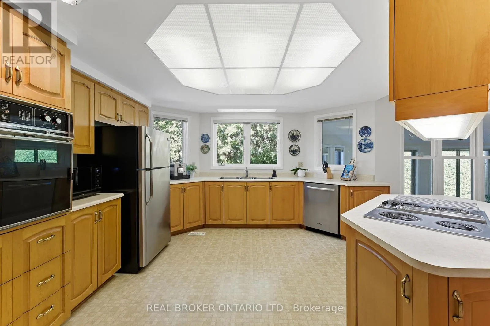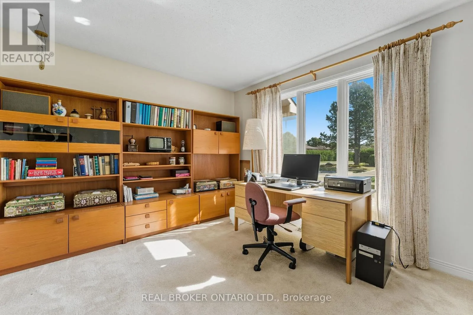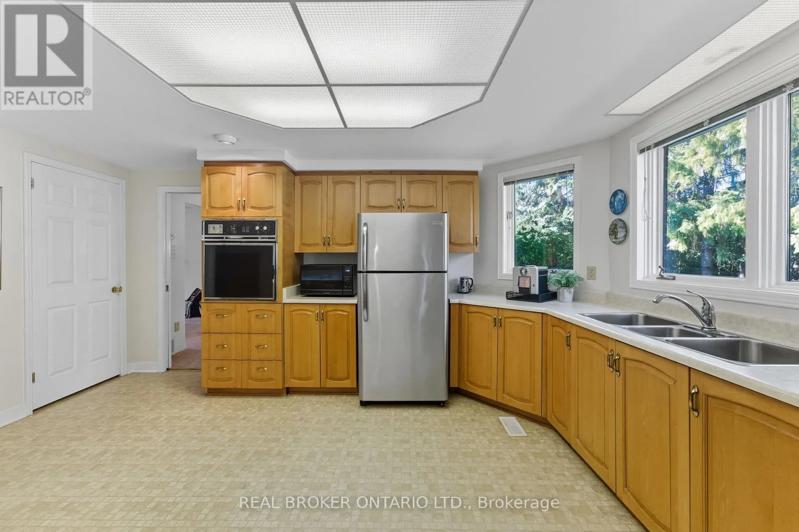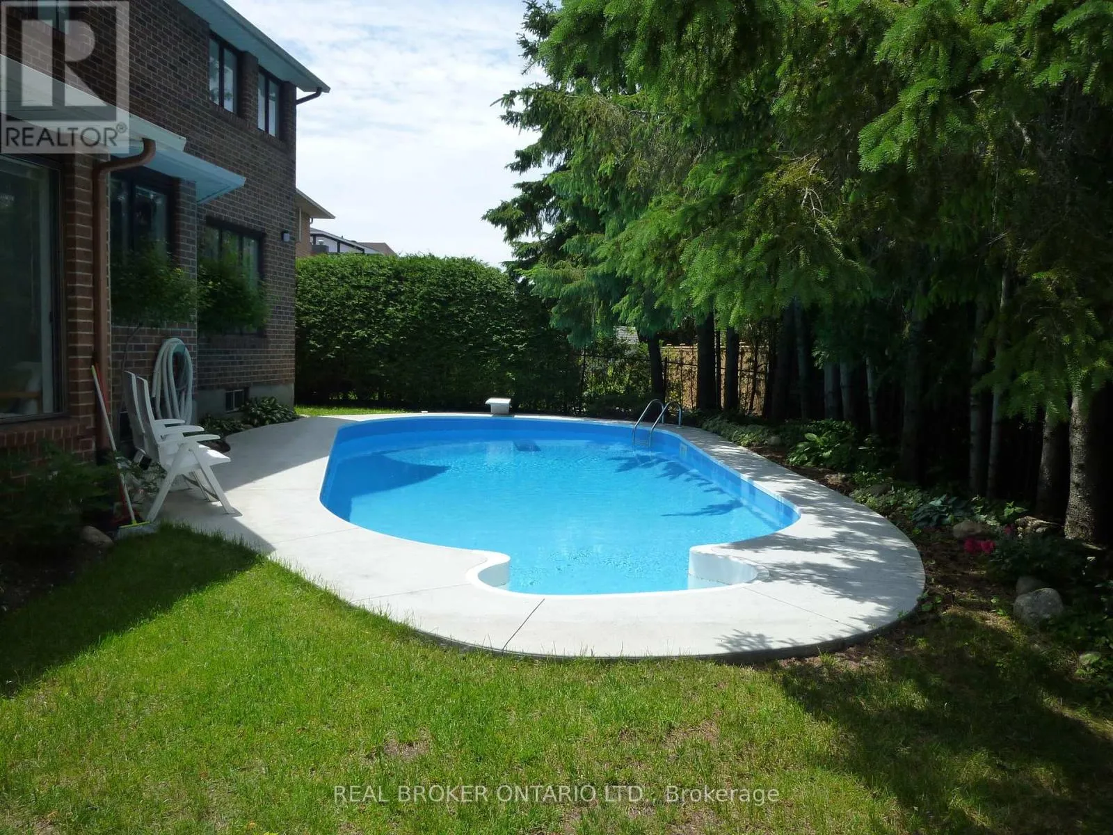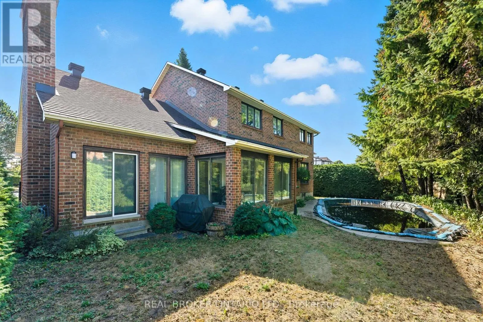 Cross Streets: Trailway Circle. ** Directions: Abbott St E to Moss Hill Trail then left onto Trailway. Follow to Red Oaks. Sign on property. They just don't make them like this anymore. This solid, all brick Holitzner built 4 bedroom home is in the highly regarded Amberwood community of Stittsville. Set on a private, fully hedged lot with a glorious inground pool, this residence offers both space and lifestyle in a neighbourhood known for its prestige, mature trees, and proximity to golf, trails, and all amenities. Inside, you'll find a bright and well cared for home with almost 3000 sq. ft. above grade. The main level features a formal living + dining room with a cozy wood fireplace, a sunken family room with a 2nd wood burning fireplace overlooking the backyard. Don't miss the main floor study and convenient laundry room. A sunroom provides the perfect spot for your morning coffee or quiet retreat after your morning dip in the pool. Upstairs boasts exceptionally generous secondary bedrooms along with a sprawling primary suite complete with walk-in closet and ensuite. The lower level is an untouched blank canvas ready for your ideal rec room, gym, or hobby space. While the finishes are largely original, the home is clean, bright, and full of potential to personalize. With it's unbeatable location, classic layout, and rare private yard, this is an opportunity to secure a true gem in one of Stittsvilles most sought after enclaves. (id:27476)
