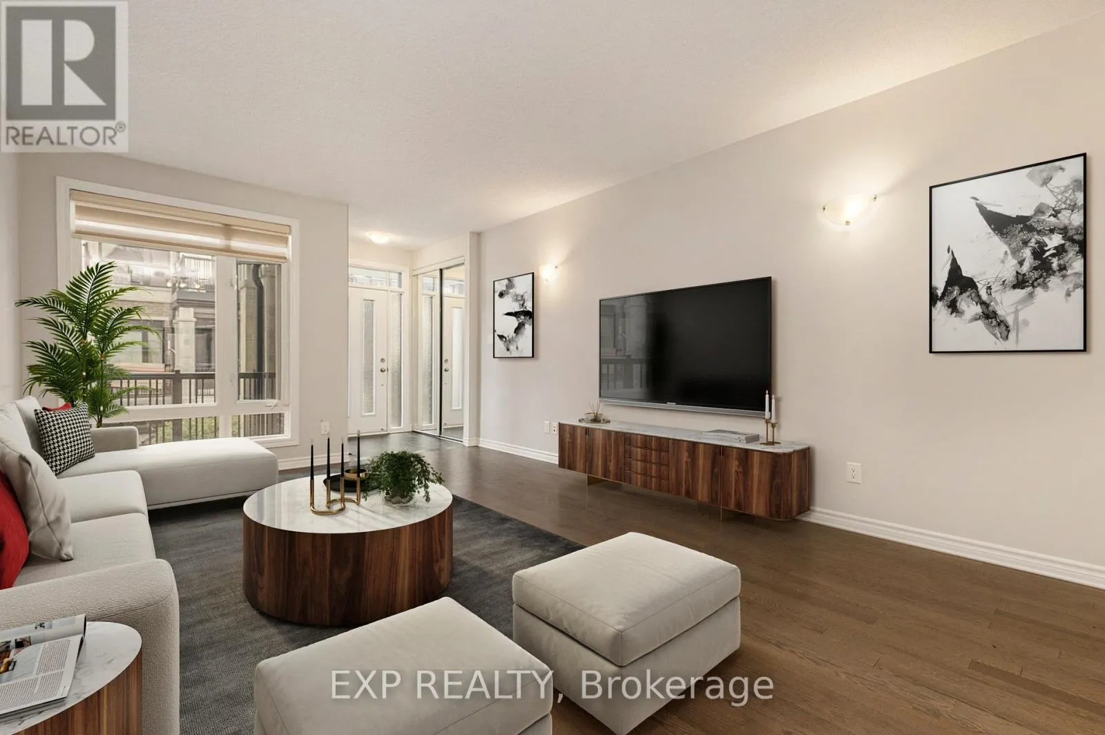 Cross Streets: Earl Armstrong Road & Spratt Road. ** Directions: Earl Armstrong Rd to Spratt Rd, left on Poplin St then Right on Pembina Pvt. Parking available in front of Garage. **PRICED AGGRESSIVELY FOR A QUICK SALE!** Stylish 2 Bed, 2 Bath Urbandale Jazz Condo in the Heart of Riverside South with 2 PARKING SPOTS! Welcome to modern, low-maintenance living in one of Ottawa's most desirable family-friendly neighborhoods. Whether you are a first-time buyer, a professional couple, or looking to downsize, this home has everything you need in a location you will love. Step into a bright, tiled foyer that flows into a spacious open-concept main floor featuring rich hardwood flooring, large transom windows that let in tons of natural light, and direct access to a private balcony. The upgraded kitchen is a showstopper with sleek stainless steel appliances, extended cabinetry with elegant crown molding, quartz countertops, subway tile backsplash, a generous breakfast bar with seating for three, and plenty of counter space for cooking and entertaining. The main-level primary bedroom is warm and welcoming with tray ceilings, large windows, and a walk-in closet. A stylish 3-piece bathroom with a modern glass standing shower completes the main level. Downstairs, the fully finished lower level offers a second bedroom with a full-size closet, perfect for guests, a home office, or a flexible living space. You will also find a 4-piece bathroom featuring a rainfall shower, glass enclosure, and a relaxing Jacuzzi tub. In-unit laundry and direct garage access from this level add everyday convenience. Enjoy all the benefits of condo living with the rare bonus of two parking spots. Located just minutes from parks, schools, shopping, green spaces, the community center, and the upcoming LRT station, this home offers outstanding lifestyle and connectivity. *Some Photos Virtually Staged* (id:27476)