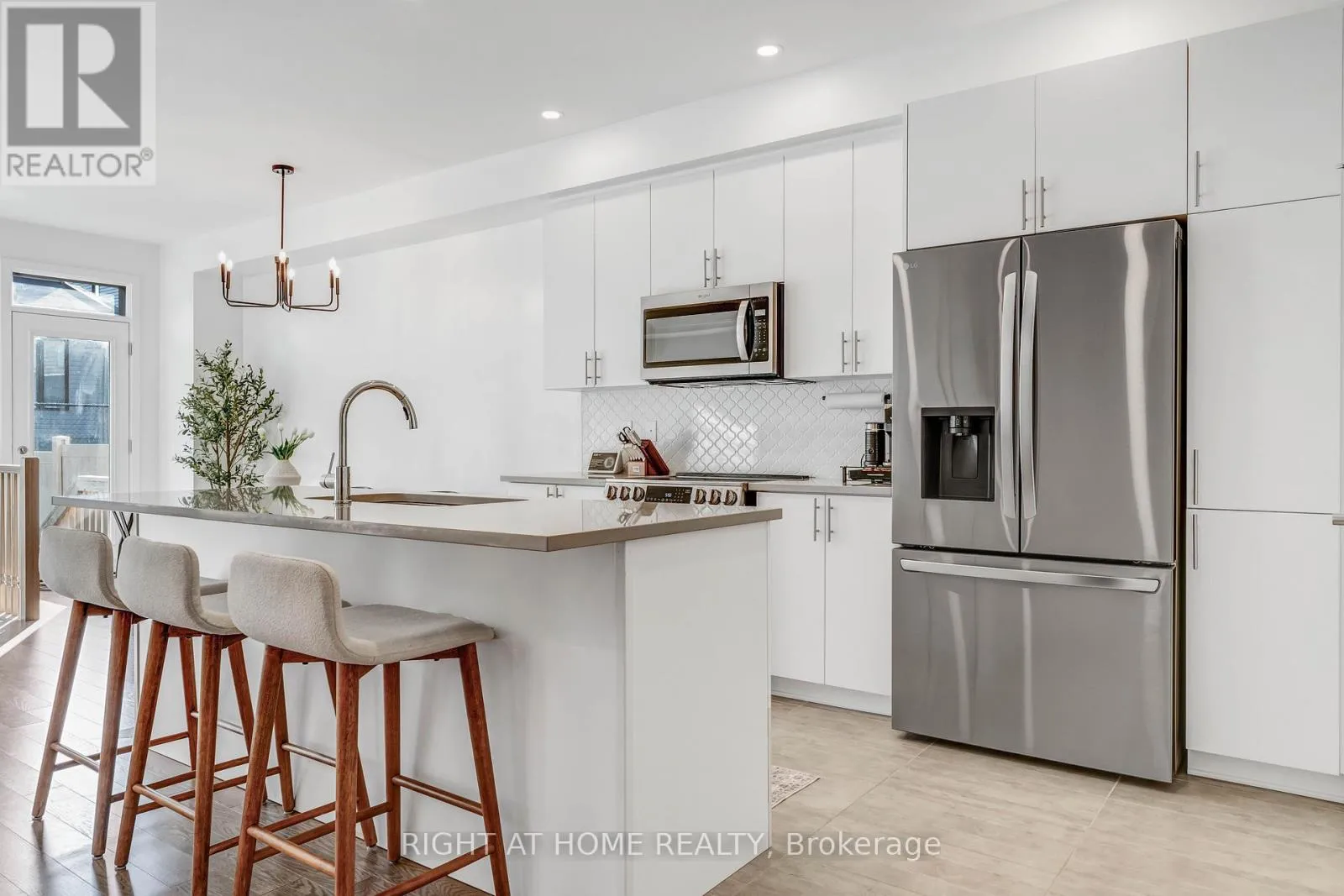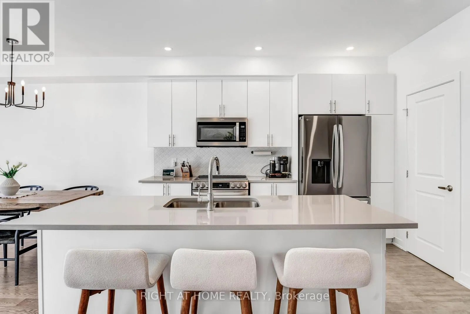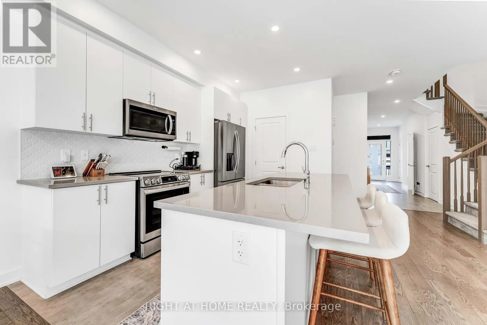 Cross Streets: Bank Street and Findlay Creek Drive. ** Directions: Bank Street to Findlay Creek Drive to Rathburn lane. Welcome to this beautifully maintained 3-bedroom townhome, where style, comfort, and convenience come together seamlessly. From the moment you enter, you'll appreciate the warmth of hardwood flooring throughout the main level, setting the tone for an inviting living space.The modern kitchen is a true standout, featuring sleek quartz countertops and a walk-in pantry perfect for everyday functionality and entertaining alike. A thoughtfully designed staircase leads to a bright, finished basement with a large window, offering versatile space for a family room, office, or cozy retreat.Upstairs, the primary suite offers a luxurious escape with quartz-topped double vanities, a stand-up shower perfect blend of style and serenity. All appliances are high end. Fenced backyard. Close to parks, shopping, and everyday amenities, this townhome provides the perfect mix of urban convenience and suburban calm. With hardwood, ceramic, and plush wall-to-wall carpeted flooring on the second floor, every detail has been thoughtfully designed. Dont miss the chance to call this exceptional home your own! (id:27476)