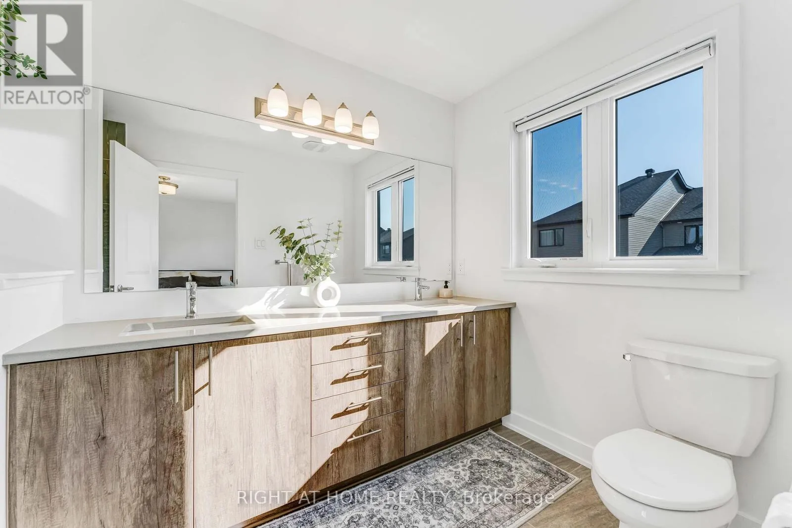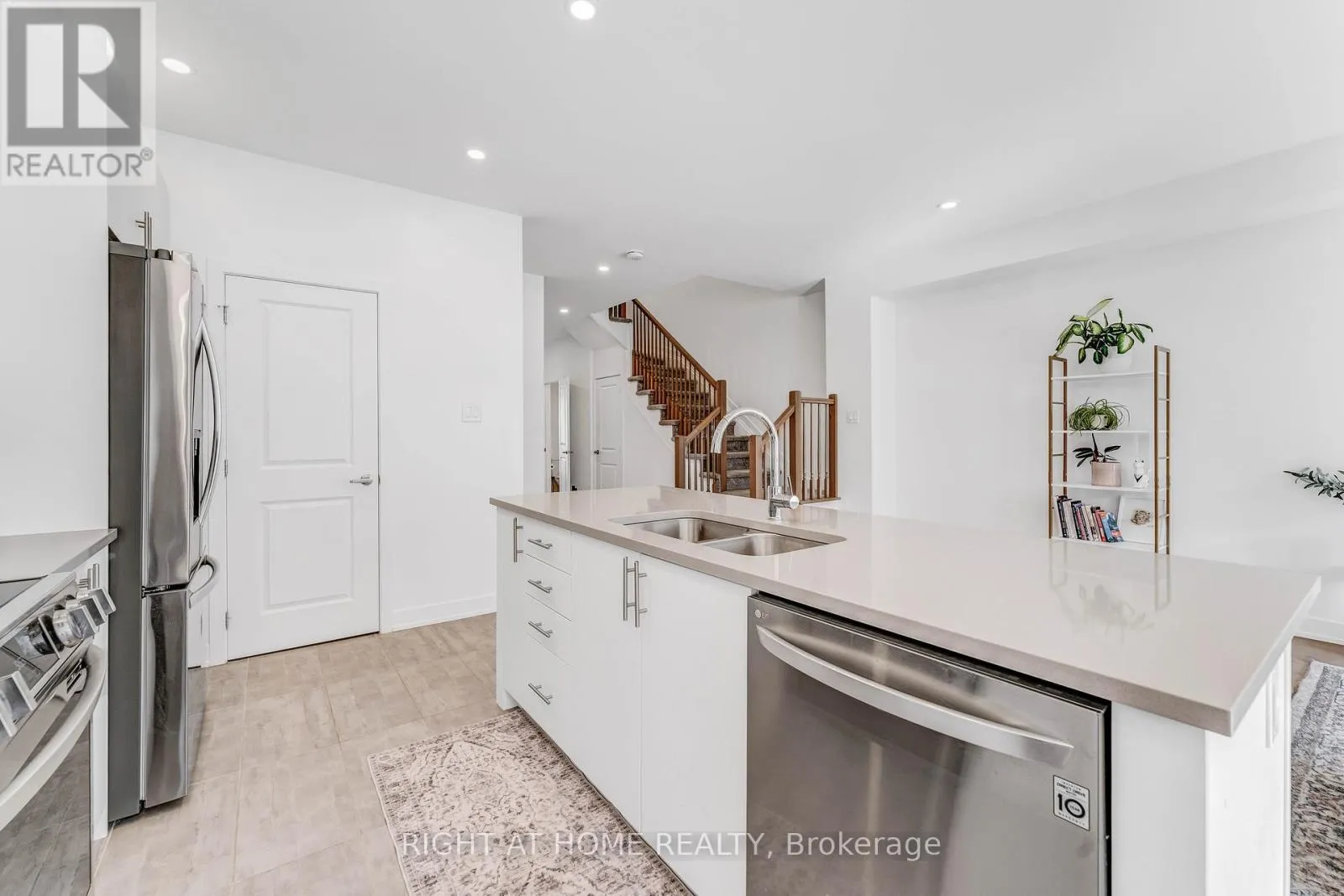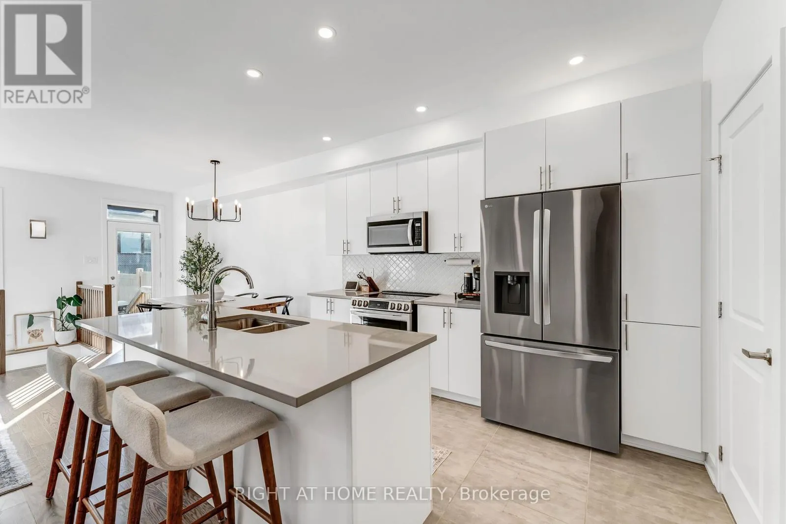 Cross Streets: Bank Street and Findlay Creek Drive. ** Directions: Bank Street to Findlay Creek Drive to Rathburn lane. Welcome to this beautifully maintained 3-bedroom townhome, where style, comfort, and convenience come together seamlessly. From the moment you enter, you'll appreciate the warmth of hardwood flooring throughout the main level, setting the tone for an inviting living space.The modern kitchen is a true standout, featuring sleek quartz countertops and a walk-in pantry perfect for everyday functionality and entertaining alike. A thoughtfully designed staircase leads to a bright, finished basement with a large window, offering versatile space for a family room, office, or cozy retreat.Upstairs, the primary suite offers a luxurious escape with quartz-topped double vanities, a stand-up shower perfect blend of style and serenity. All appliances are high end. Fenced backyard. Close to parks, shopping, and everyday amenities, this townhome provides the perfect mix of urban convenience and suburban calm. With hardwood, ceramic, and plush wall-to-wall carpeted flooring on the second floor, every detail has been thoughtfully designed. Dont miss the chance to call this exceptional home your own! (id:27476)
