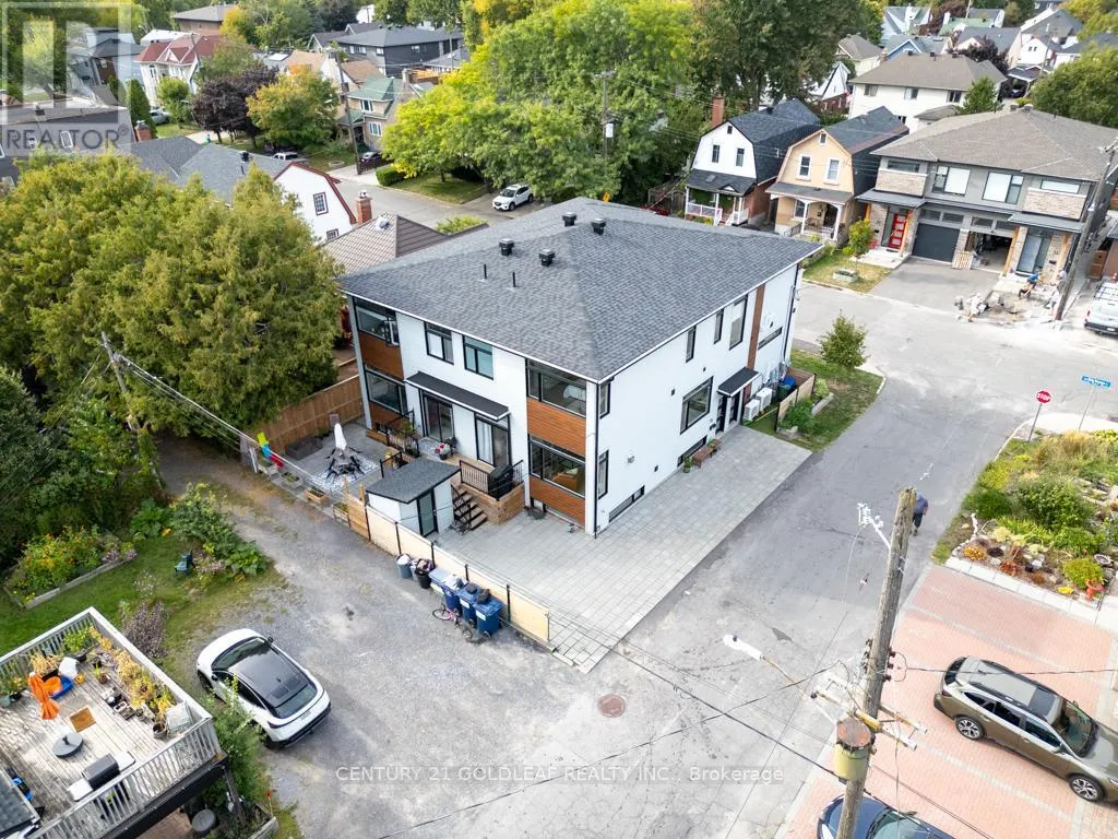 Cross Streets: North River Rd. & Queen Mary St. ** Directions: North River Rd to King George St. Stunningly appointed and thoughtfully designed, this 2022 built semi-detached home with legal basement apartment combines the ease of modern living with natural serenity in one of Ottawa's most desirable and convenient enclaves.The spacious main residence offers 4 bedrooms, 2 full bathrooms, an open concept main floor with versatile den/office plus powder room. The chef's kitchen boasts a quartz waterfall island & counters, solid wood cabinetry, and walk-in pantry. Entertain with ease thanks to the main floor wet bar with backlit glass shelving, gas fireplace with recessed TV within the expansive living & dining area. Oversized windows, staircase, and thoughtfully designed layout create abundant natural light and flow throughout the entire home. Upstairs, the luxury primary suite with walk-in closet enjoys a spa-inspired ensuite featuring custom vanity and heated floors (even in the shower!). The 2nd floor is completed by 3 sizeable bedrooms, laundry room and a 5-piece bathroom. The fully legal 2 bedroom basement apartment is separately metered for gas and hydro, with independent HVAC and water heating; providing excellent cash flow! Ample storage throughout ensures every inch of space is maximized through this property. Exterior highlights include James Hardie siding with Steel Stone cladding, aluminum railings, a custom matching shed, 4-car parking, storage under the rear deck, and exterior LED pot lights on all sides. Inside, upgrades abound: wide plank flooring, high end appliances, substantial soundproofing, 2 furnaces, 2 AC units, 2 water heaters, DC-powered ventilation, and custom solid wood vanities and mirrors in every bathroom, to name a few! This is a rare opportunity to own a turnkey duplex in a family-friendly, recreation-rich setting just minutes from downtown Ottawa. Rideau River-side bike & ski trails, NCC parkland, playgrounds, Rideau Sports Club and the Adawé footbridge to downtown are all at your doorstep. (id:27476)