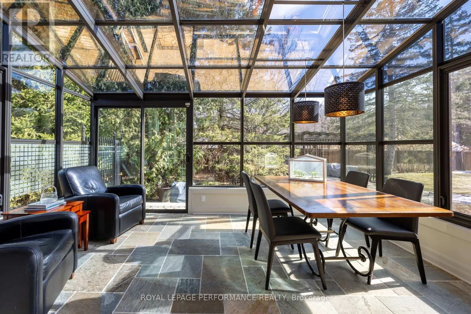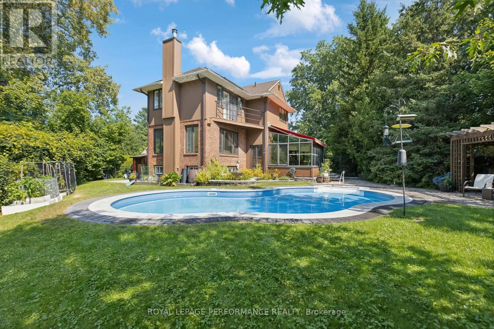 Cross Streets: Montreal Rd and Blair Rd. ** Directions: Going east on the Queensway, stay left on the 174. Take exit on Blair Rd. Turn right on Massey Ln and then a right on Delong Dr. House is on the right. Tucked into one of Ottawas most prestigious neighbourhoods, this exceptional 4-bed, 4-bath home blends architectural sophistication with luxurious upgrades and standout recreational features. Set on a lush, private lot just 500 meters from the Ottawa river pathway, it offers over 3,500 sq. ft. of thoughtfully designed living space, perfect for both everyday living and entertaining.The chef-inspired kitchen features rich wood cabinetry, granite countertops, stainless steel appliances, and a curved island with bar seating that flows into a warm and inviting living room with large windows, hardwood floors, and a cozy fireplace. A four-season solarium with heated natural stone floors and an automatic awning offers year-round comfort and backyard views. Upstairs, the spacious primary suite includes a private balcony, walk-in closet, and a beautifully renovated ensuite with dual vanity and glass shower. The lower level offers a golf simulator room with a full A/V setup for immersive entertainment, plus a discreet garage entrance that enhances privacy and functionality. With a full bathroom and bedroom on this level, it can easily accommodate an in-law suite or private guest quarters. Step outside to a private backyard retreat featuring a heated in-ground pool with unique custom granite coping and spa jets, an outdoor kitchen with a natural gas grill and bar fridge, and a stylish pergola surrounded by mature trees. Smart home integration adds convenience with control over HVAC, pool, solarium heating, Nest doorbell, and outdoor cameras. As if that weren't enough, this R2000-standard home features double-walled construction, Pella windows throughout, and, combined with solar panels and an EV charger, offers an exceptional opportunity for sustainable living. Just minutes from top schools, nature trails, and downtown, this is a rare opportunity to own a truly turnkey home in Rothwell Heights. (id:27476)