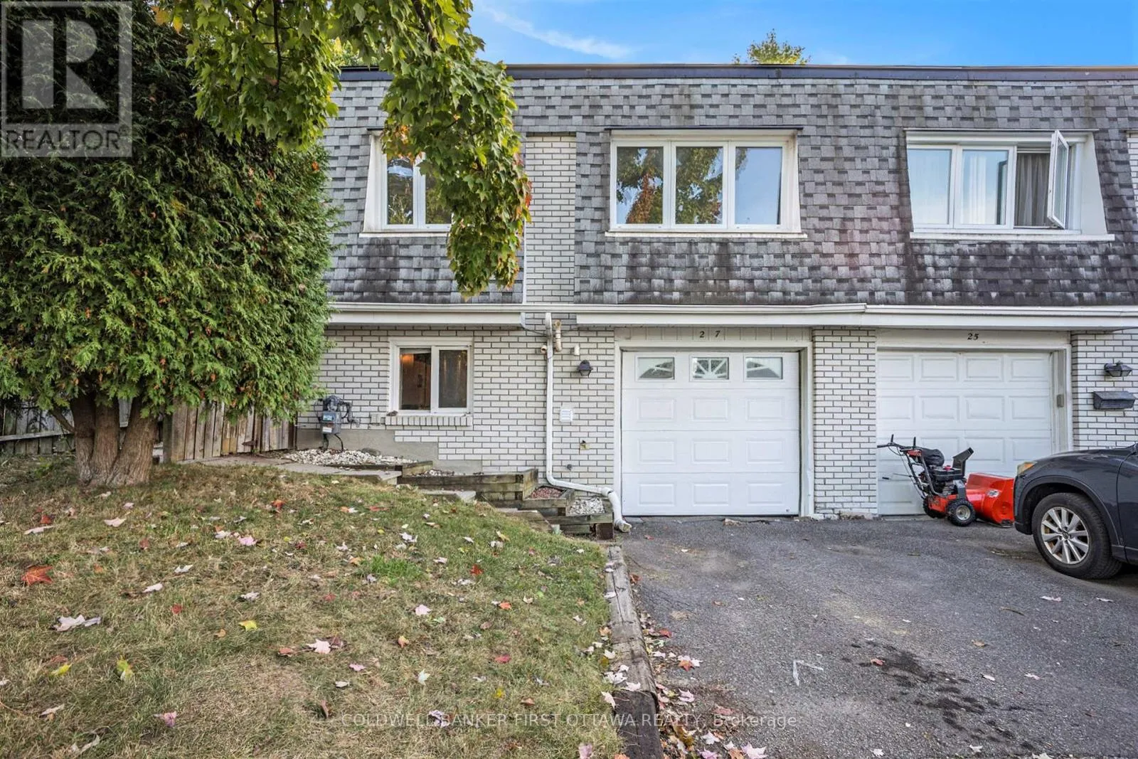 Cross Streets: Robertson Rd and Moodie Dr. ** Directions: Robertson Rd to Westcliffe Rd then to Oberon St and Ariel Crt. Welcome to 27 Ariel, a beautifully updated 4 bedroom, 2 bathroom semi-detached home with an attached single-car garage and inside entry. The main floor features hardwood throughout, a bright living and dining areas with large windows, and a functional kitchen. Freshly painted in neutral tones, main level also offers 2 bedrooms with new hardwood flooring and a full bathroom. The finished lower level, with oversized windows at grade, provides excellent flexibility featuring 2 additional bedrooms and a bathroom. Perfect for extended family, a home office setup, or rental potential to help offset your mortgage. Enjoy the expansive pie-shaped backyard with a gazebo wired with electricity, a storage shed, and plenty of space for entertaining or play. Located on a quiet cul-de-sac close to schools, parks, shopping, and transit, this versatile and move-in ready home is a must-see! (id:27476)