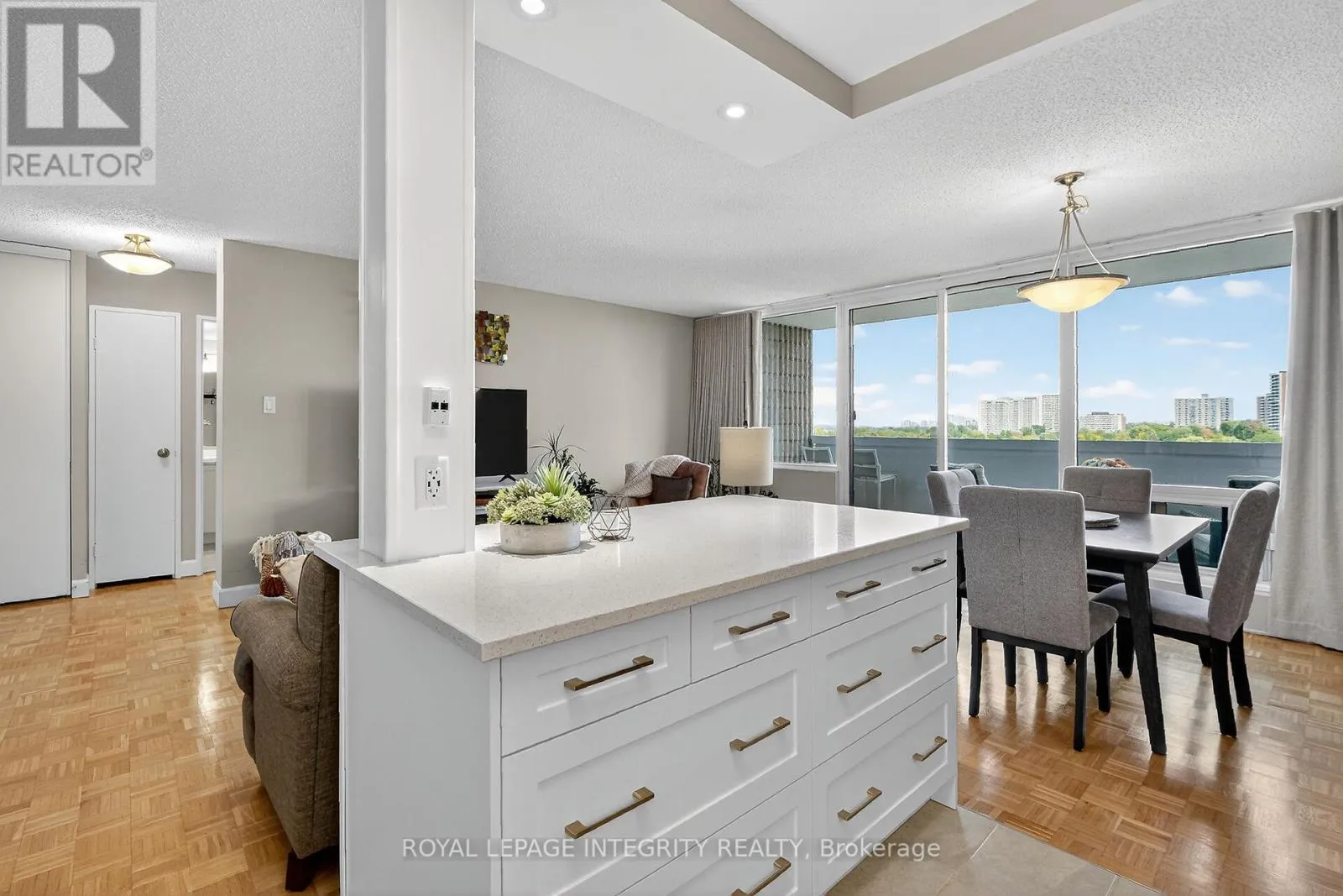 Cross Streets: Regina. ** Directions: From Richmond Rd. turn onto Poulin Av. Turn right in building parking. Attention Nature Lovers: This bright updated condo is for you. With astonishing views of the Ottawa river, NCC bike paths at your door, short walk to Britannia Beach where you can catch stunning sunsets, steps to Mud lake with its well-known bird sanctuary, you will be well served. Top it off with a unique unit offering a beautiful OPEN-CONCEPT KITCHEN with sought-after QUARTZ countertops, eating bar, elegant white cabinetry and undermount lights, multiple spacious PULL-OUT DRAWERS to accommodate all your storage requirements and top of the line Stainless Steel appliances. Step inside your renovated bathroom with its convenient WALK-IN SHOWER with glass doors and tiled surround, updated vanity and ceramic floor. The Spacious bedroom with its large window offers lots of storage. Enjoy your morning coffee while appreciating the views of the river and the manicured lawns from your 20 x 6 balcony. In addition to the great outdoors, this complex offers great indoor amenities, including a large recently updated saltwater pool and sauna, workshop, a well equipped gym, library, a party/meeting room hosting many social events, billiards and table tennis rooms and convenient guest suite. You will also love the convenience of your indoor heated parking garage and on-site car wash. Ideally situated a short walk to an off-leash dog park for your furry friend (welcomed in the complex if less than 25 lbs), the popular Farm Boy store and Lincoln Field with Metro, drug stores and the soon to open LRT transit station. (id:27476)
