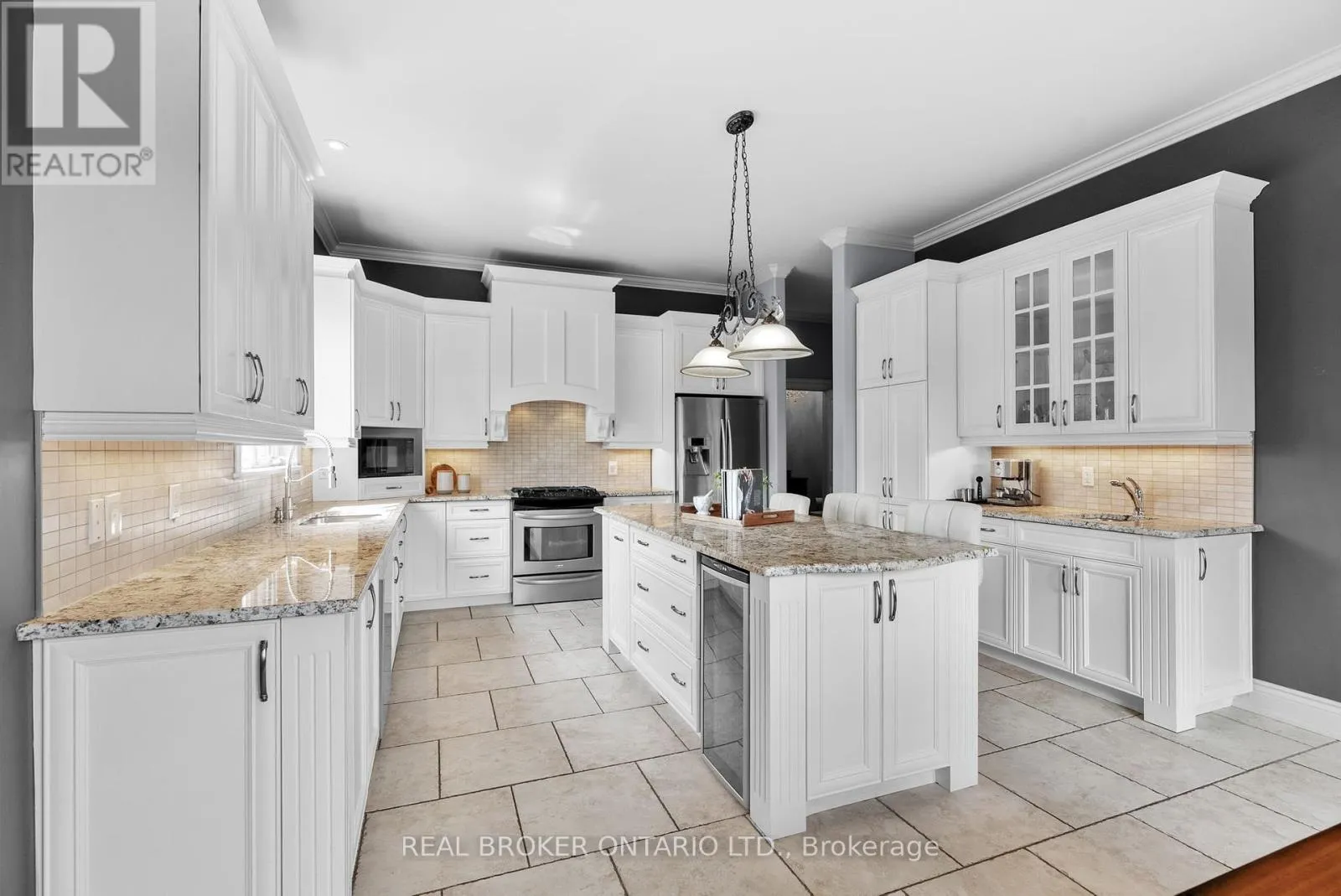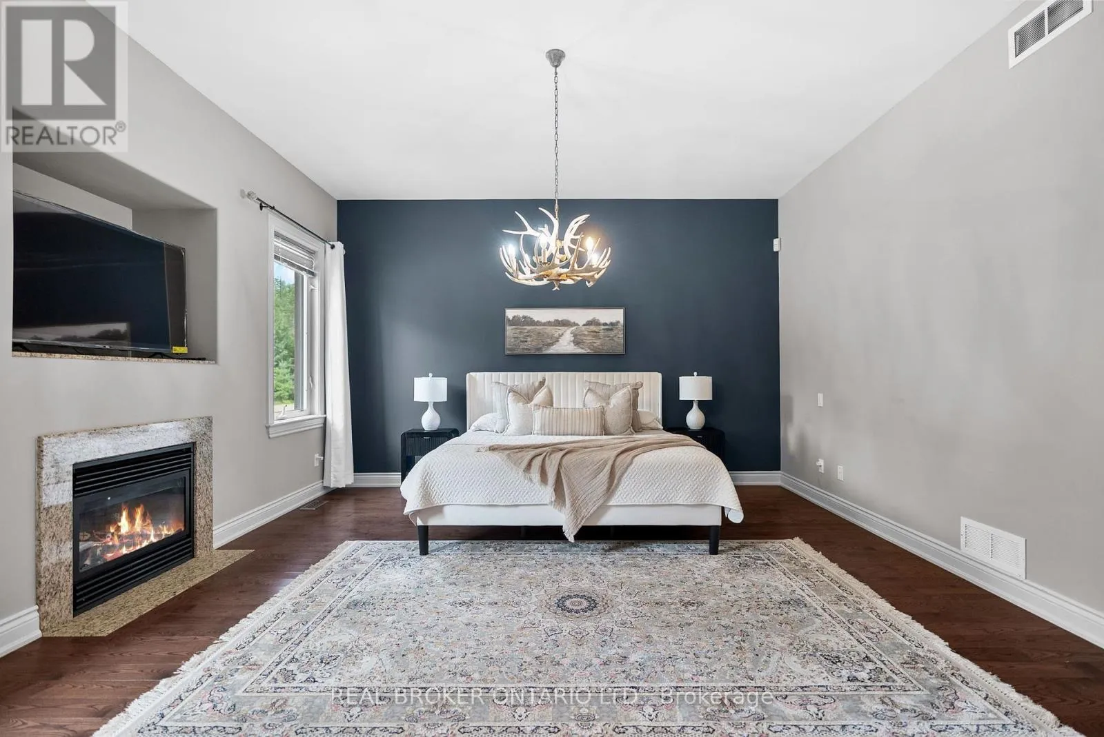 Cross Streets: Albion Rd & Tullamore St. ** Directions: South down Albion Rd, Right onto Tullamore St. Home is on the right hand side. Sign on property. Custom-built executive bungalow in Emerald Creek Estates offering approx. 5,550 sq. ft. of finished living space, ideally situated on a private 3/4-acre lot with no rear neighbours. With 6-bedrooms and 5-bathrooms, this home is perfect for larger families or those seeking space, privacy, and a peaceful retreat surrounded by nature, all just 20 minutes from downtown Ottawa! A grand foyer welcomes you into the home, opening to a spacious family room with a dramatic floor-to-ceiling stone fireplace and graceful archways that flood the space with natural light. The large eat-in kitchen is a chefs dream, featuring granite countertops, a generously sized centre island, stainless steel appliances, gas range, and separate prep sink. Entertain in style in the stunning formal dining room with 12' ceilings, a striking arched window, and refined architectural detailing. The main level offers three spacious bedrooms, each with its own ensuite bathroom for ultimate comfort and privacy. The luxurious primary suite is privately tucked at the rear of the home and features its own gas fireplace, a spa-inspired 5-piece ensuite with double vanities, whirlpool tub, glass-enclosed shower, water closet, as well as a large walk-in closet. The expansive lower level adds incredible versatility with three additional bedrooms, a Jack & Jill bathroom, large rec room with gas fireplace and custom built-ins, multiple storage rooms, and a separate garage entrance, ideal for multi-generational living. Outdoors, enjoy a tranquil backyard oasis surrounded by mature trees, with a large deck and hot tub perfect for summer evenings. The fully insulated 3-car garage is ideal for hobbyists or car lovers, and a whole home standby generator is included. Just minutes to top-rated golf, quaint restaurants, cafés and shops in Manotick Village, the Bowesville LRT station, and the newly opened Hard Rock Hotel & Casino. Enjoy country estate living with this exceptionally built home! Some photos virtually staged. (id:27476)