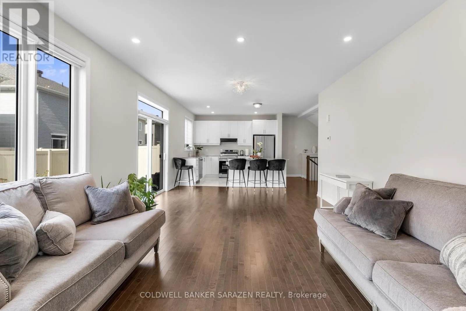 Cross Streets: Strandherd St. ** Directions: Strandherd Dr - right onto Chapman Mills Dr - right onto Point Prim Cres. Step into style at 173 Point Prim Crescent, where modern design meets Barrhavens best location. This Caivan home offers 4 bedrooms, 3 bathrooms, and 3 finished levels designed for todays lifestyle.The hard wood main floor delivers impact with 9 ft ceilings, sun-filled Great Room, elegant Dining Room, chefs Kitchen with breakfast bar, and a sleek Den perfect for a home office. Upstairs, the Primary Retreat wows with vaulted ceiling, spa-inspired 5-piece ensuite, and walk-in closet, complemented by two additional bedrooms and full bath. Downstairs, the finished lower level is pure versatilitya stylish Rec Room plus a private Bedroom, ideal for in-laws, teens, or guests.Outside, enjoy a quiet crescent steps from parks, trails, and schools. Everyday essentials are minutes awayChapman Mills Marketplace, Costco, Loblaws, Movati, cafés, and dining hotspots. Commuting is effortless via Strandherd and Greenbank. Note: Offered unfurnished. Existing furniture (TV, sofa set, beds, etc.) available at additional rent, terms negotiable. Rate applies to unfurnished occupancy; any furniture not rented will be removed. (id:27476)