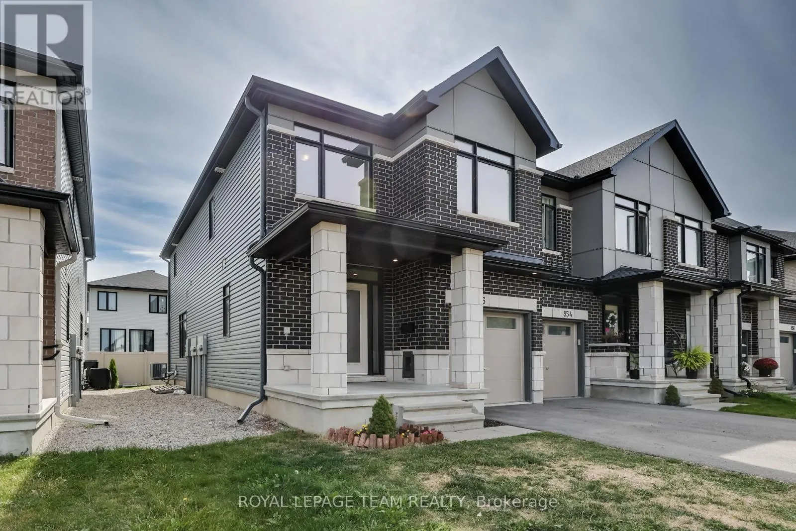 Cross Streets: Bobolink Ridge/Robert Grant Ave. ** Directions: Robert Grant Avenue to Bobolink Ridge, right on Putney Crescent, left on Clapham Terrace. Discover the perfect balance of comfort and convenience in this exceptional Claridge Penrose townhome, the largest and most sought-after model in the builder's collection, offering approximately 2,315 square feet of well-designed living space. This end-unit stands out with extra windows and abundant natural light, creating an inviting atmosphere from the moment you arrive. The layout includes 3 bedrooms and 3 bathrooms, plus a fully finished basement that expands your options for entertaining or family living. The main level is anchored by hardwood flooring and pot lights that frame an open-concept living, dining, and kitchen area, where quartz countertops, stainless steel appliances, and a generous island make both everyday meals and gatherings a joy. The living room centers around a gas fireplace with a wood mantel, while a dedicated mudroom provides practical storage for boots, coats, and gear. Go upstairs through the hardwood stairs, and we will find the expansive primary bedroom features a spa-like 5-piece ensuite with a freestanding Roman tub, walk-in shower, and double vanity, while 2 additional bedrooms provide ample space for family or guests, sharing a luxury 4-piece ensuite. A convenient 2nd-floor laundry completes this level. The basement is bright and spacious with high ceilings, a finished family room, and a 3-piece rough-in for an additional bathroom, allowing for future customization. Outdoors, the Southeast-facing backyard is private and sunlit, ideal for morning coffee or weekend barbecues. Located in the family-friendly community of Stittsville South, this home is in the highly regarded All Saints High School district and within walking distance of parks and transit, with grocery stores, cafés, schools, and everyday conveniences close by. Combining the low-maintenance lifestyle of a townhome with the space and features of a detached property, this Penrose model is a rare opportunity to own a home that delivers on function and modern design. (id:27476)