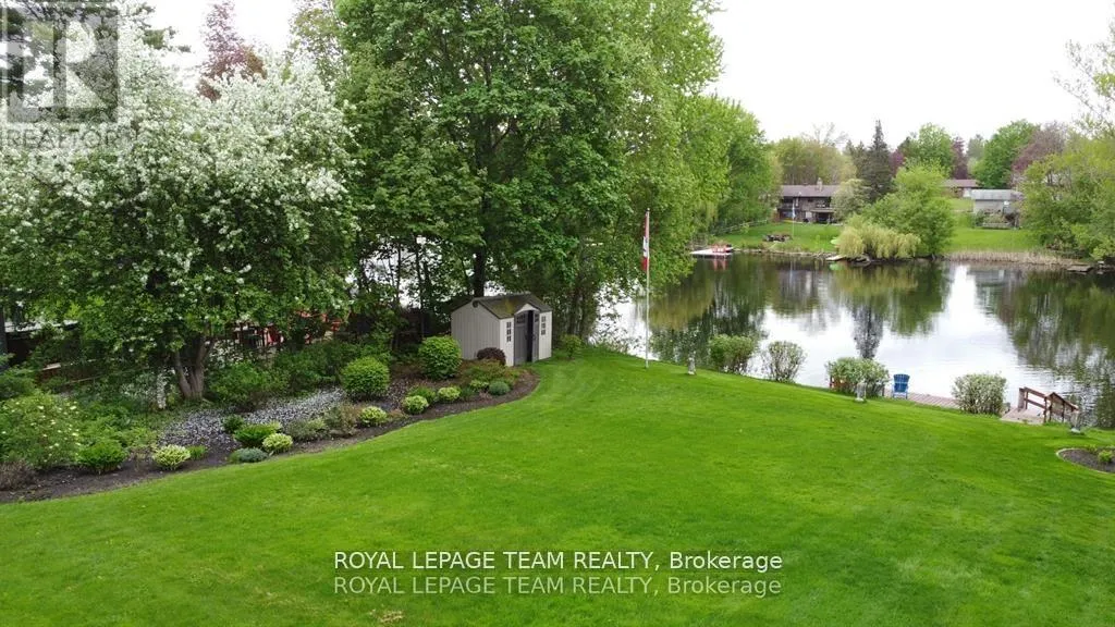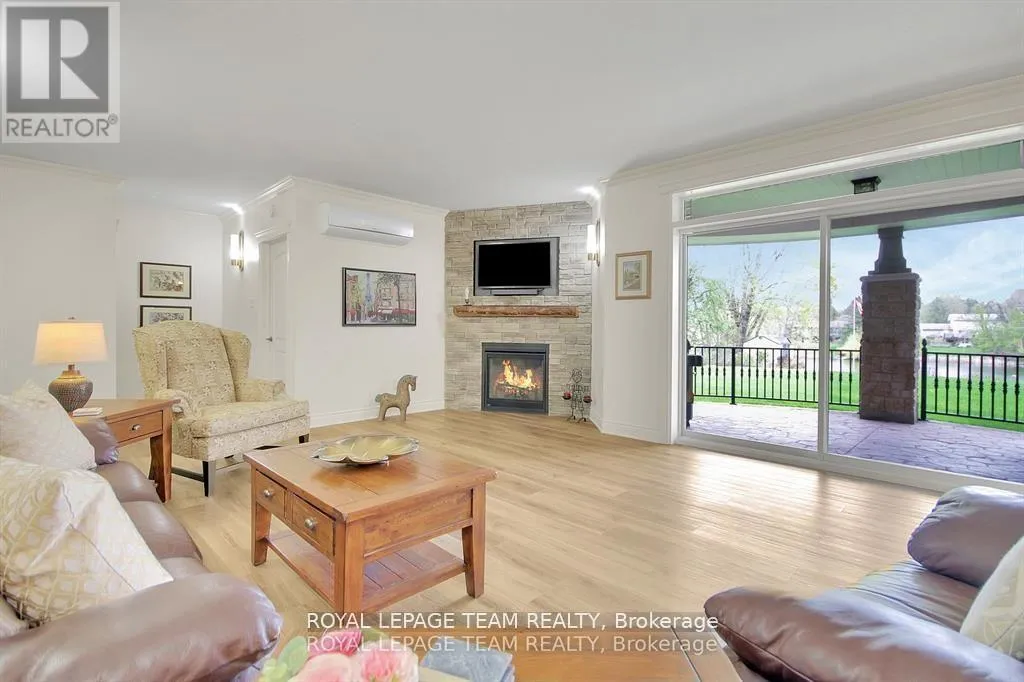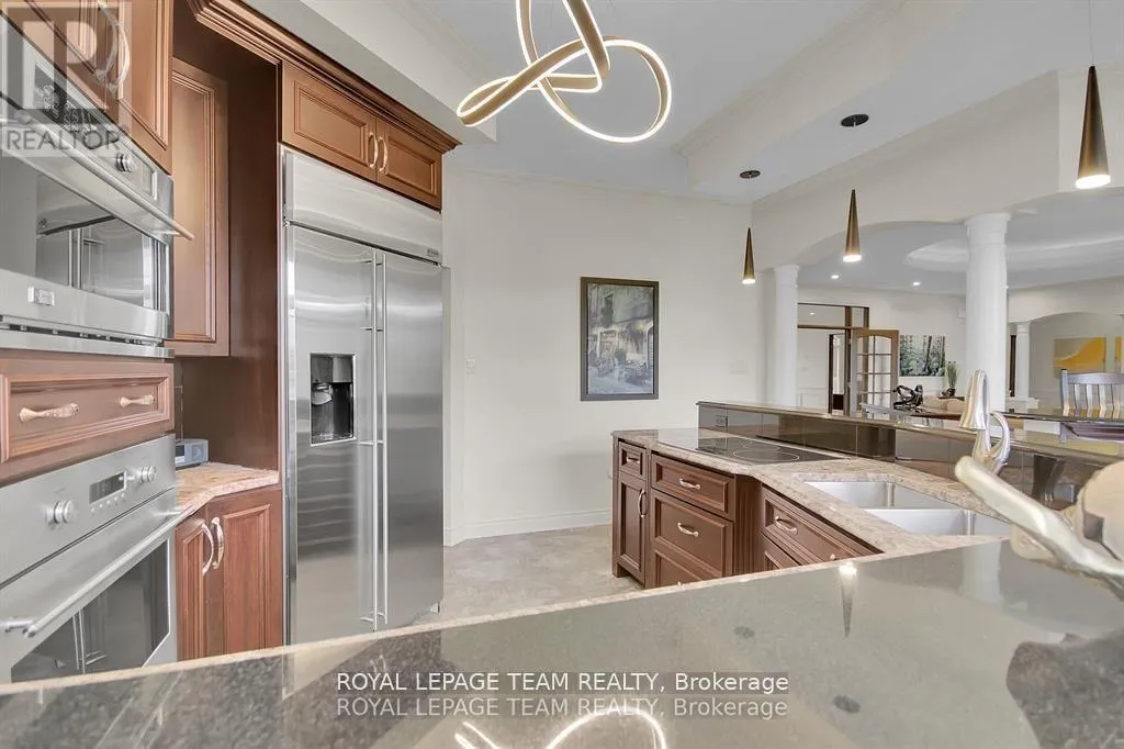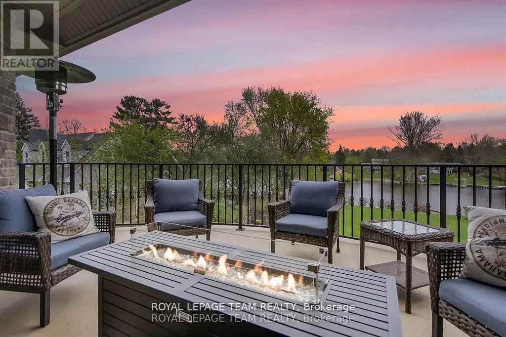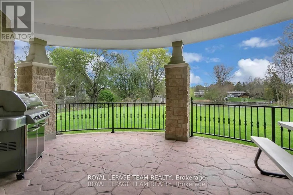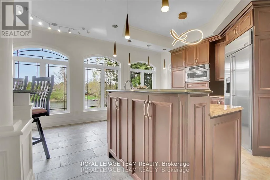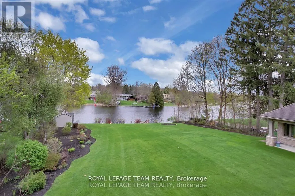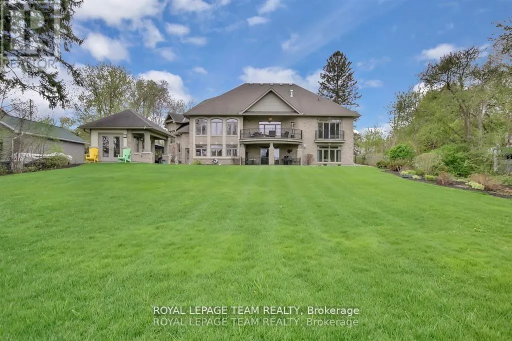 Cross Streets: Manotick Main Street and Bridge Street. ** Directions: Drive east on Backfield, turn right on Manotick Main Street. Exquisite Waterfront Estate in the Heart of Manotick on the Rideau River. This custom-built stone bungalow is a masterpiece of craftsmanship and design, nestled on a prestigious waterfront lot in the heart of Manotick. Offering unparalleled luxury and lifestyle, this residence boasts 6-star quality construction & a permanent private dock, with access to 26 miles of scenic boating between locks. Cruise to fine dining, paddle at sunrise, or unwind with a sunset swim all from your own backyard. Step inside to discover timeless elegance and refined finishes throughout. The main level features gleaming oak hardwood, a marble-clad gas fireplace, and gourmet open-concept kitchen adorned with granite countertops & premium fixtures. Two expansive bedrooms on the main floor each offer private spa-inspired ensuites, perfect for indulgent everyday living.The fully finished walkout lower level is equally impressive, featuring two additional bedrooms, spacious and luxurious bathroom. The second designer kitchen offers direct access to an outdoor entertainment area with natural gas BBQ hookup ideal for hosting guests or accommodating extended family in style. The grounds are professionally landscaped and enhanced with an in-ground irrigation system, ensuring lush lawns and pristine gardens. A newly finished stone exterior adds architectural elegance, while a cedar-lined, heated bunkhouse offers a luxurious retreat for guests or a sophisticated studio space. All of this, just steps from Manoticks charming boutiques, award-winning restaurants, and vibrant community life.A lifestyle of waterfront luxury awaits. This is truly a once-in-a-lifetime opportunity. (id:27476)