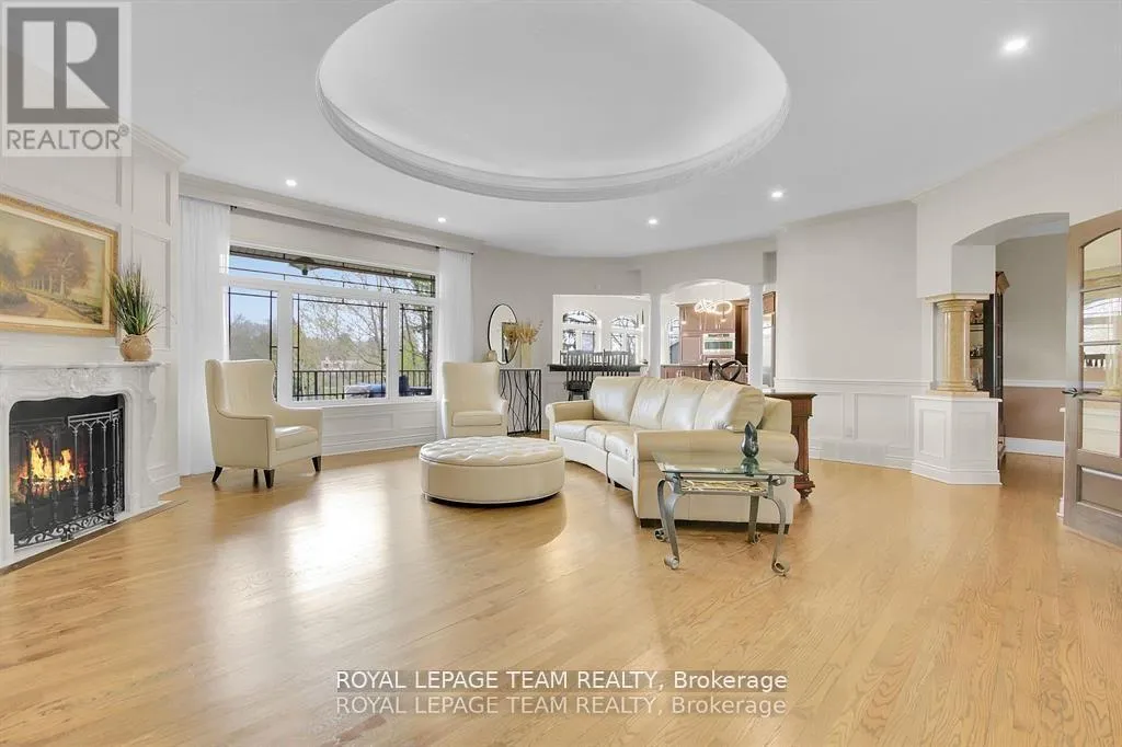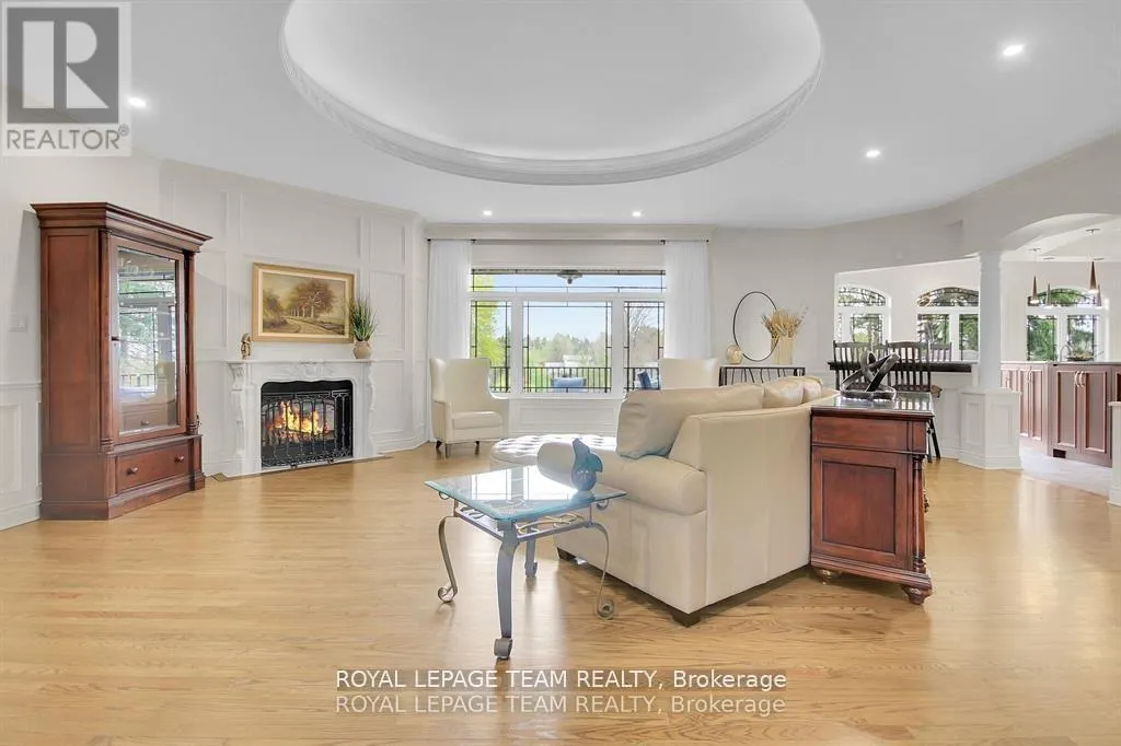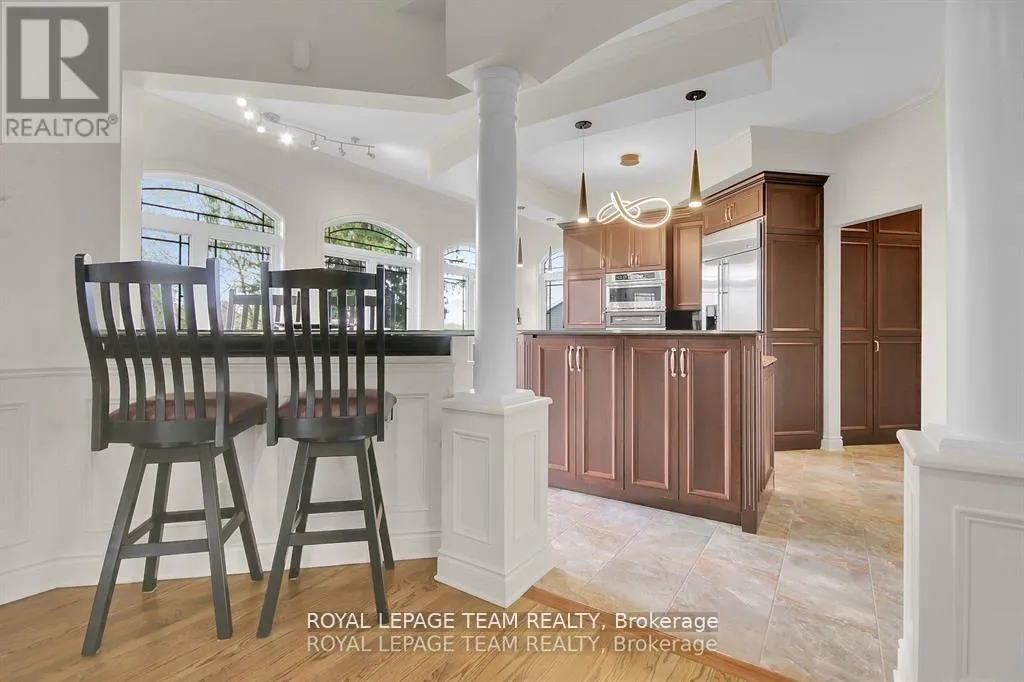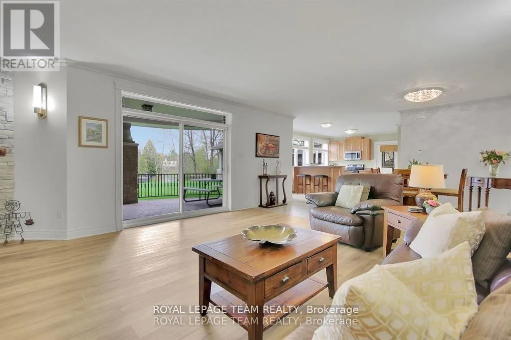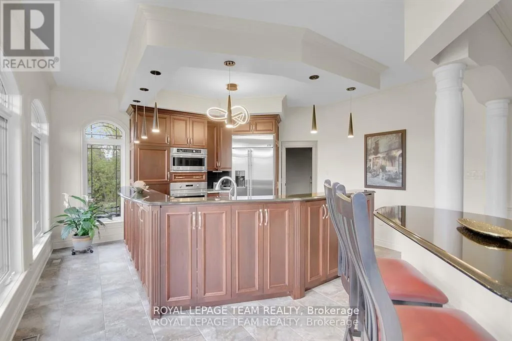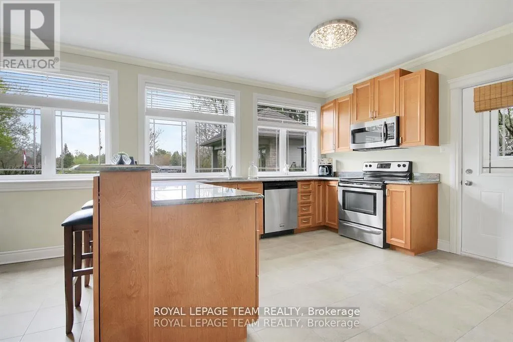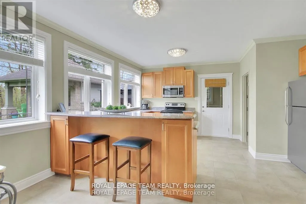 Cross Streets: Manotick Main Street and Bridge Street. ** Directions: Drive east on Backfield, turn right on Manotick Main Street. Exquisite Waterfront Estate in the Heart of Manotick on the Rideau River. This custom-built stone bungalow is a masterpiece of craftsmanship and design, nestled on a prestigious waterfront lot in the heart of Manotick. Offering unparalleled luxury and lifestyle, this residence boasts 6-star quality construction & a permanent private dock, with access to 26 miles of scenic boating between locks. Cruise to fine dining, paddle at sunrise, or unwind with a sunset swim all from your own backyard. Step inside to discover timeless elegance and refined finishes throughout. The main level features gleaming oak hardwood, a marble-clad gas fireplace, and gourmet open-concept kitchen adorned with granite countertops & premium fixtures. Two expansive bedrooms on the main floor each offer private spa-inspired ensuites, perfect for indulgent everyday living.The fully finished walkout lower level is equally impressive, featuring two additional bedrooms, spacious and luxurious bathroom. The second designer kitchen offers direct access to an outdoor entertainment area with natural gas BBQ hookup ideal for hosting guests or accommodating extended family in style. The grounds are professionally landscaped and enhanced with an in-ground irrigation system, ensuring lush lawns and pristine gardens. A newly finished stone exterior adds architectural elegance, while a cedar-lined, heated bunkhouse offers a luxurious retreat for guests or a sophisticated studio space. All of this, just steps from Manoticks charming boutiques, award-winning restaurants, and vibrant community life.A lifestyle of waterfront luxury awaits. This is truly a once-in-a-lifetime opportunity. (id:27476)