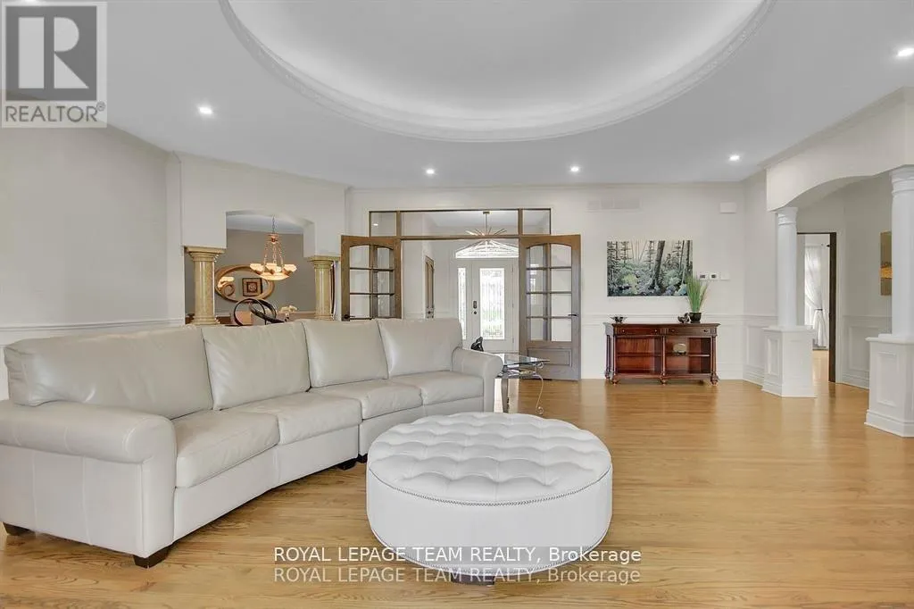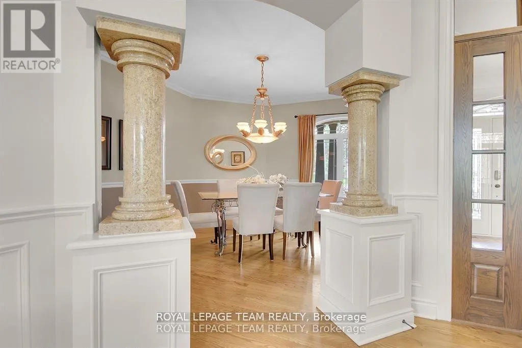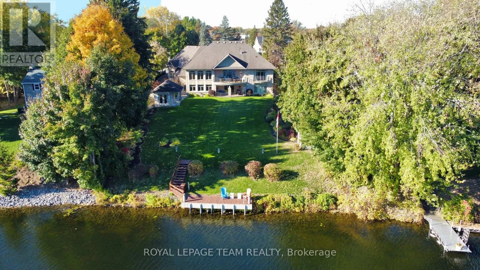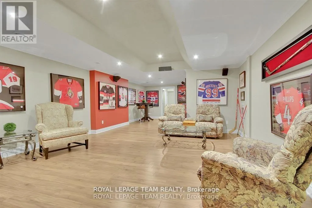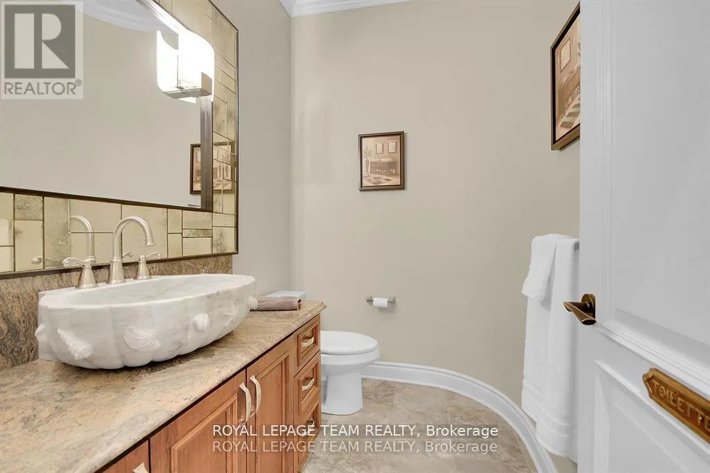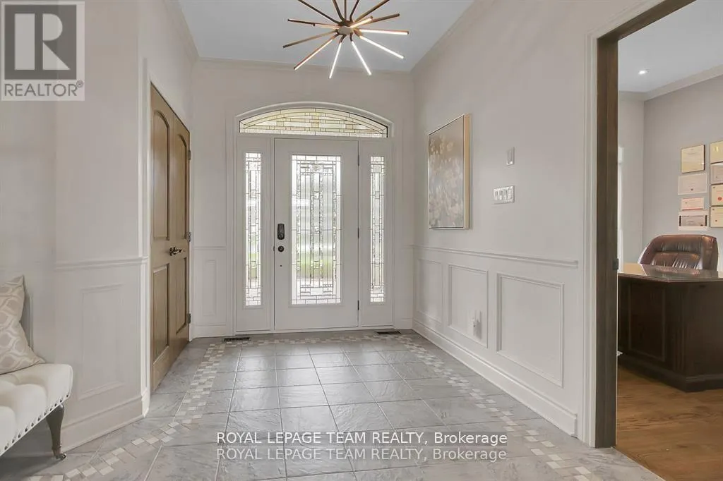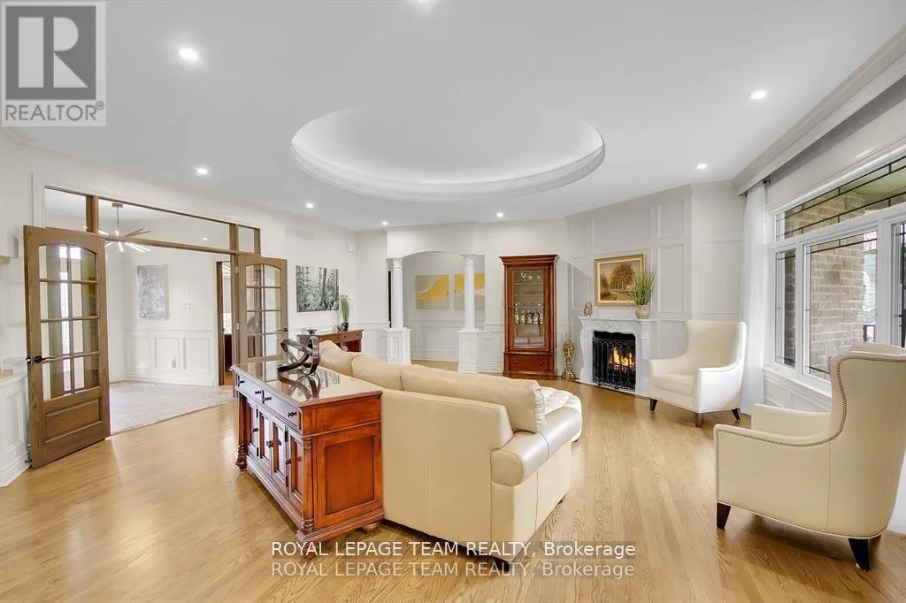 Cross Streets: Manotick Main Street and Bridge Street. ** Directions: Drive east on Backfield, turn right on Manotick Main Street. Exquisite Waterfront Estate in the Heart of Manotick on the Rideau River. This custom-built stone bungalow is a masterpiece of craftsmanship and design, nestled on a prestigious waterfront lot in the heart of Manotick. Offering unparalleled luxury and lifestyle, this residence boasts 6-star quality construction & a permanent private dock, with access to 26 miles of scenic boating between locks. Cruise to fine dining, paddle at sunrise, or unwind with a sunset swim all from your own backyard. Step inside to discover timeless elegance and refined finishes throughout. The main level features gleaming oak hardwood, a marble-clad gas fireplace, and gourmet open-concept kitchen adorned with granite countertops & premium fixtures. Two expansive bedrooms on the main floor each offer private spa-inspired ensuites, perfect for indulgent everyday living.The fully finished walkout lower level is equally impressive, featuring two additional bedrooms, spacious and luxurious bathroom. The second designer kitchen offers direct access to an outdoor entertainment area with natural gas BBQ hookup ideal for hosting guests or accommodating extended family in style. The grounds are professionally landscaped and enhanced with an in-ground irrigation system, ensuring lush lawns and pristine gardens. A newly finished stone exterior adds architectural elegance, while a cedar-lined, heated bunkhouse offers a luxurious retreat for guests or a sophisticated studio space. All of this, just steps from Manoticks charming boutiques, award-winning restaurants, and vibrant community life.A lifestyle of waterfront luxury awaits. This is truly a once-in-a-lifetime opportunity. (id:27476)