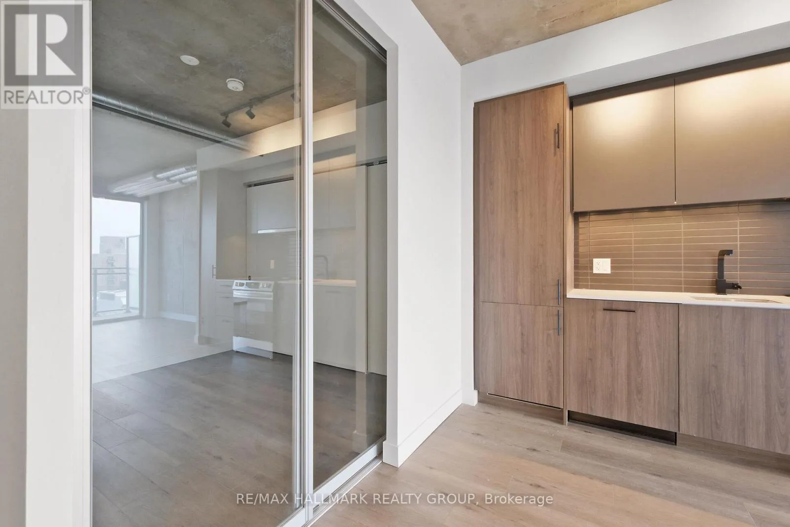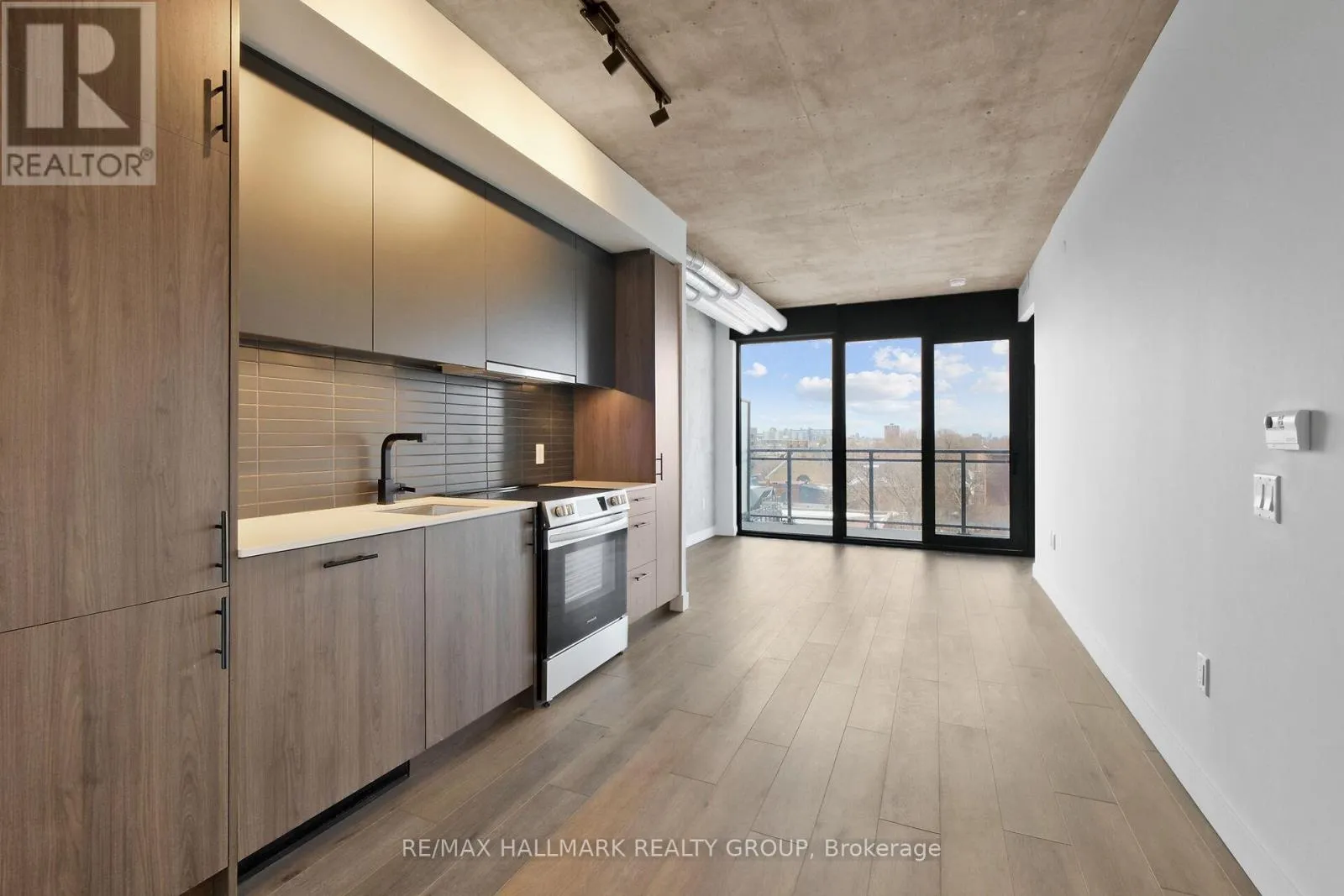Bank Street to South West corner of James Street This 2-bedroom, 2-bathroom unit offers 725 sq ft of contemporary living space, complemented by a 115 sq ft balcony perfect for quiet moments of relaxation. Located in a striking 9-storey brick and glass midrise by RAW Design, the condo showcases modern sophistication throughout. Floor-to-ceiling windows fill the space with natural light, while the open-concept kitchen is outfitted with sleek finishes, including quartz countertops and built-in stainless steel appliances. Offering both style and functionality, this residence is ideally situated in the heart of Centretown. (id:27476)