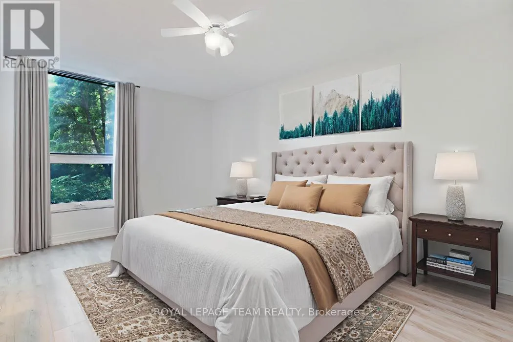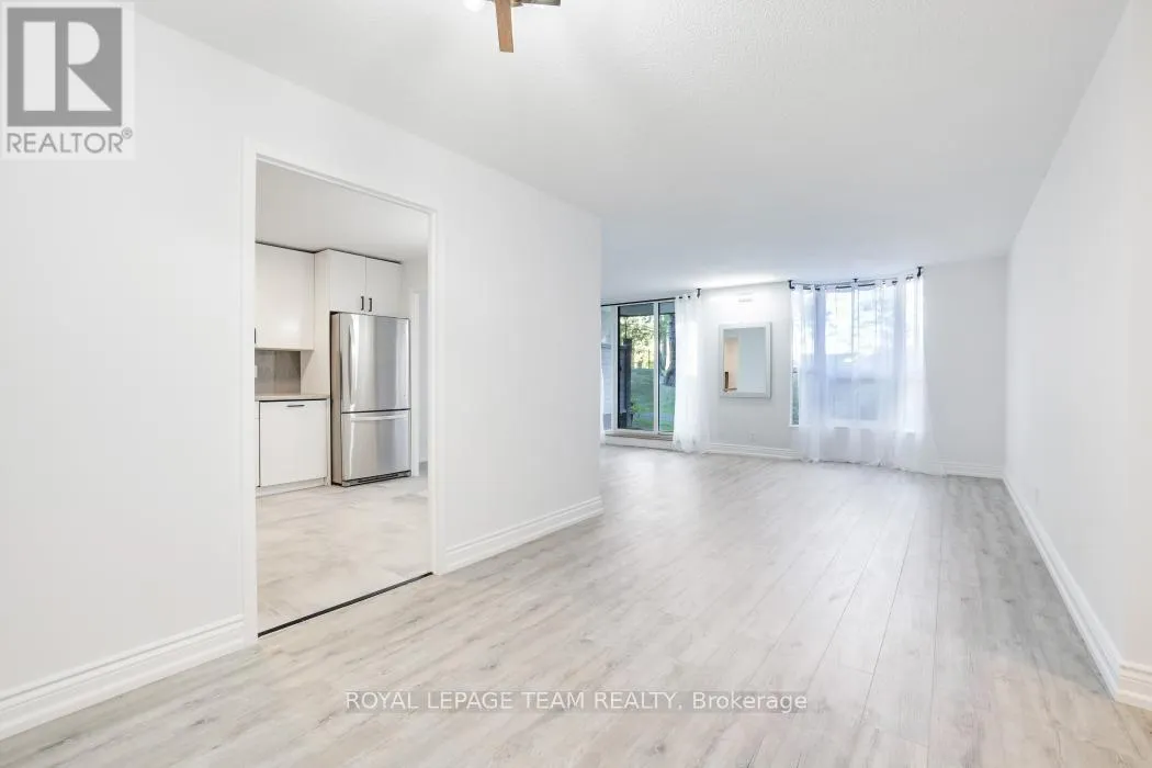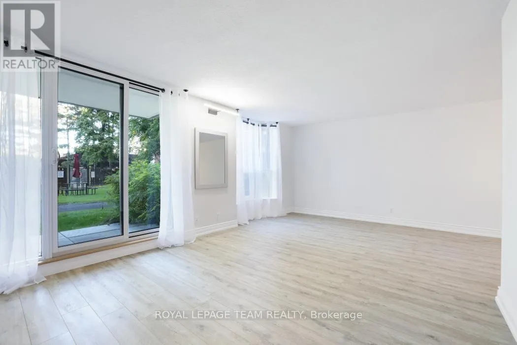 Cross Streets: Riverside. ** Directions: Riverside Drive to Ridgewood Dr.. First Left. Welcome to The Denbury - the condo that truly lives like a bungalow.An ideal opportunity for first-time buyers seeking a stylish, low-maintenance, move-in-ready home.This bright, beautifully updated residence features modern finishes throughout. The generous L-shaped living/dining room opens directly onto your private balcony and green space, perfect for morning coffee, working from home, or quiet outdoor relaxation.The sleek eat-in kitchen sits at the centre of the home, creating a comfortable and functional flow for everyday living. You'll also appreciate the in-suite storage room with custom shelving, offering convenient space for organization and essentials.With no stairs, direct outdoor access, and private gated grounds, this property offers both ease and peace of mind. And with all utilities included in the condo fees, budgeting becomes straightforward and worry-free.Exceptional building amenities include an outdoor pool, tennis court, patio, party room, guest suites, fitness centre, library, and more. The location is equally impressive-right across from Mooney's Bay Beach and minutes to Carleton University, shopping, recreation, and transit. (id:27476)