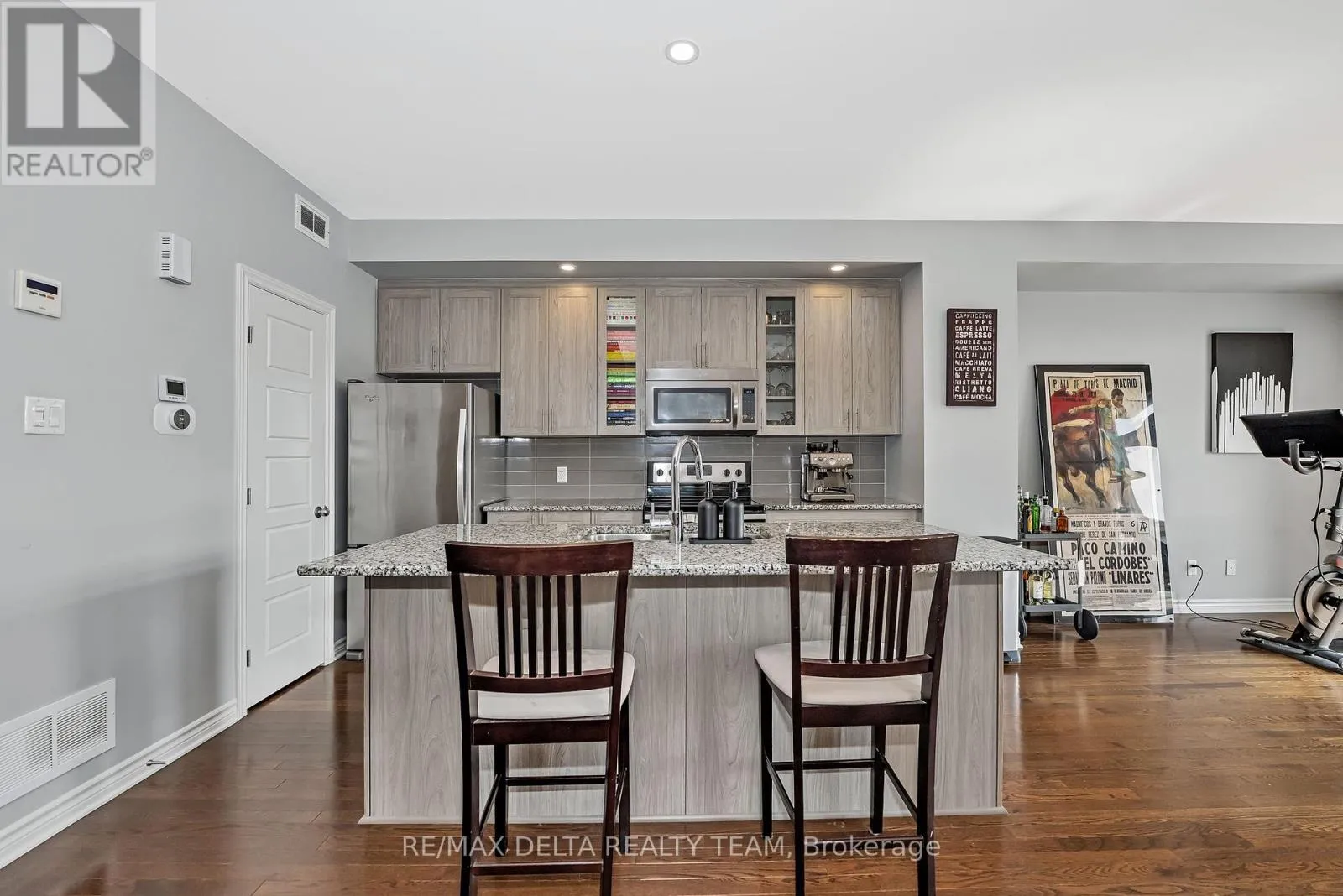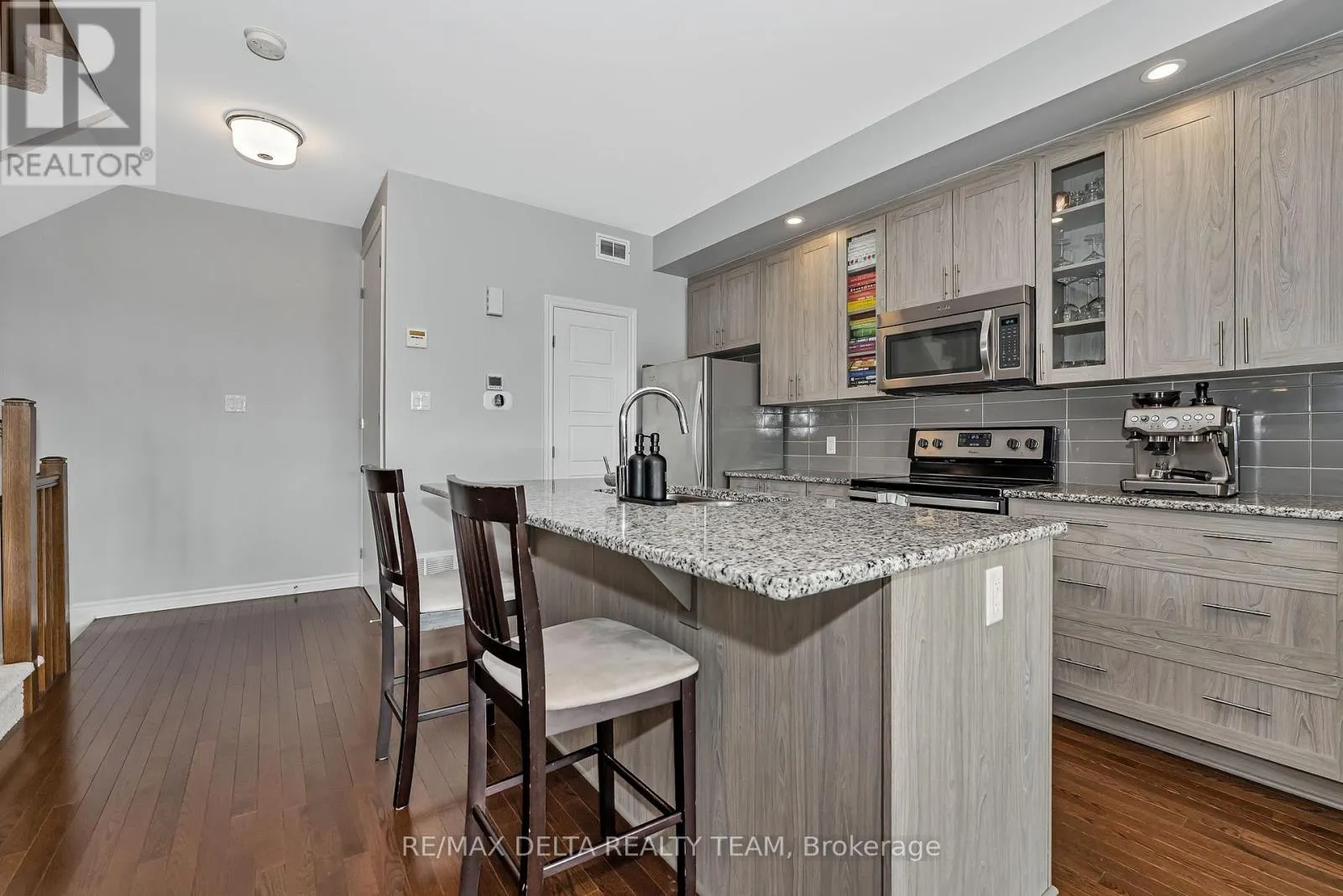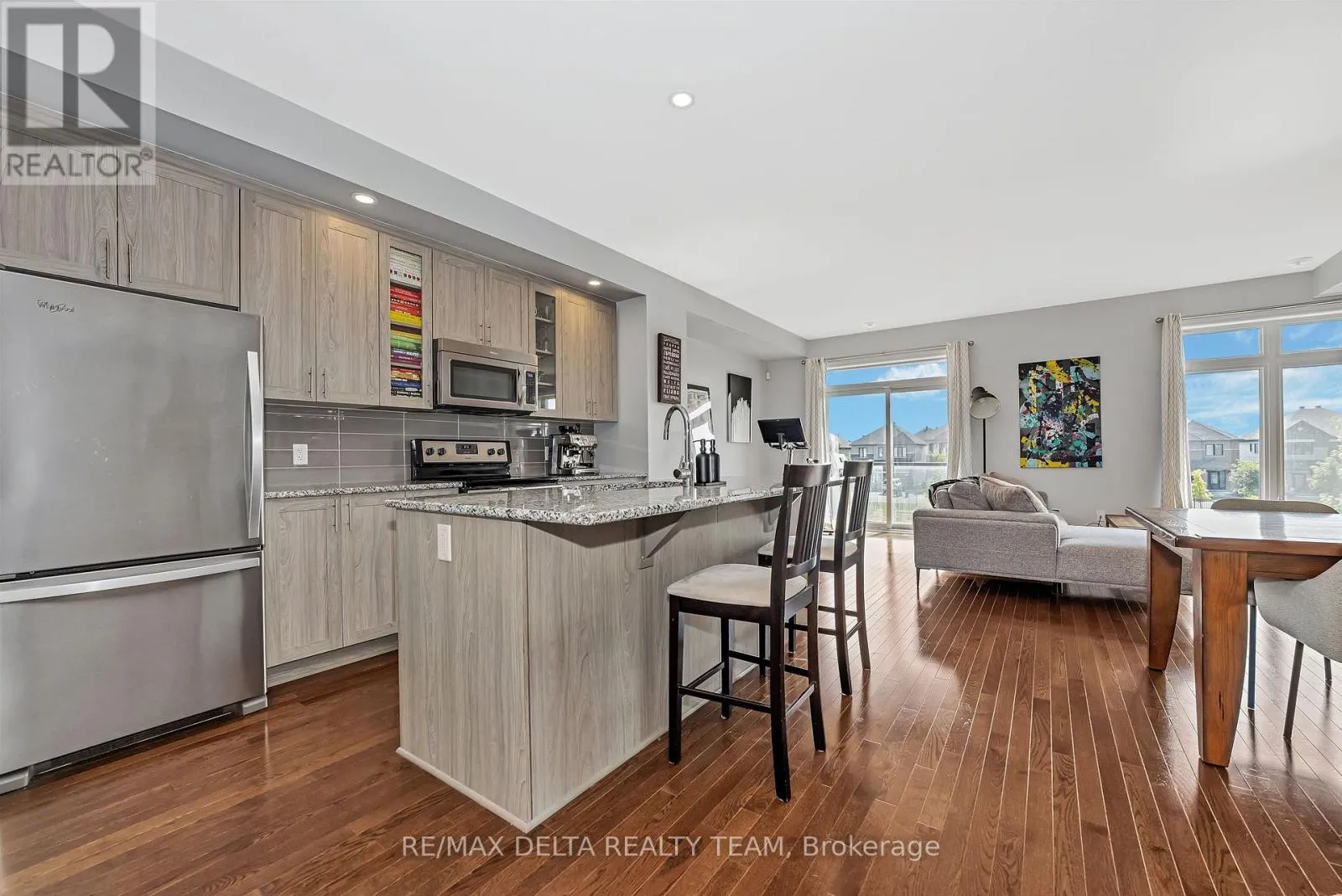 South on Mer Bleue, Left on Brian Coburn, Left on Chaperal Pvt Welcome to 616 CHAPERAL! This beautifully maintained 2-bedroom, 3-bath Tamarack townhome offers the perfect balance of modern design and everyday comfort in the heart of Orleans. The main floor features an open-concept kitchen with granite counters, stainless steel appliances, and a pantry, seamlessly connecting to the dining and living areas with oversized windows flooding the space with natural light. Enjoy a cozy walkout balcony, ideal for BBQs with Natural gas hookup or relaxing evenings. The upper level boasts a spacious primary suite with walk-in closet and private ensuite, a generous second bedroom, and full bathroom. Also offers a versatile space with laundry and storage. Attached garage with inside entry, hardwood flooring, 9-ft ceilings, and a well-run association handling snow removal and road maintenance complete the package. Close to parks, schools, shopping, and transit all within a family-friendly community! AC 2024 (id:27476)