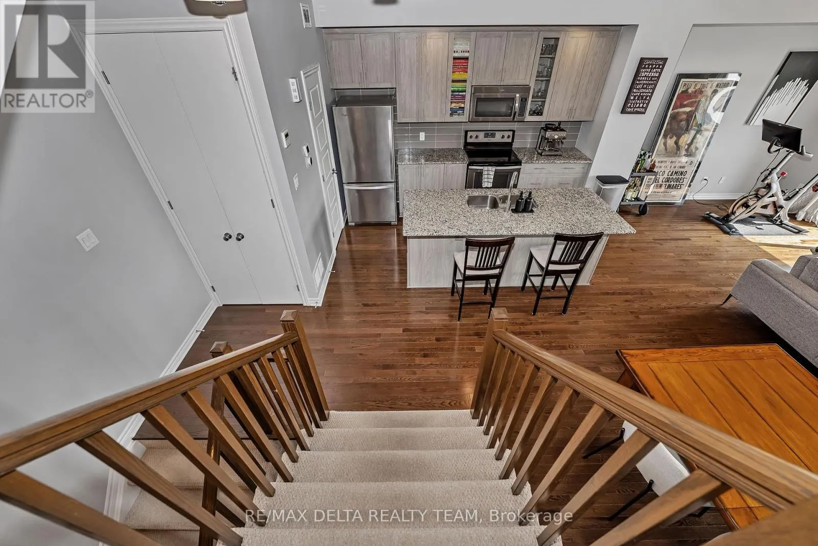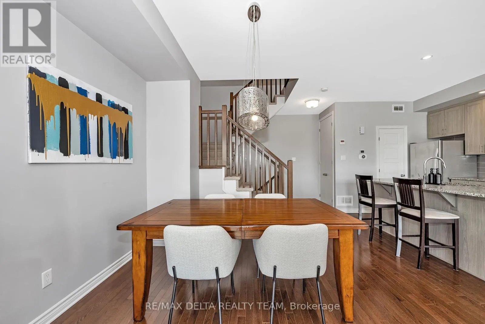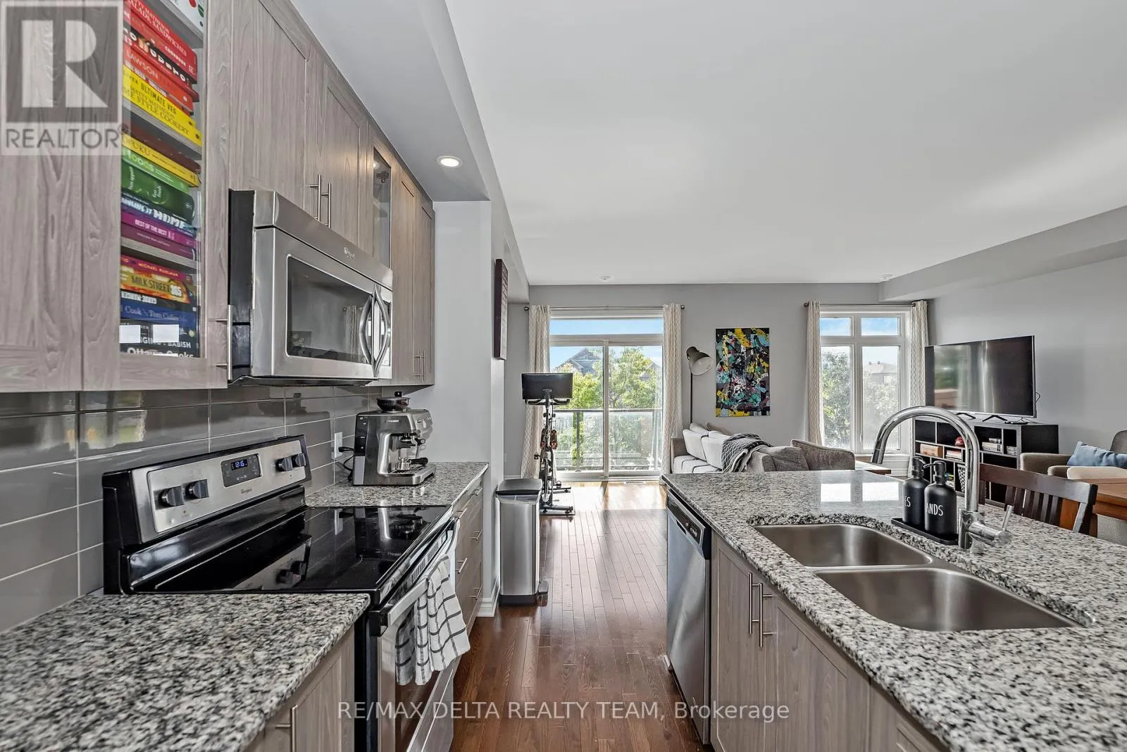 South on Mer Bleue, Left on Brian Coburn, Left on Chaperal Pvt Welcome to 616 CHAPERAL! This beautifully maintained 2-bedroom, 3-bath Tamarack townhome offers the perfect balance of modern design and everyday comfort in the heart of Orleans. The main floor features an open-concept kitchen with granite counters, stainless steel appliances, and a pantry, seamlessly connecting to the dining and living areas with oversized windows flooding the space with natural light. Enjoy a cozy walkout balcony, ideal for BBQs with Natural gas hookup or relaxing evenings. The upper level boasts a spacious primary suite with walk-in closet and private ensuite, a generous second bedroom, and full bathroom. Also offers a versatile space with laundry and storage. Attached garage with inside entry, hardwood flooring, 9-ft ceilings, and a well-run association handling snow removal and road maintenance complete the package. Close to parks, schools, shopping, and transit all within a family-friendly community! AC 2024 (id:27476)