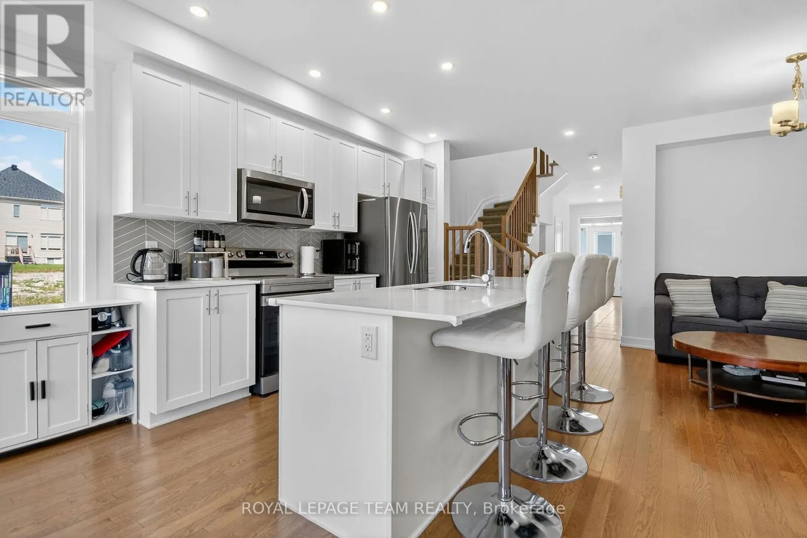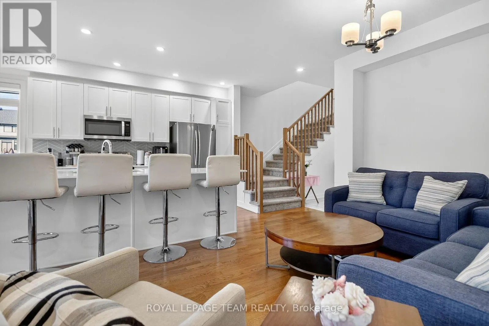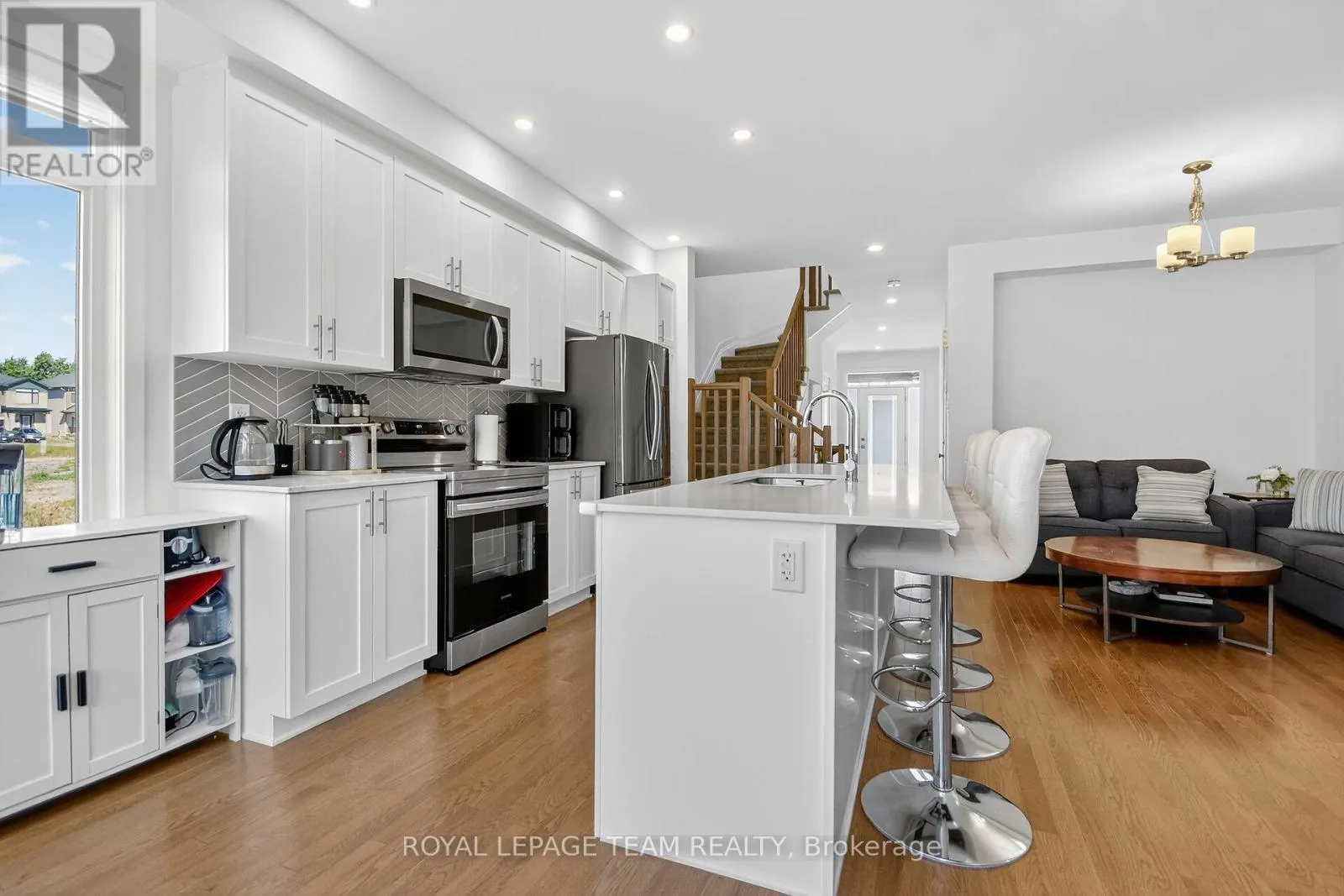 Cross Streets: Findlay Creek & Alvarez Ln. ** Directions: South on Bank St to Findlay Creek Drive. Left on Findlay Creek Drive. Left on Kugagami Road. Left on Ibanez Walk. Priced to Sell!!! Welcome to this Executive End-Unit Townhome in the family-friendly community of Findlay Creek. Built in 2021, this bright 3-bedroom home features a Stylish open-concept main floor boasting a bright living and dining area with hardwood floors, Quartz kitchen counters, large island, and stainless-steel appliances. Upstairs, the primary suite includes a walk-in closet and a stylish 4-piece ensuite. Two additional bedrooms and a full three-piece washroom complete this level. The lower level features a spacious family room, perfect for entertaining, home office or a gym. A separate room with ample storage and laundry room. Private backyard with no rear neighbors gives this backyard the tranquility and relaxation needed. Steps away from parks, schools and a short distance away from Findlay Creek Shopping Centre. Close to LRT Leitrim station and much more. This home is a must see! (id:27476)