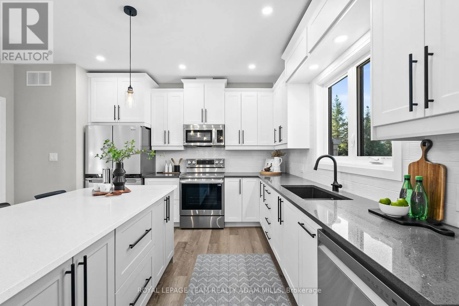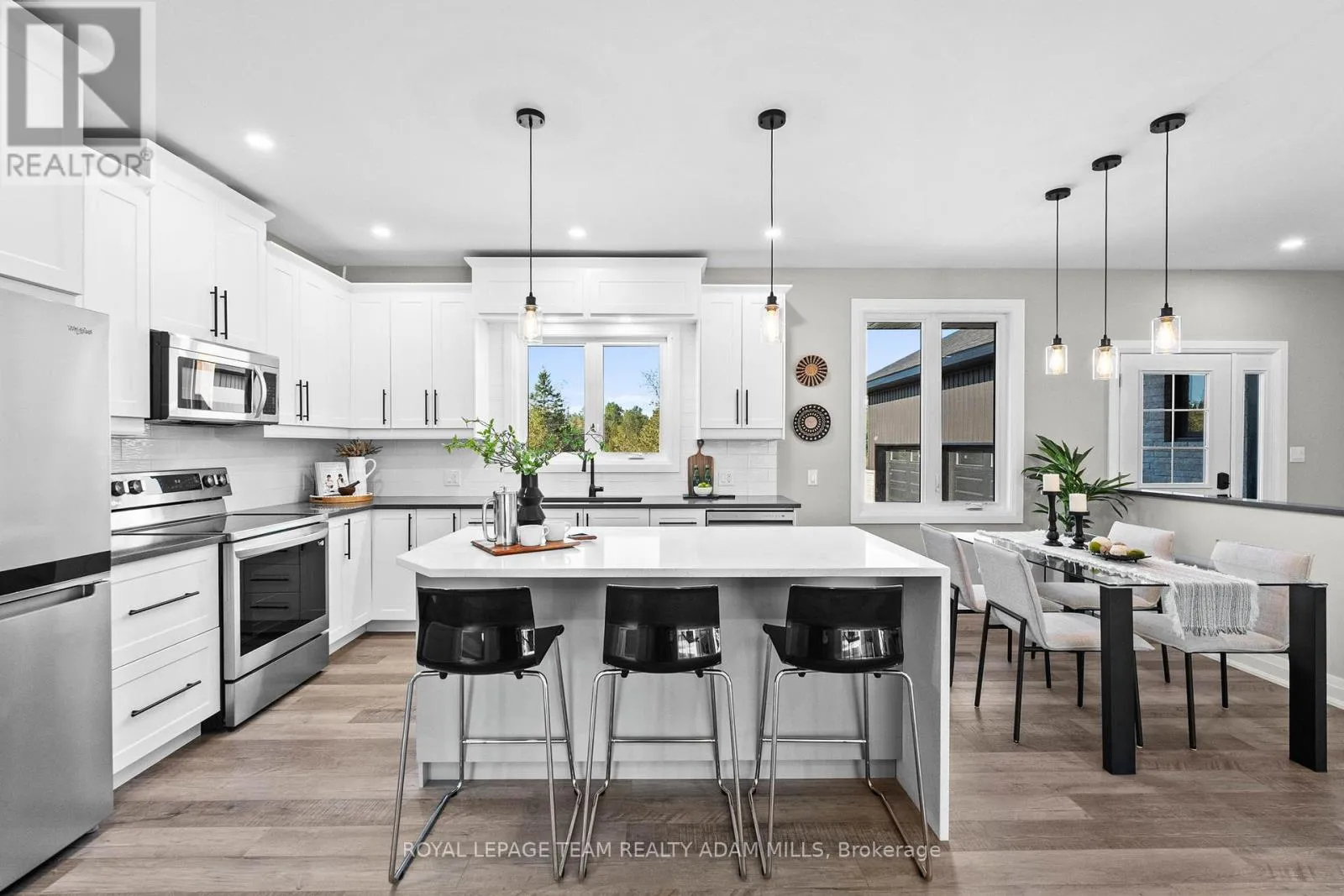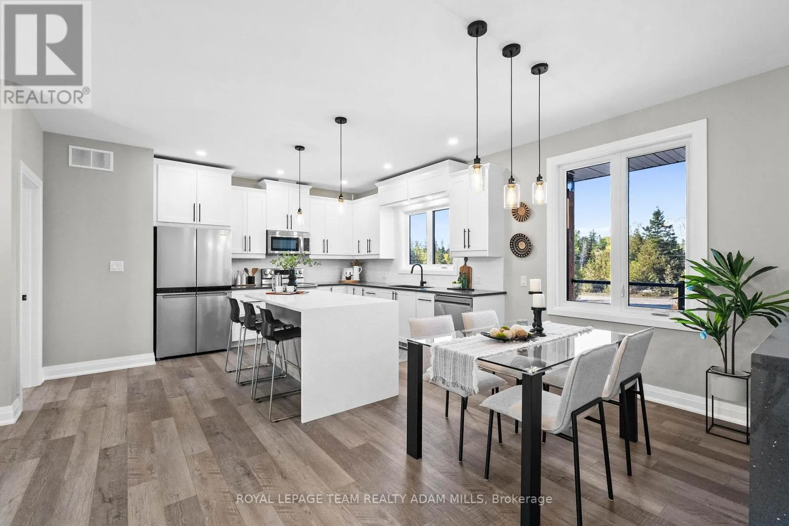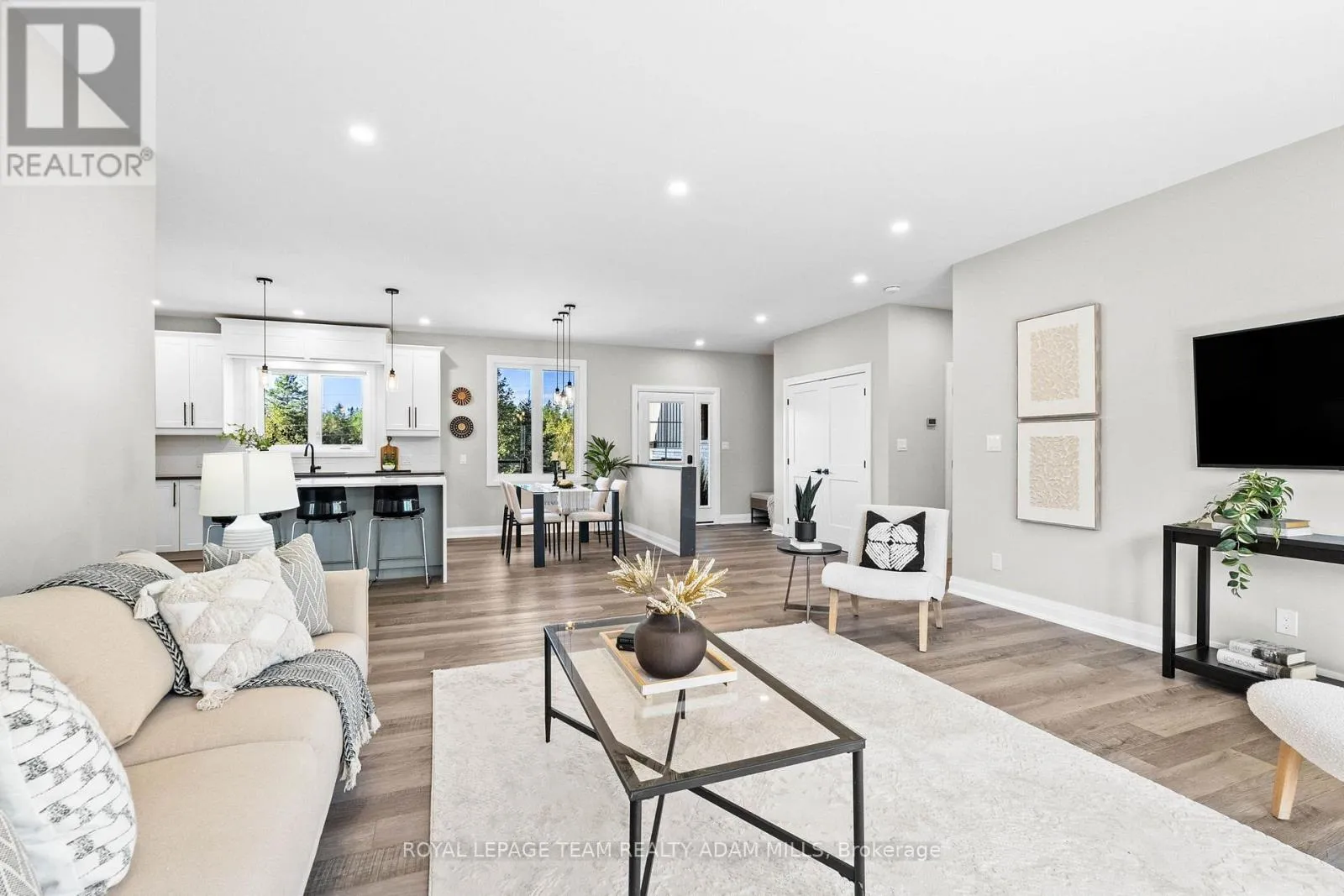 Cross Streets: Beckwith Boundary & Montague Boundary. ** Directions: HWY 417 to HWY 7, Exit on Upper Dwyer Hill Rd, Turn Left on Upper Dwyer, Right onto Franktown Rd, Turn Left onto Ashton Station Rd, Slight Right and becomes Beckwith Boundary, Turn Left onto Montague Boundary, property will be on the left. Welcome to private, country living, just a short drive to the city! Nestled on over 10 scenic acres just outside Ottawa, this custom-built bungalow, with WALKOUT BASEMENT, offers the perfect balance of privacy, modern style, and family functionality. With Luxury Vinyl Plank (LVP) flooring, pot lights, and high-end finishes throughout; every detail has been thoughtfully designed. Step into the bright open-concept main floor where the heart of the home shines: a dream kitchen featuring modern white shaker cabinetry, sparkling quartz counters, a bold blue island with waterfall edge, beveled subway tile backsplash, and sleek stainless steel appliances. The spacious living room is perfect for gathering, complete with a sliding door that opens onto a large deck overlooking your acreage. The primary suite is a true retreat with its spa-like 5-piece en-suite and a walk-in closet with built-in organization. On the opposite side of the home, you'll find three additional bedrooms, each with armoire closets to maximize space, plus a stylish main bath, hallway pantry, and a stunning custom laundry room with garage access. Wide hallways make the home feel open and accessible. Downstairs, the fully finished walk-out basement is designed with flexibility in mind. Large windows flood the space with natural light, and it features a rough-in for a bathroom plus a full in-law suite with a den, large bedroom, and a future kitchenette space; perfect for extended family or guests. Outside, enjoy 10+ acres of country living, offering space for kids to explore, pets to roam, and peaceful sunsets to unwind. Ideal for a growing or multigenerational family looking for space to thrive. An added bonus: just 7km from Dwyer Hill, this home is also a perfect fit for a military family. Combining modern comforts with a country lifestyle, all within easy reach of city amenities - what more could you ask for? (id:27476)
