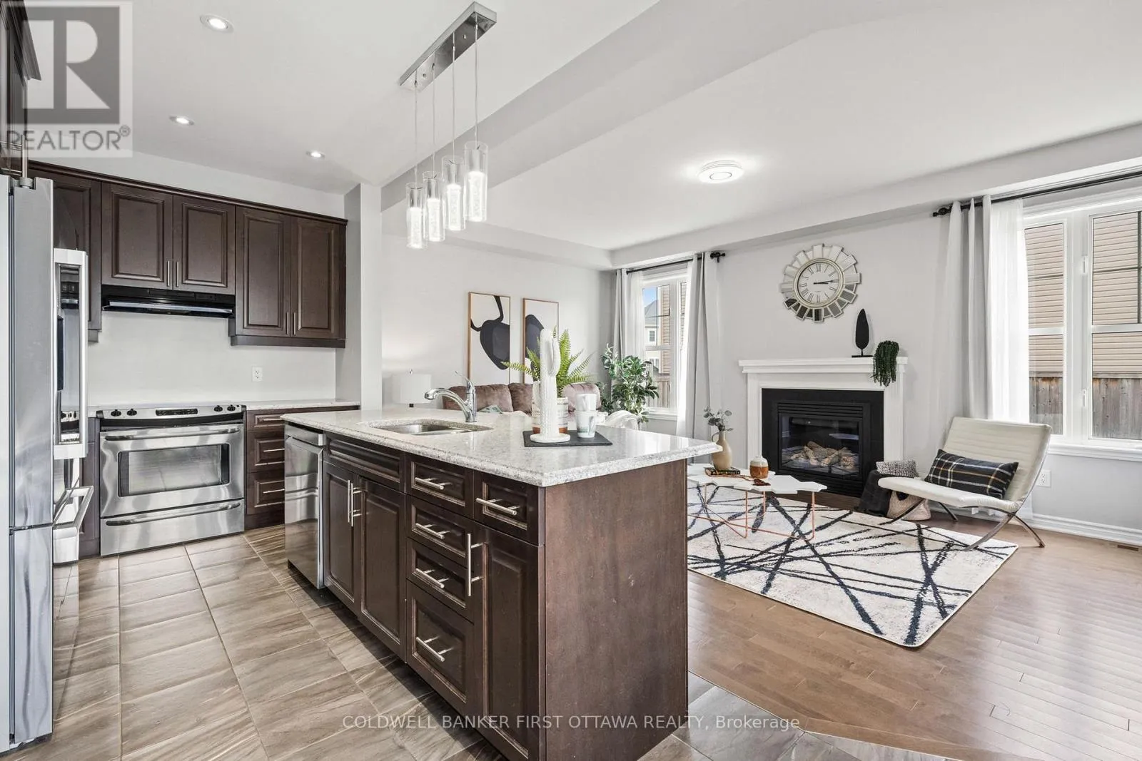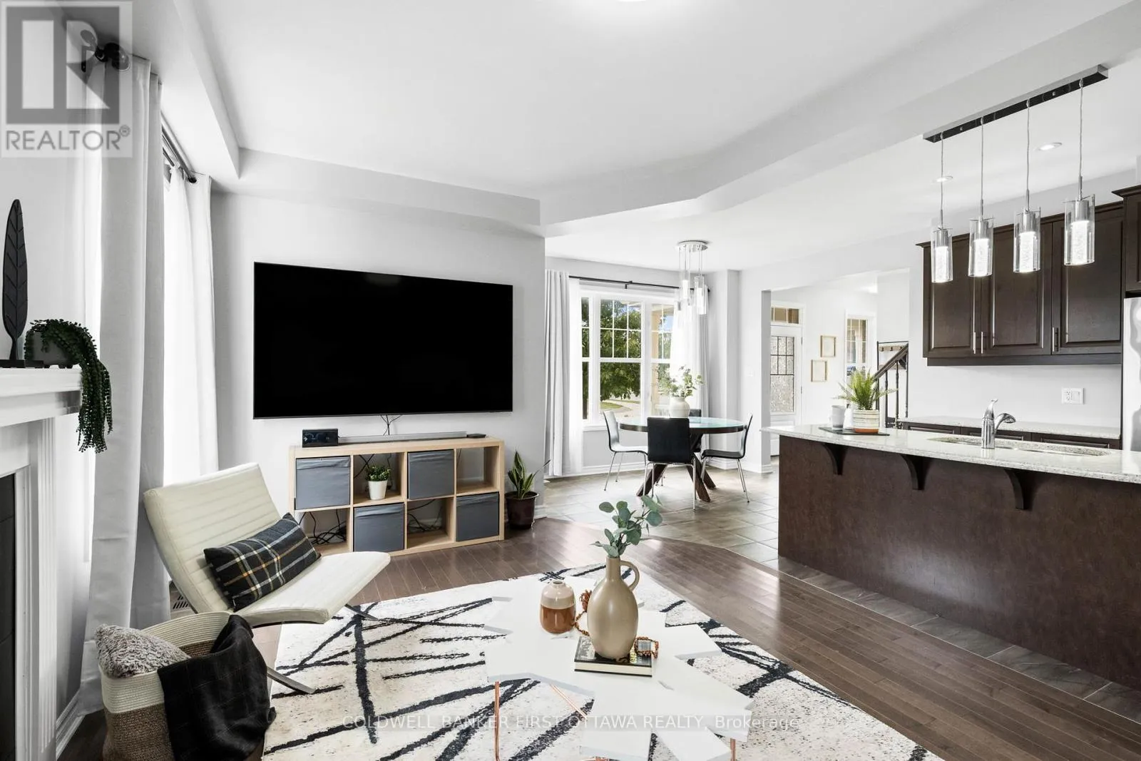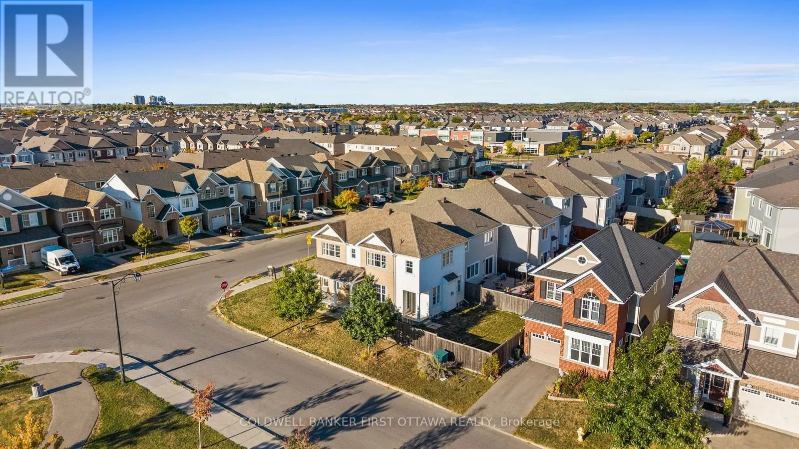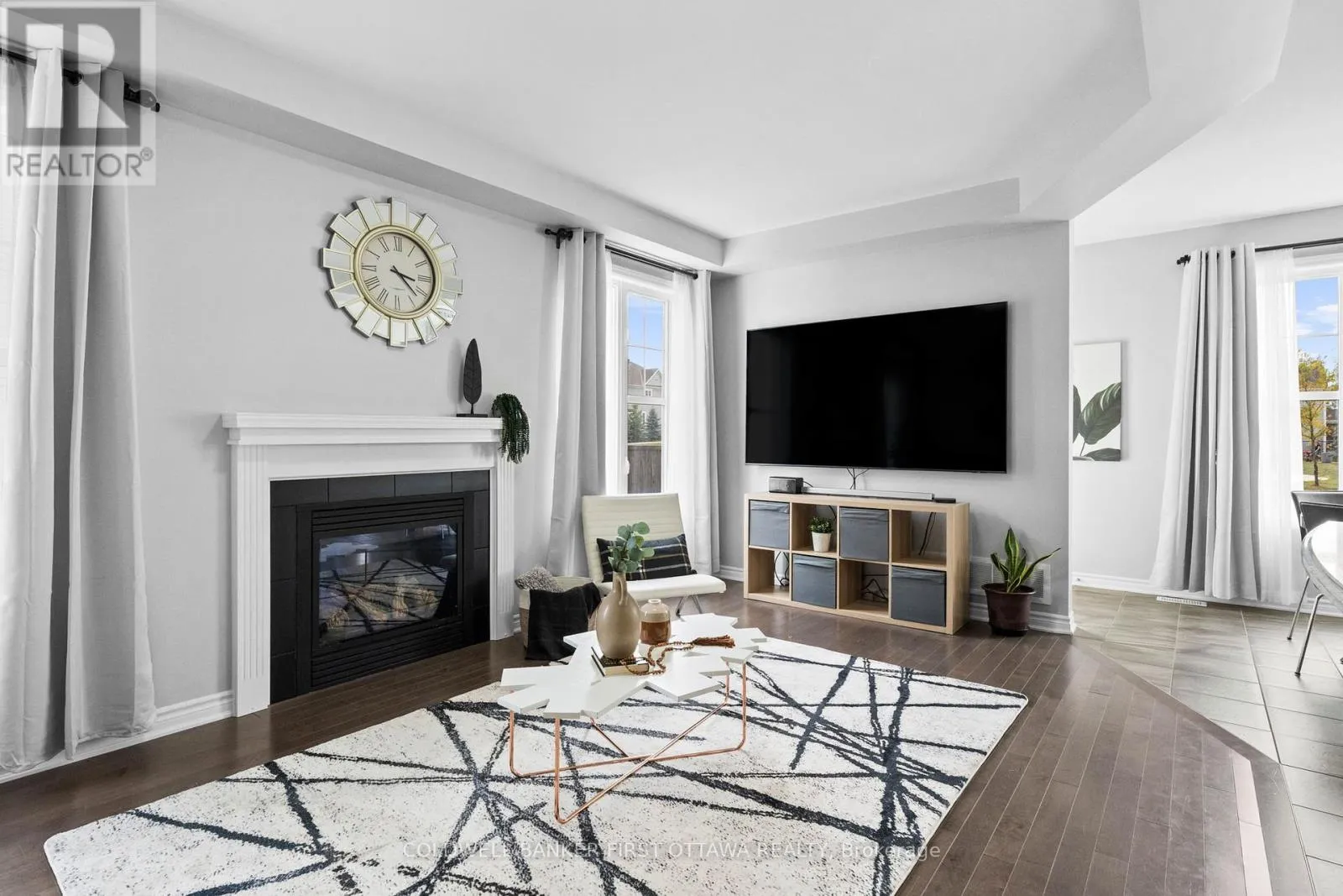 Cross Streets: Greenbank Road. ** Directions: 619 DUNDONALD DR NEPEAN ON K2J 5Y8. Facing Lamprey park is this this amazing sun-filled residence exuding timeless charm with its inviting wraparound porch and showcases thoughtful upgrades throughout.The main level offers a seamless open-concept design with 9-foot ceilings and gleaming hardwood floors, creating an effortless flow between the elegant dining area and the spacious living room, complete with a cozy gas fireplace. The chef-inspired kitchen is a true showpiece, featuring stainless steel appliances, a sleek hood fan, quartz countertops, a large island with breakfast bar, and refined lighting with pot lights throughout. Upstairs, rich hardwood floors and a striking staircase lead to a versatile loft with soaring cathedral ceilings an ideal retreat for a home office or lounge. The serene primary suite boasts a walk-in closet and a spa-like 5-piece ensuite, complete with double granite vanities, a freestanding soaker tub, and a glass-enclosed shower. Two additional bedrooms, a stylish full bath, and a convenient laundry room complete the upper level. Outside, the PVC-fenced backyard offers privacy and low-maintenance enjoyment.This exceptional property is just steps from River Mist Park, within walking distance to top-rated schools, and only minutes from the Minto Recreation Centre, shopping, dining, and public transit. A perfect balance of elegance, comfort, and conveniencethis home truly has it all. ** This is a linked property.** (id:27476)