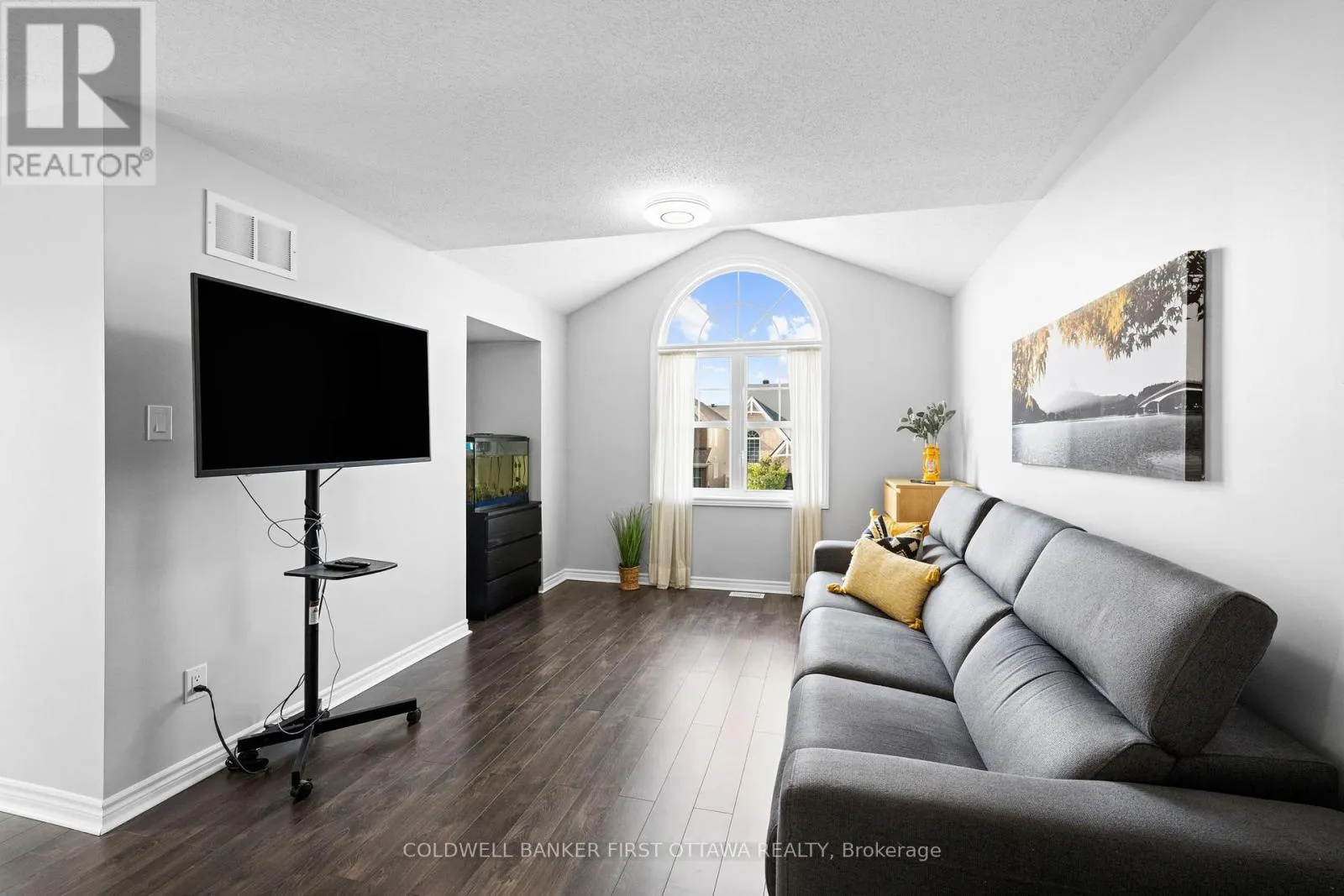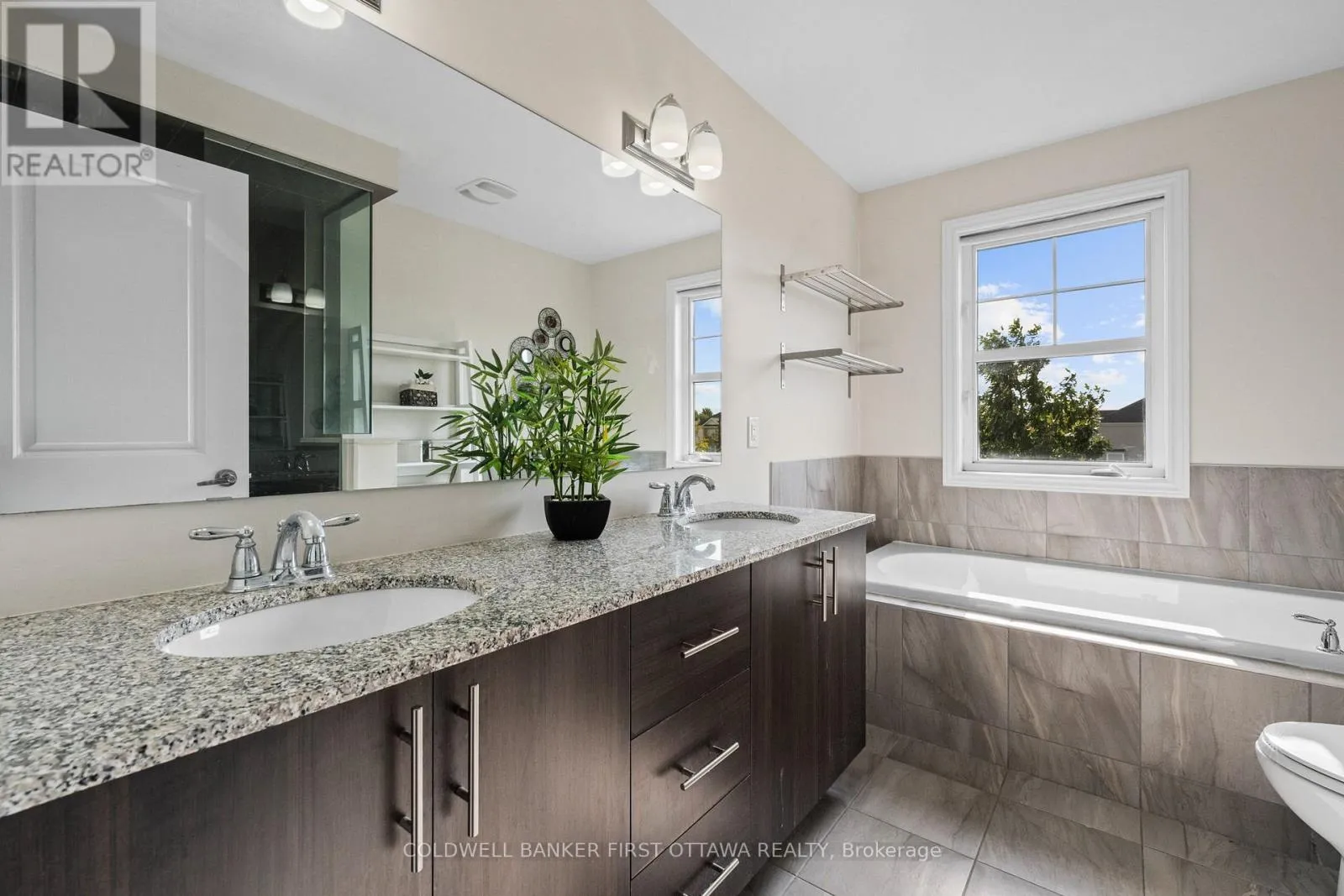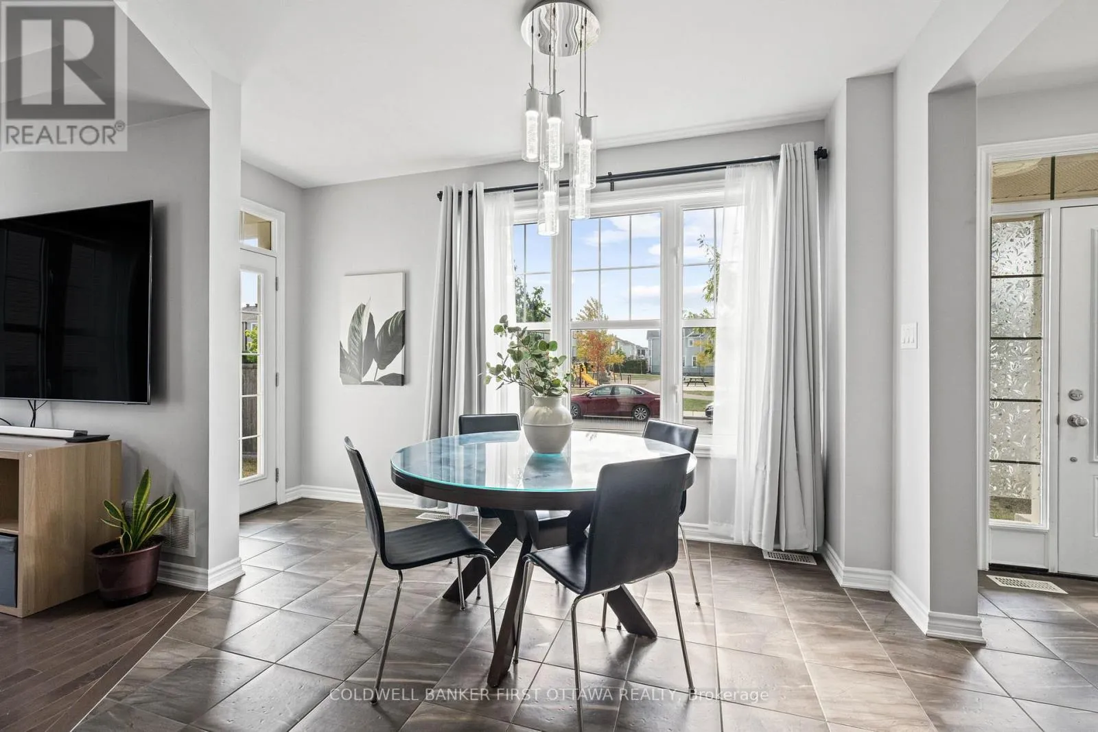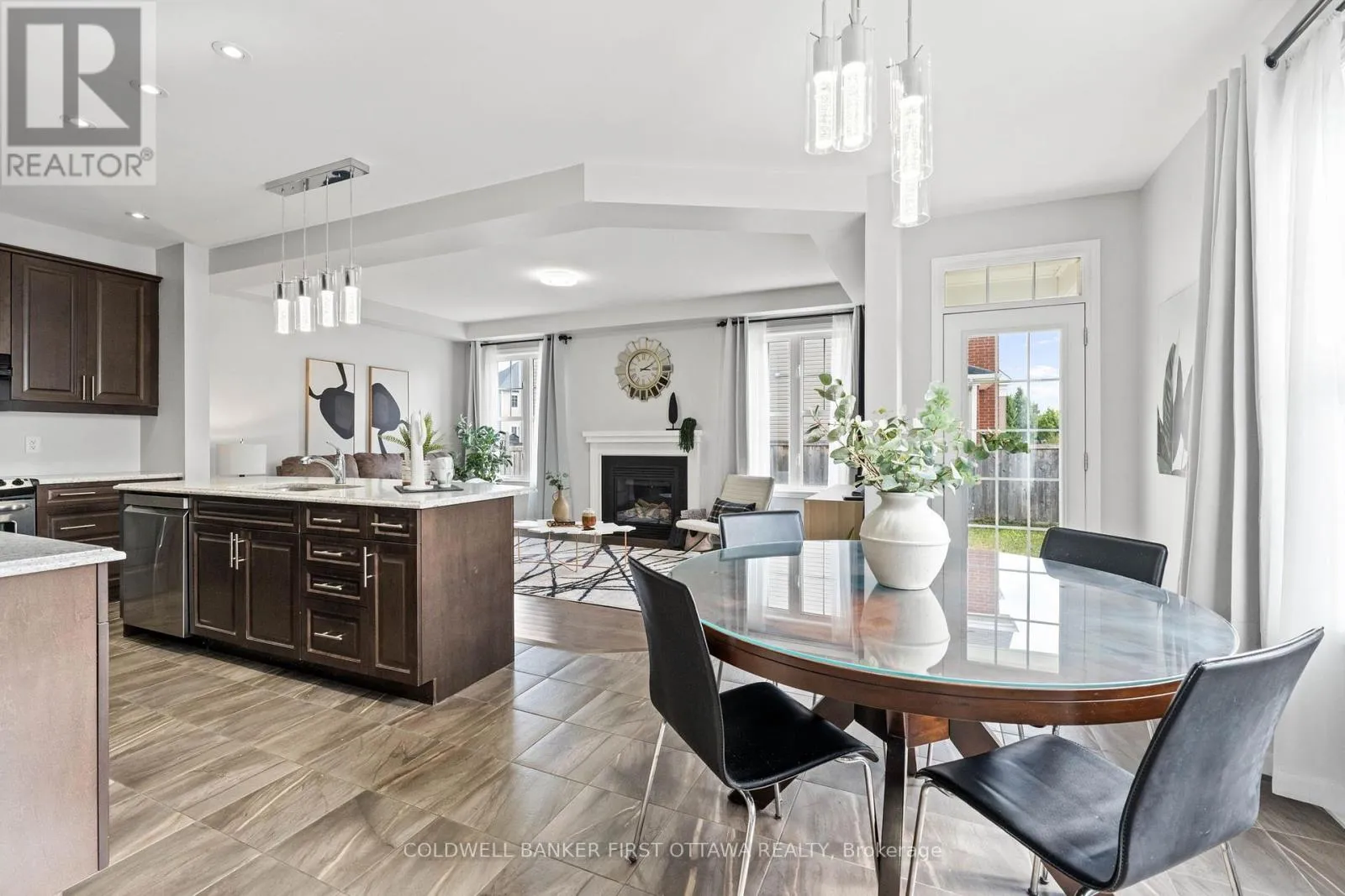 Cross Streets: Greenbank Road. ** Directions: 619 DUNDONALD DR NEPEAN ON K2J 5Y8. Facing Lamprey park is this this amazing sun-filled residence exuding timeless charm with its inviting wraparound porch and showcases thoughtful upgrades throughout.The main level offers a seamless open-concept design with 9-foot ceilings and gleaming hardwood floors, creating an effortless flow between the elegant dining area and the spacious living room, complete with a cozy gas fireplace. The chef-inspired kitchen is a true showpiece, featuring stainless steel appliances, a sleek hood fan, quartz countertops, a large island with breakfast bar, and refined lighting with pot lights throughout. Upstairs, rich hardwood floors and a striking staircase lead to a versatile loft with soaring cathedral ceilings an ideal retreat for a home office or lounge. The serene primary suite boasts a walk-in closet and a spa-like 5-piece ensuite, complete with double granite vanities, a freestanding soaker tub, and a glass-enclosed shower. Two additional bedrooms, a stylish full bath, and a convenient laundry room complete the upper level. Outside, the PVC-fenced backyard offers privacy and low-maintenance enjoyment.This exceptional property is just steps from River Mist Park, within walking distance to top-rated schools, and only minutes from the Minto Recreation Centre, shopping, dining, and public transit. A perfect balance of elegance, comfort, and conveniencethis home truly has it all. ** This is a linked property.** (id:27476)