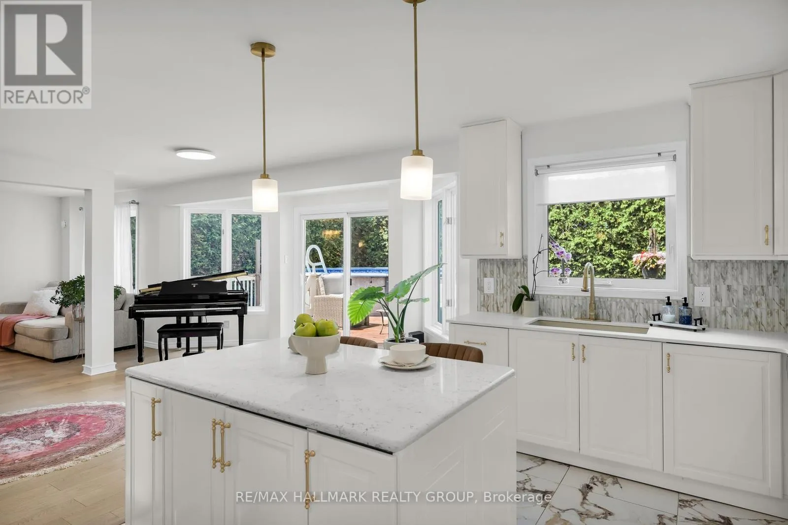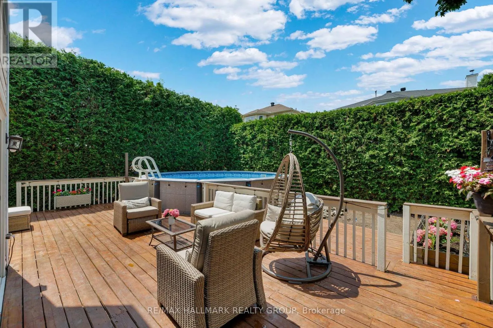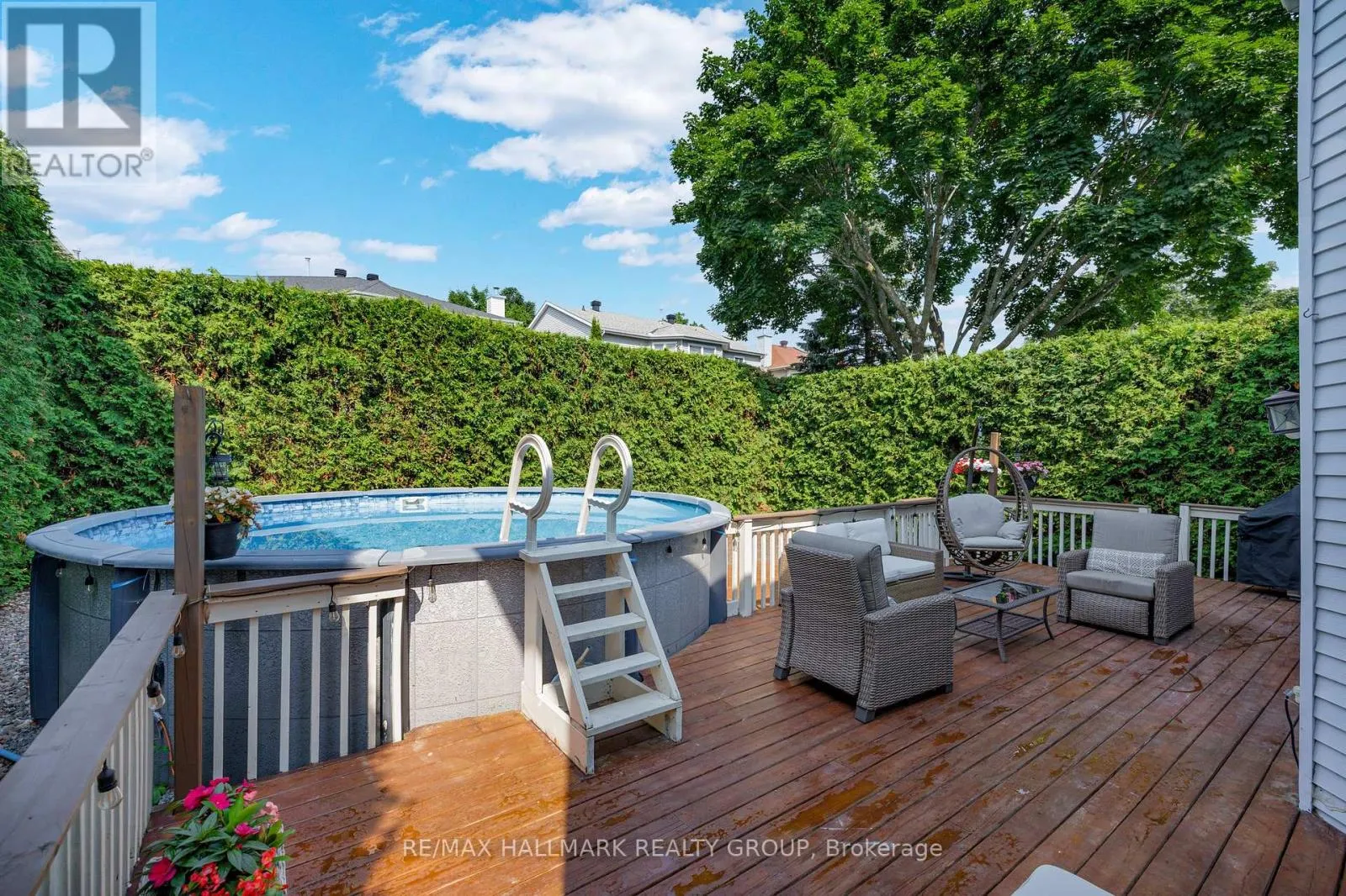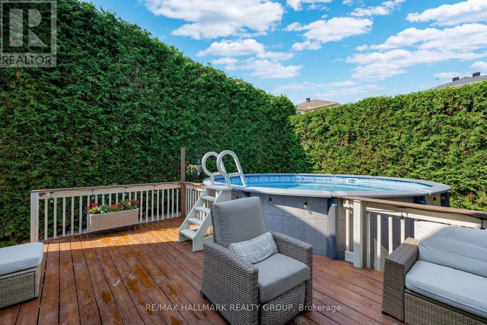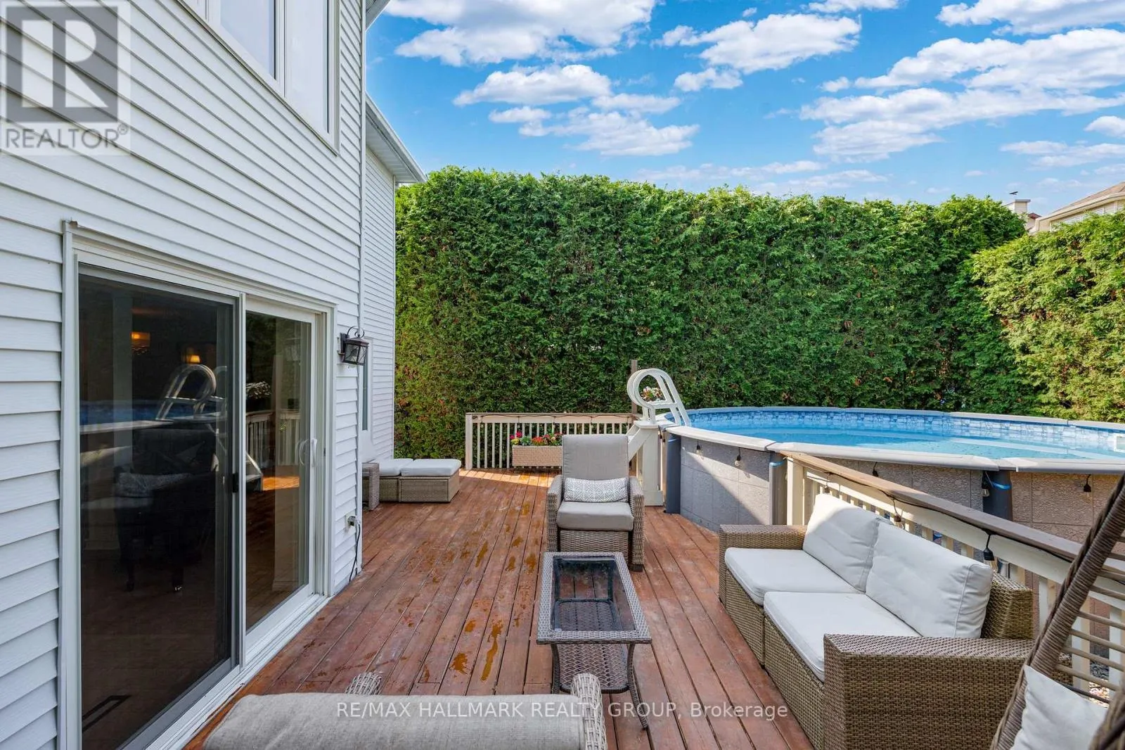 March road, West onto Morgans Grant way Left onto Allenby Welcome to 16 Allenby Rd, a beautifully fully renovated 4-bedroom + main-floor office (easily used as a 5th bedroom), 3-bath home in sought-after Morgans Grant. This family-friendly neighborhood offers top schools, parks, trails, and quick access to Kanatas high-tech hub. Offering nearly 2,950 sq. ft. above grade plus almost 1,000 sq. ft. of newly finished basement space, this home provides abundant room for modern family living. The bright, open-concept layout features new engineered hardwood flooring and stylish finishes throughout. The recently updated kitchen, complete with quartz countertops, backsplash, new cabinets, and premium built-in appliances, overlooks the cozy family room with a wood-burning fireplace. Spacious living and dining areas provide great flexibility for everyday living and entertaining. Upstairs, the primary suite boasts large windows, two walk-in closets, and a modern ensuite. All bathrooms have been recently updated, adding a contemporary touch throughout. Outside, the private backyard is perfect for summer enjoyment, complete with mature hedges, an expansive deck, and an above-ground pool. Truly a turnkey home in a vibrant community. More than $250,000 invested in renovations between 2023 and 2025, including: full interior painting (20232025), engineered hardwood flooring (2023), stairs makeover (2025), a fully updated kitchen with quartz countertop & backsplash (2025), new cabinets, island, sink & faucet (2023), induction cooktop, premium range hood (2023), built-in microwave, oven & coffee machine (2023), dishwasher & fridge (2023), powder room (2023), all second-floor bathrooms (2025), expansive ensuite walk-in closet (2025), finished basement (2024), painted deck (2025), pool (2018), AC (2023), roof (2015), and windows (2014). (id:27476)