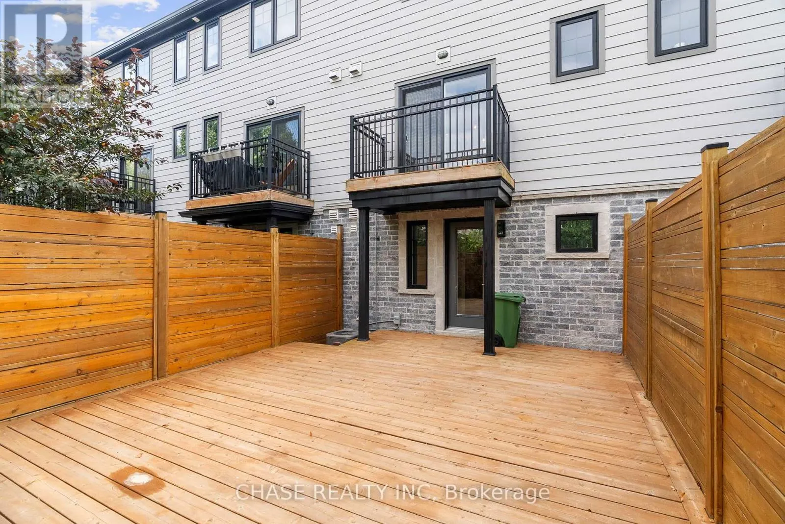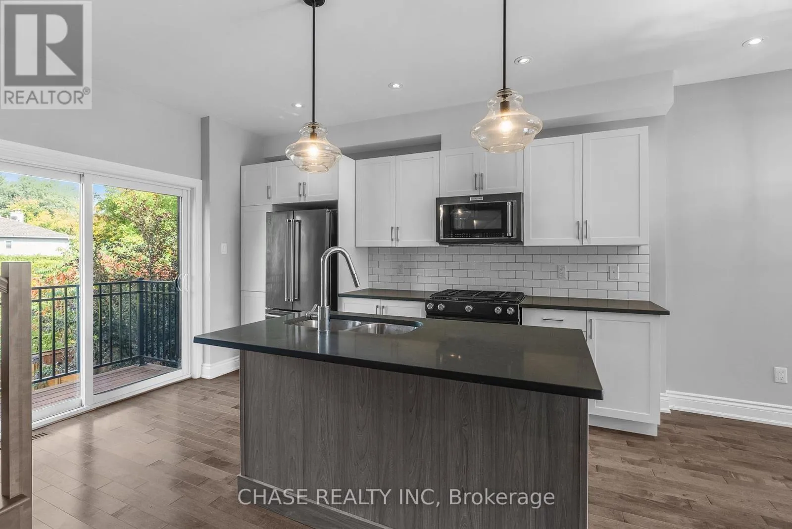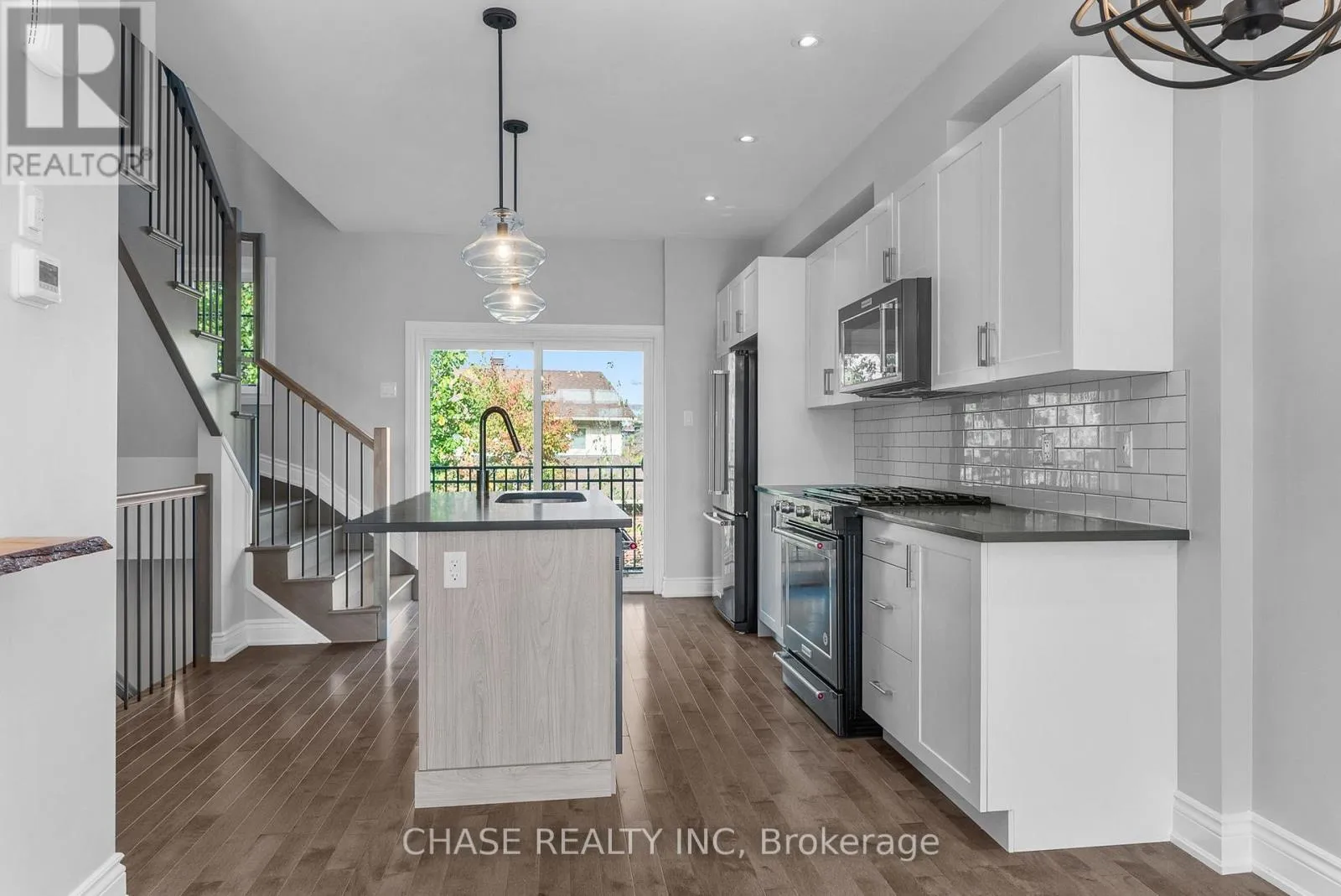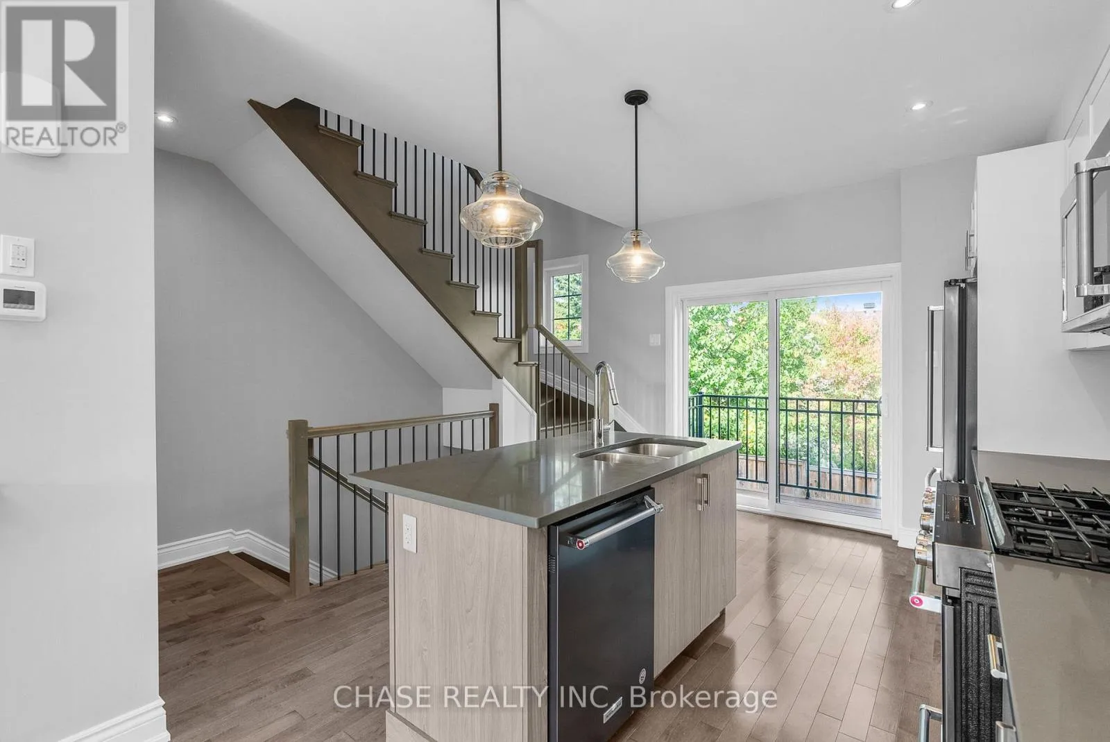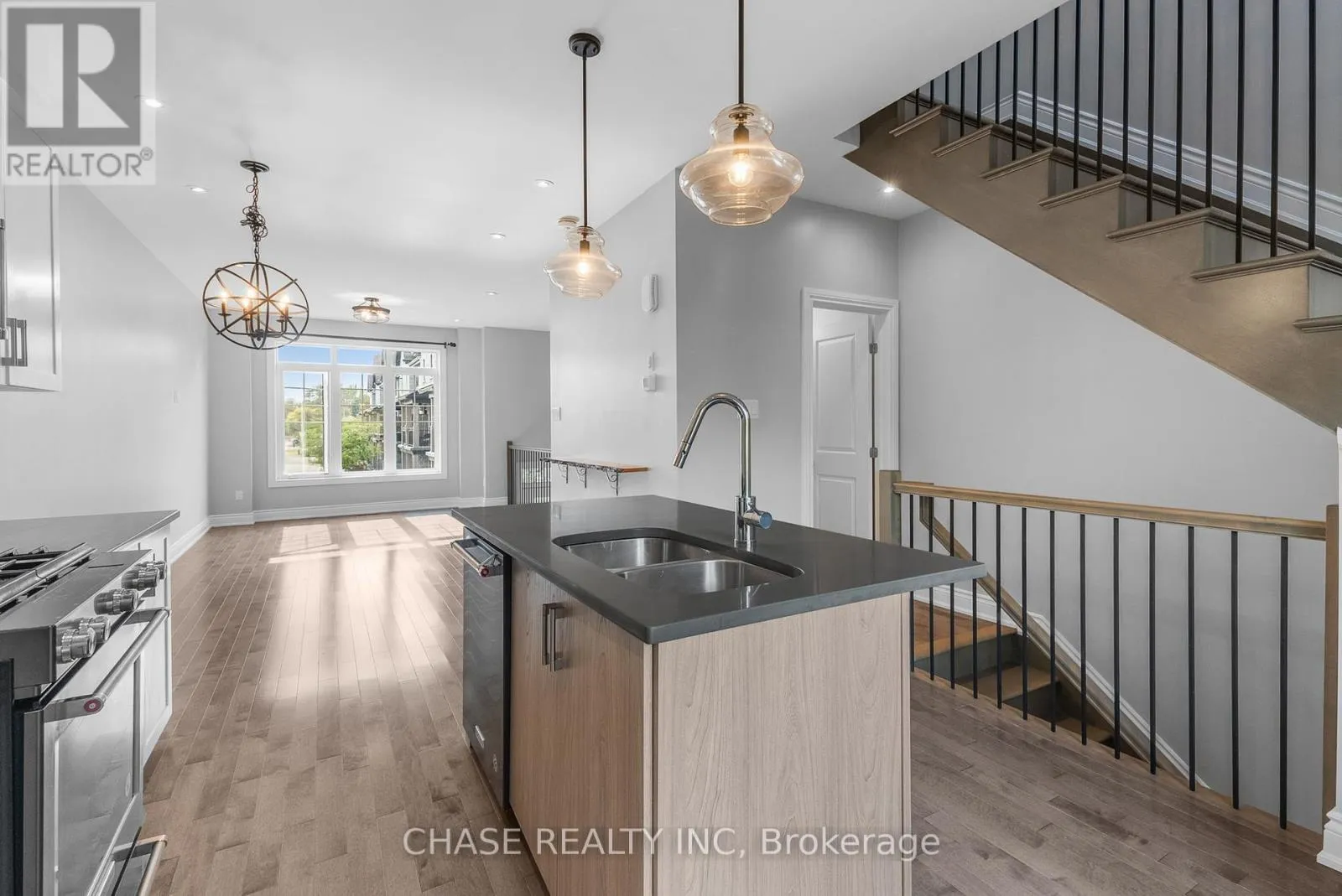 Cross Streets: Stittsville Main. ** Directions: Go south on Stittsville Main St. from Hazeldean Rd, turn left to Reverie Pvt. before Abbott St. crossing. Move-in ready townhome in the heart of Stittsville modern finishes, bright living spaces, and two private outdoor areas. Situated on a quiet private street, yet just steps to Stittsville Main Street, schools, shops, cafés, restaurants, trails, parks, community centres, and the farmers market. The historic main street adds small-town charm. Express transit, Hwy 417 in 5 minutes, and downtown Ottawa in 25 minutes keep you well connected. The south-facing main floor features hardwood floors throughout, a sun-filled living/dining area, and a sleek kitchen with quartz counters, tile backsplash, stainless steel appliances, an island breakfast bar, and patio doors to a balcony with BBQ gas hookup. Upstairs, the spacious primary fits a king bed and offers a walk-in closet and ensuite, while the second bedroom and full bath are generously sized. Laundry is also conveniently located on this level. The lower level provides a flexible third bedroom or office with full bath and walk-out to a fenced yard with deck perfect for guests, teens, or a private workspace. Inside garage entry and basement storage add everyday convenience. Recently painted, professionally cleaned, and neutrally decorated, this 2018-built home is well-maintained and ready to move in. Low monthly fee ($139) covers road maintenance, guest parking, and snow removal. *Some photos have been virtually staged. (id:27476)