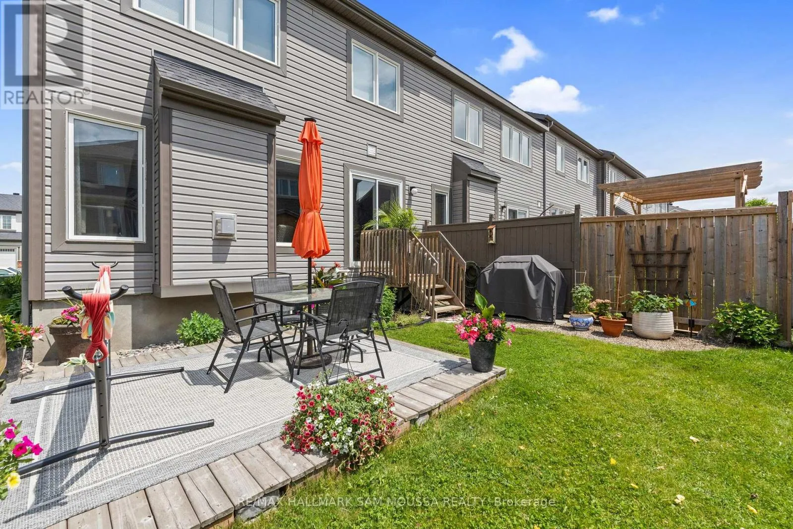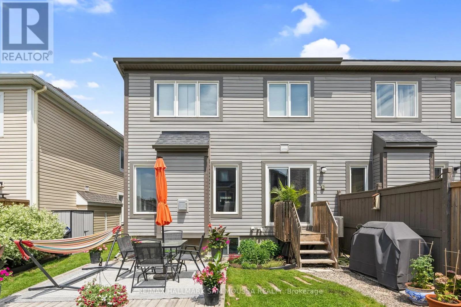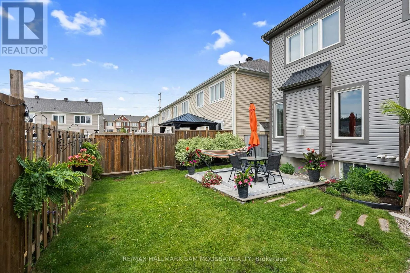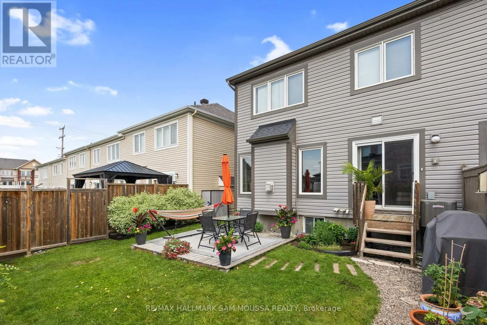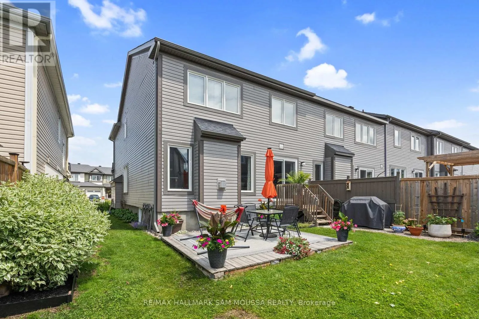 Cross Streets: Maple Grove Road. ** Directions: South on Huntmar Drive from the 417, Right on Maple Grove Road, Left on Santolina Street. Welcome to this charming 3 bedroom, 2.5 bathroom END UNIT, ideally located in a desirable neighborhood. The main floor features an open concept kitchen with a central island, granite countertops, and a seamless flow into the family room with beautiful hardwood flooring. The dining room, a convenient 2 piece bathroom, and access to the garage complete the main level. Upstairs, you'll find a spacious primary bedroom with a walk-in closet and an ensuite. Two additional generously sized bedrooms, an office nook, and a full bathroom round out the second floor. The lower level offers great potential with ample storage space. Enjoy a large backyard, perfect for outdoor activities. This home is just moments away from all essential amenities, schools, public transit, the 417, Tanger Outlets, and more. Make this your new home! (id:27476)