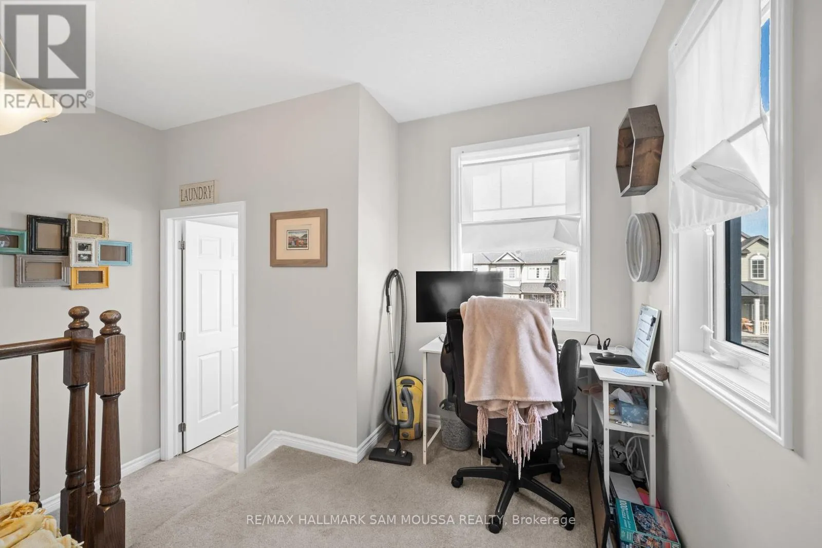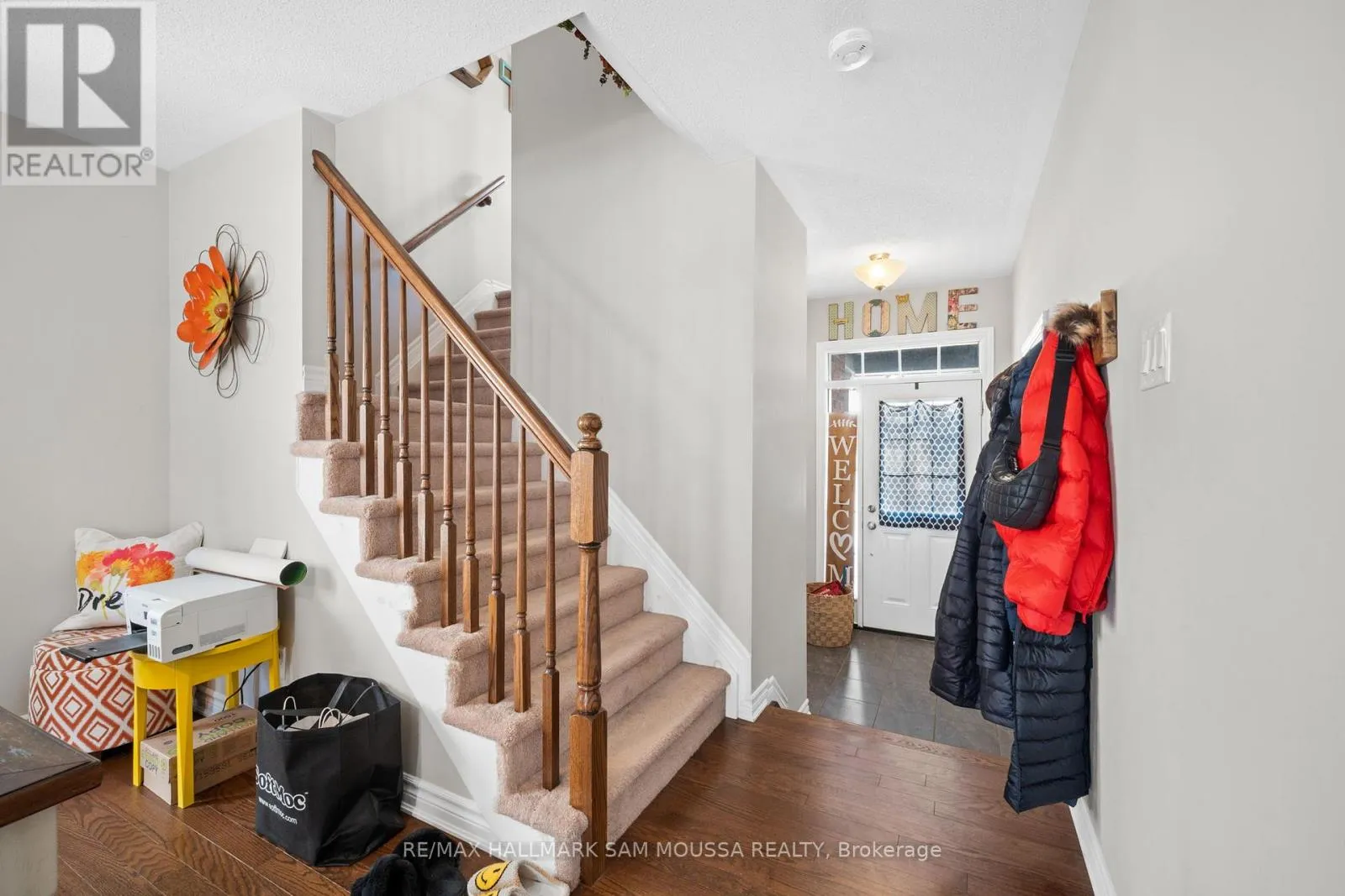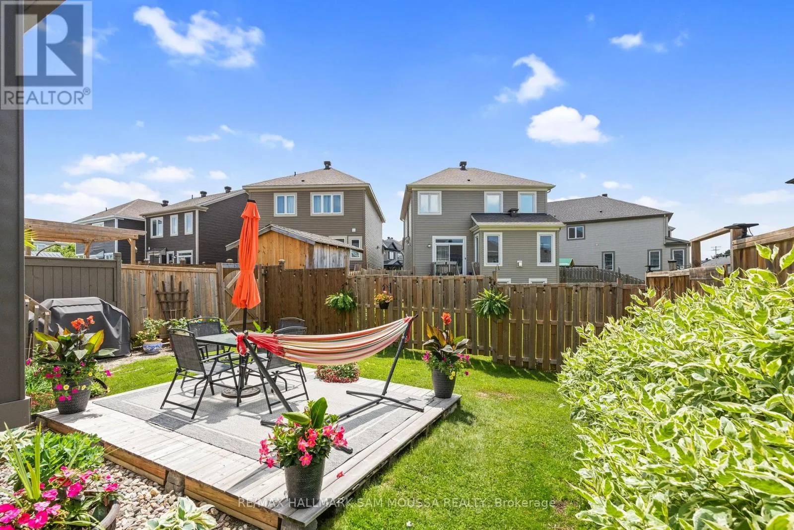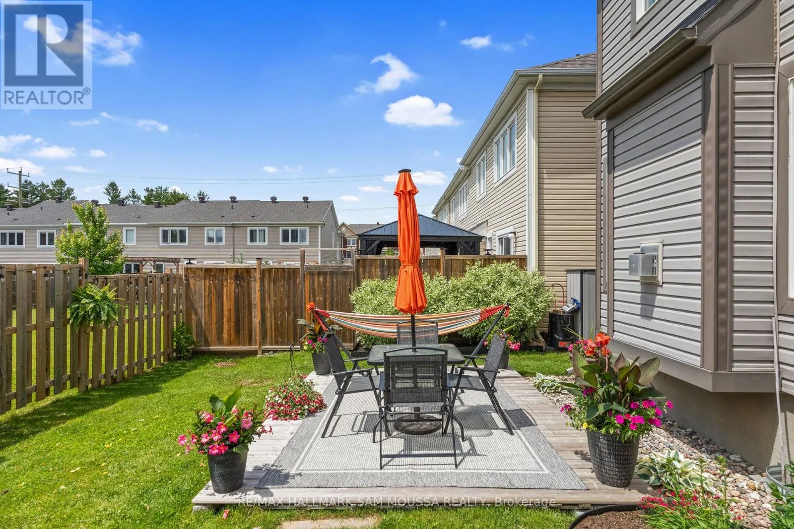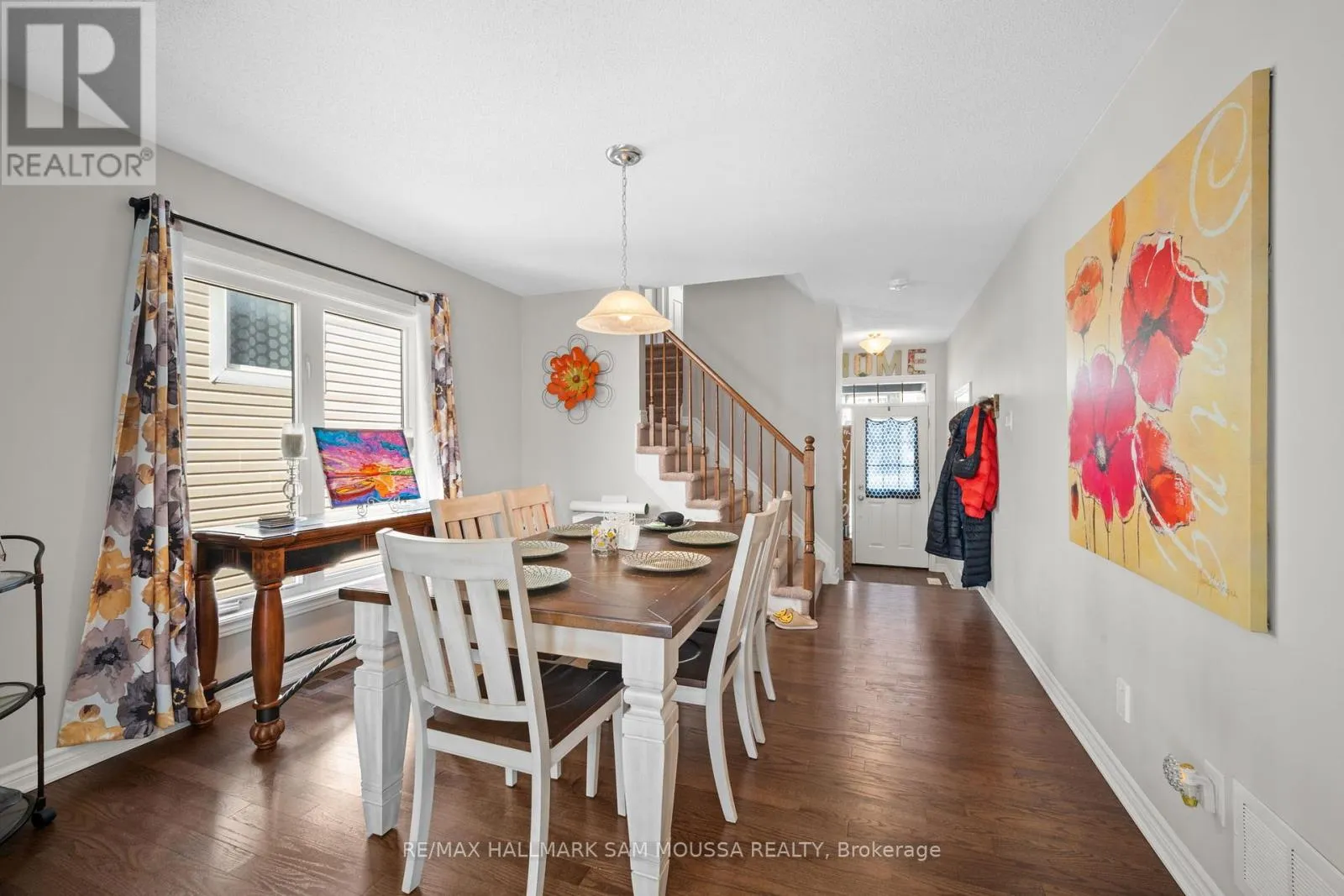Cross Streets: Maple Grove Road. ** Directions: South on Huntmar Drive from the 417, Right on Maple Grove Road, Left on Santolina Street. Welcome to this charming 3 bedroom, 2.5 bathroom END UNIT, ideally located in a desirable neighborhood. The main floor features an open concept kitchen with a central island, granite countertops, and a seamless flow into the family room with beautiful hardwood flooring. The dining room, a convenient 2 piece bathroom, and access to the garage complete the main level. Upstairs, you'll find a spacious primary bedroom with a walk-in closet and an ensuite. Two additional generously sized bedrooms, an office nook, and a full bathroom round out the second floor. The lower level offers great potential with ample storage space. Enjoy a large backyard, perfect for outdoor activities. This home is just moments away from all essential amenities, schools, public transit, the 417, Tanger Outlets, and more. Make this your new home! (id:27476)