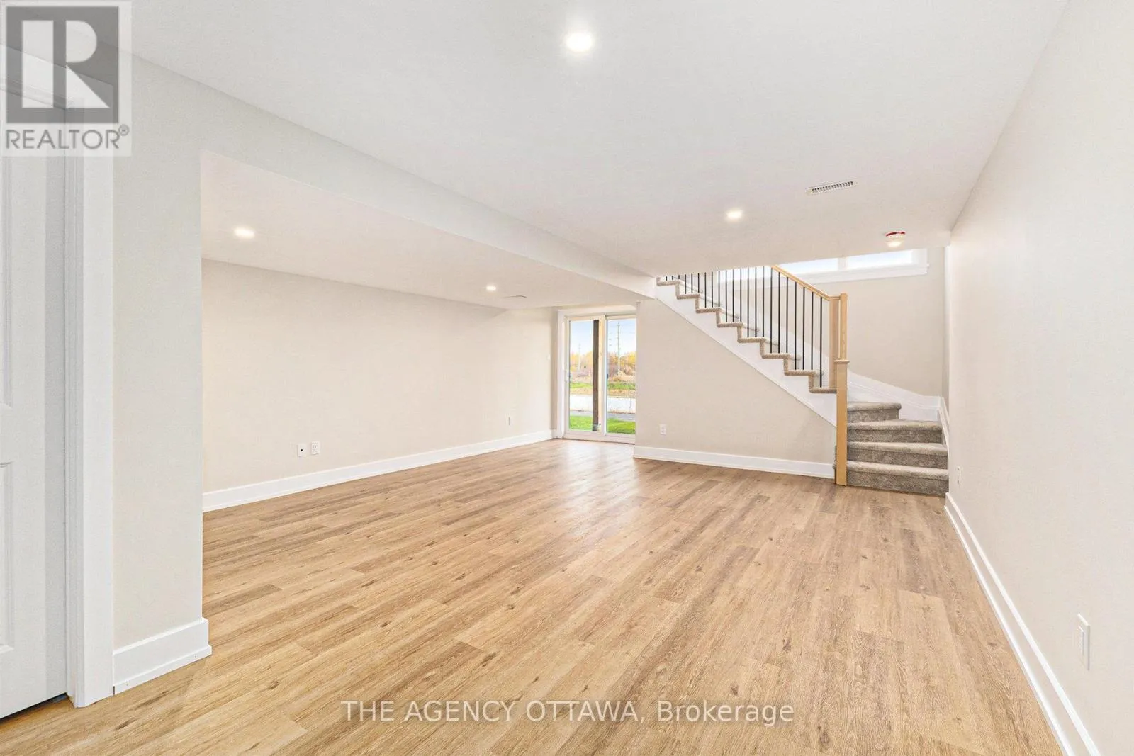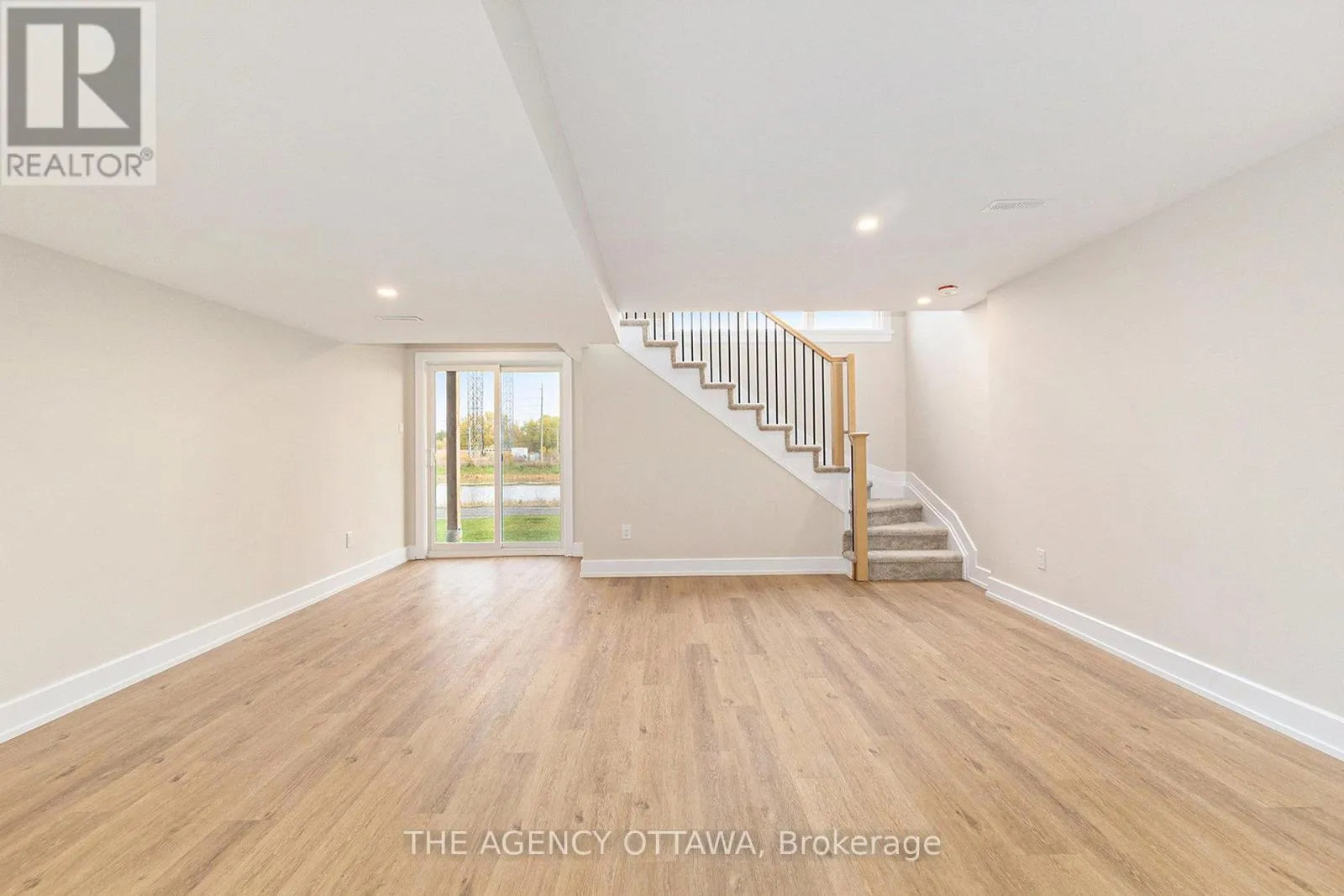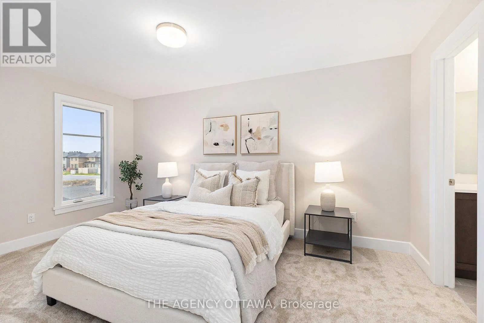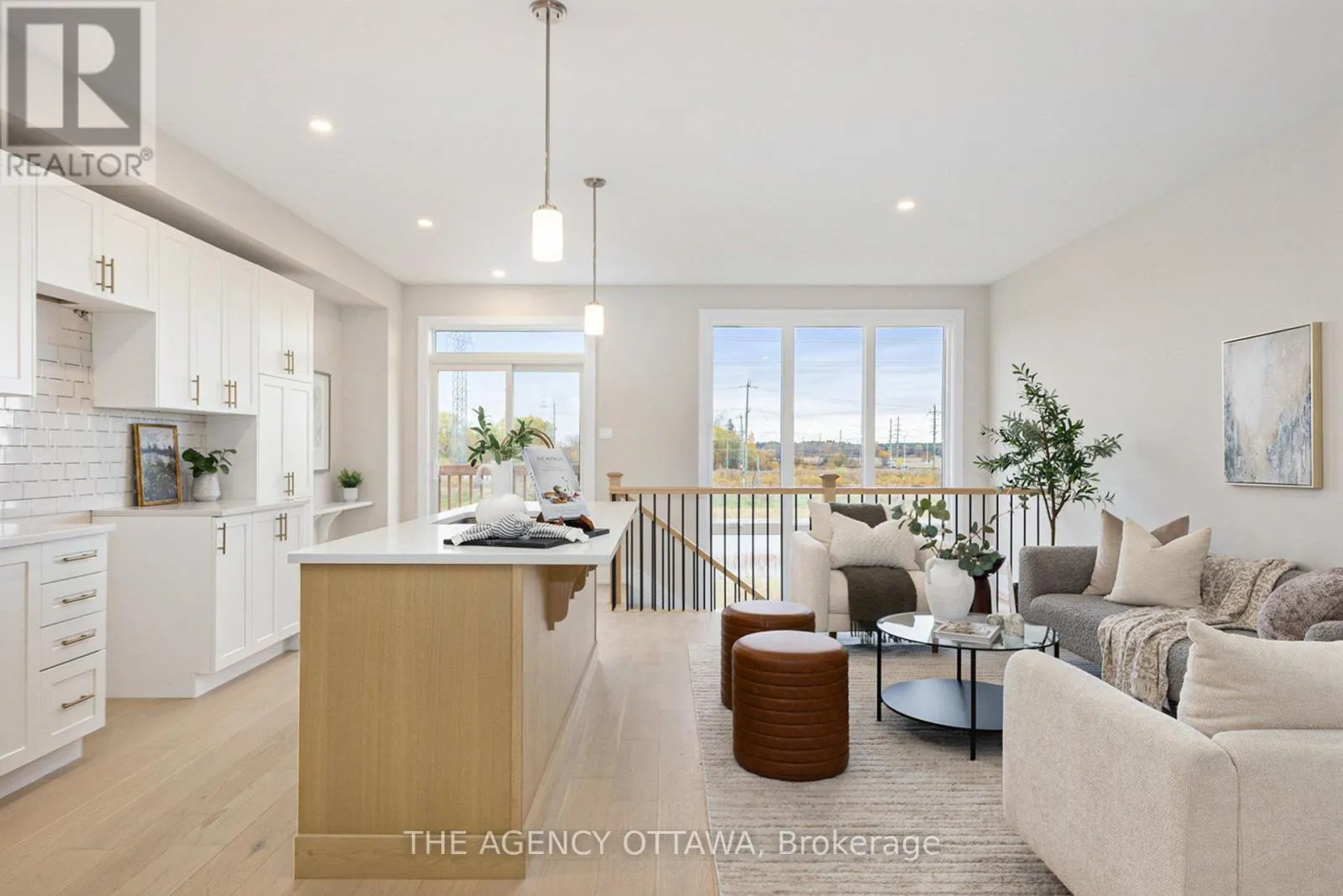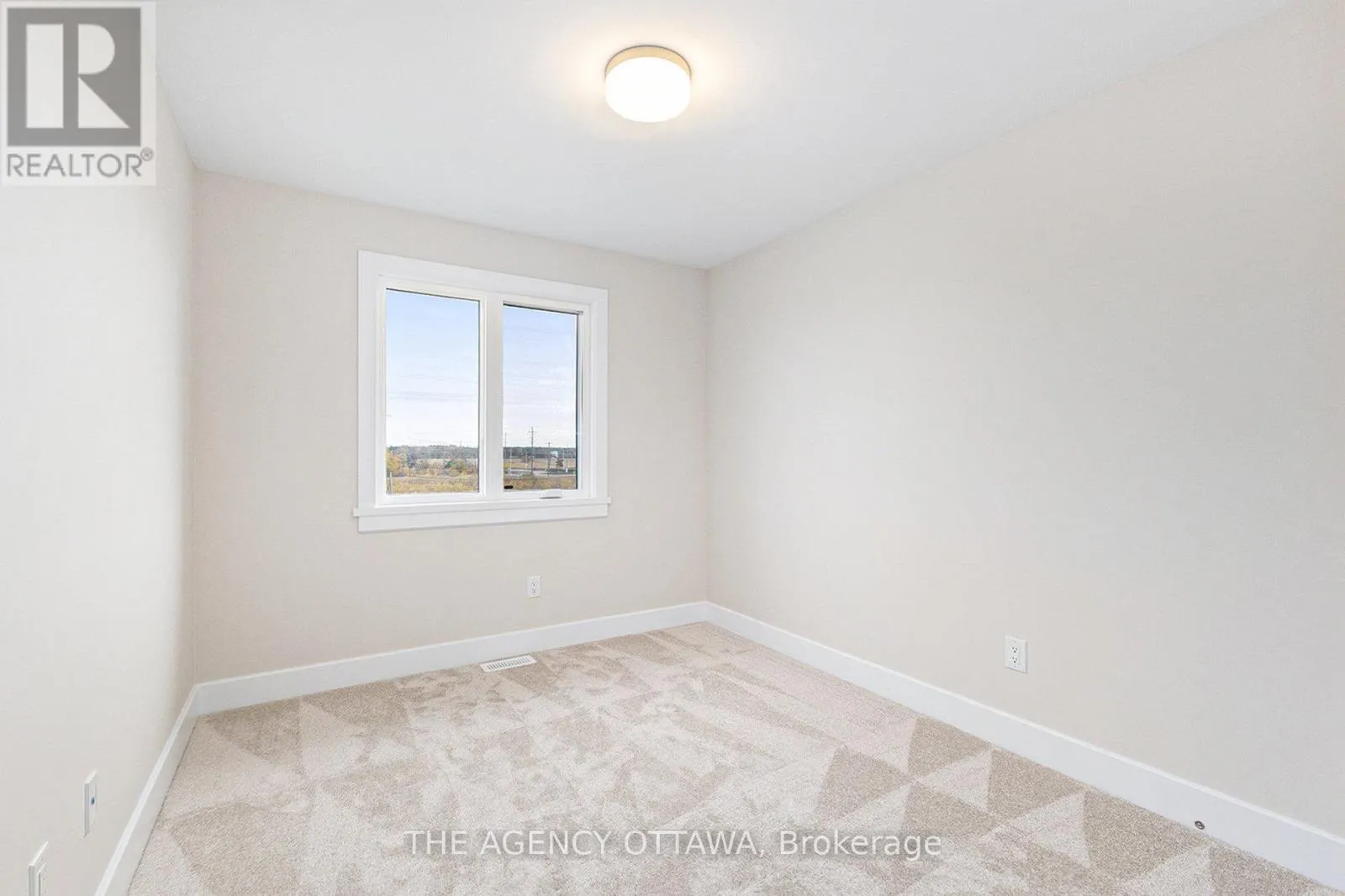 Cross Streets: Craig Duncan Terrace & Ploughman Place. ** Directions: Take Fernbank Rd south to Cope Dr. Turn right on Ploughman Pl. Turn right onto Craig Duncan Ter. Welcome to this brand new, end-unit townhome offering 3 bedrooms and 2.5 bathrooms, perfectly designed for modern living. Backing onto a serene pond with no rear neighbours, this move-in ready home combines style, comfort, and function. The open-concept main level features a spacious dining area and a stylish kitchen with a large island and breakfast bar, seamlessly flowing into the bright living area. A powder room and access to the rear yard with a wood deck complete this level. Upstairs, the large family room with a cozy gas fireplace is the perfect gathering spot. The primary bedroom includes a walk-in closet and 4-piece ensuite, while two additional bedrooms, a full bathroom, and convenient laundry complete the second floor. The finished lower level with a walk-out provides versatile living space for a home office, rec room, or gym. Don't miss your chance to view this move-in ready home! (id:27476)