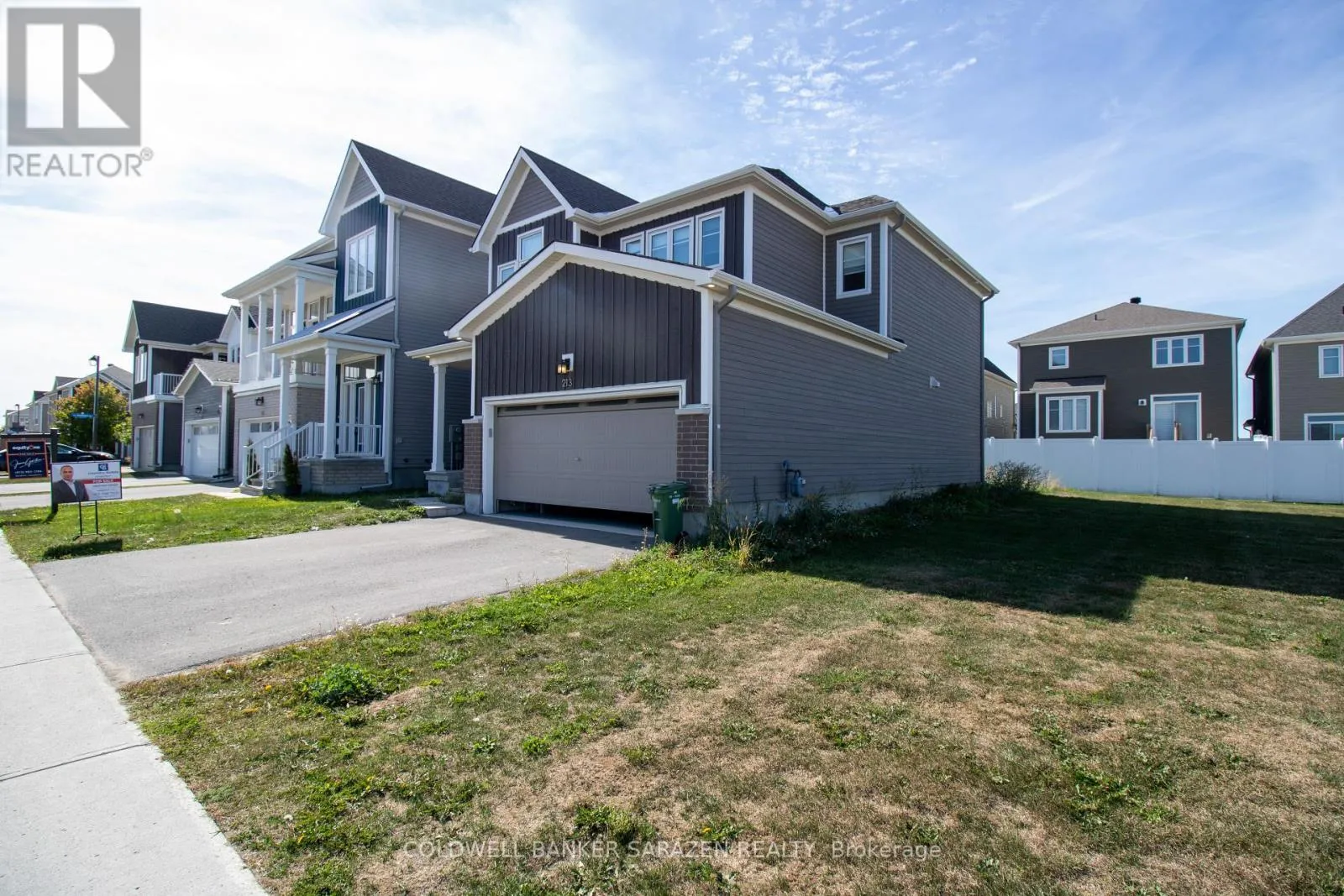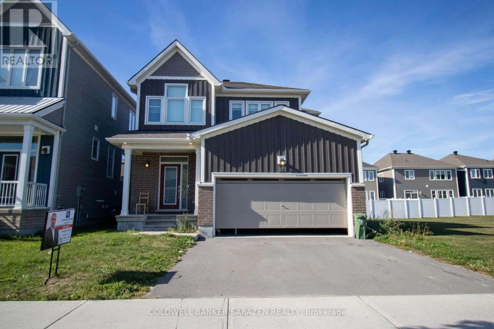 Cross Streets: Meynell & Perth. ** Directions: Head south on Eagleson Rd. toward Old Richmond Rd. Turn right ontoPerth St. At the roundabout, take the 3rd exit onto Meynell Rd. Welcome to 213 Meynell Rd in Richmond Meadows family-friendly Fox Run community. This 2021-built modern single-family home offers 4 bedrooms, 3 full baths + powder room, a bright open-concept living/dining area with large windows. The chef-inspired kitchen features a large island, granite counters, custom pantry, chimney hood, stainless steel appliances, and garden doors leading to the backyard. Upstairs offers bright bedrooms, while the fully finished basement includes a cozy 3-piece bath with stand-up massage shower. Extra features include a fully insulated garage with 40Amp EV outlet (keeps upstairs warm in winter), duct line for future solar panels (ideal southern exposure), soffit lighting for curb appeal, and doorbell camera. Enjoy nearby parks, pond trails, local shops, dining, and easy access to Kanata & Barrhaven. (id:27476)